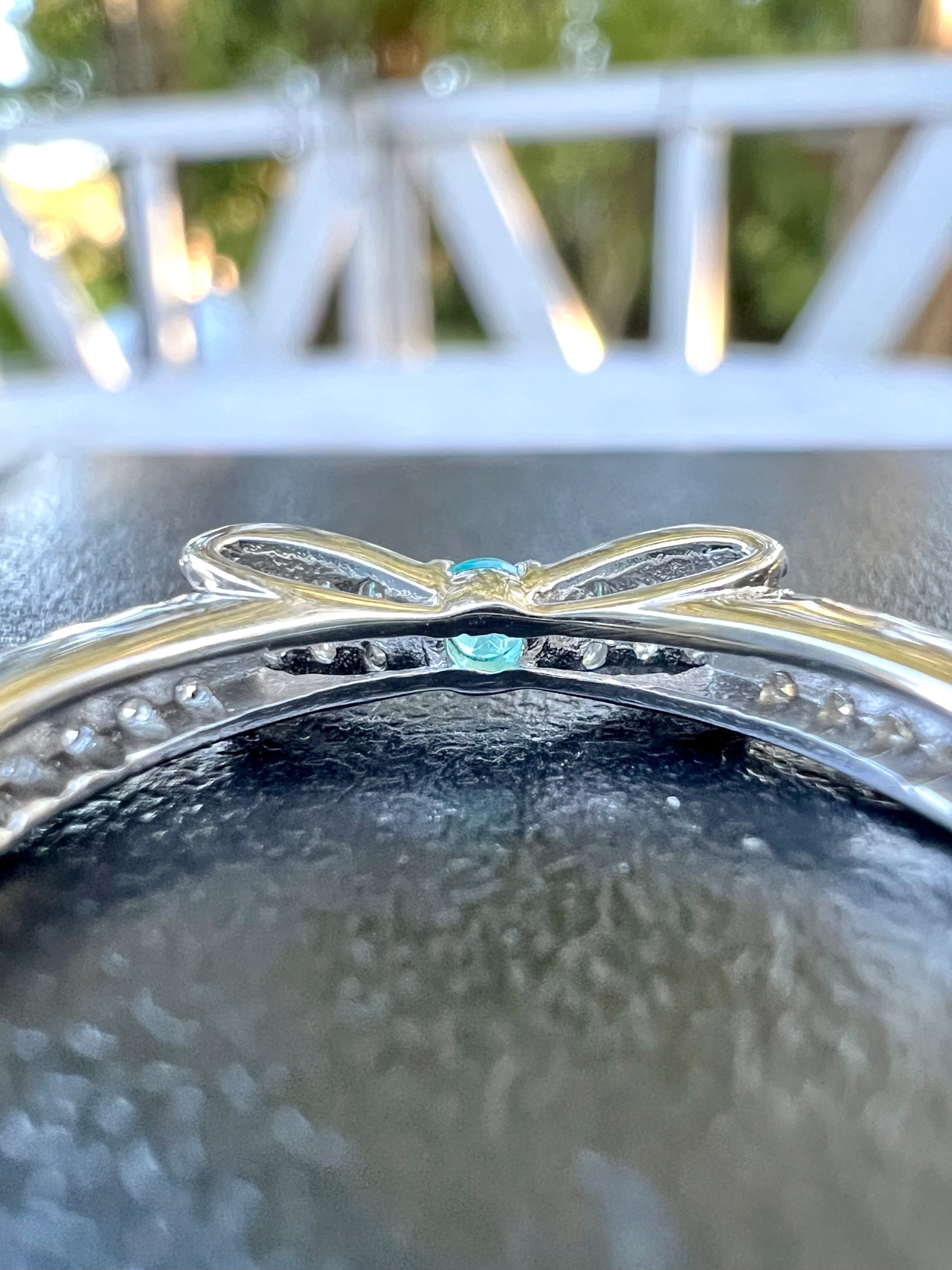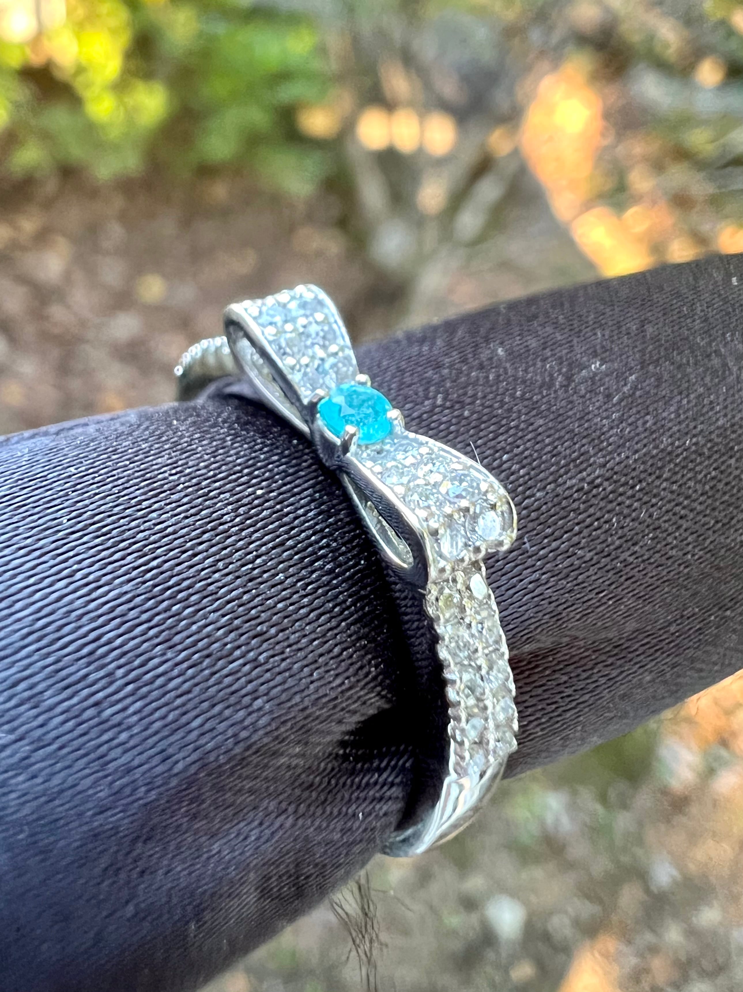 超可愛いリボンモチーフ!Pt950ブラジル産パライバトルマリンリング #13【ランダム発送商品】