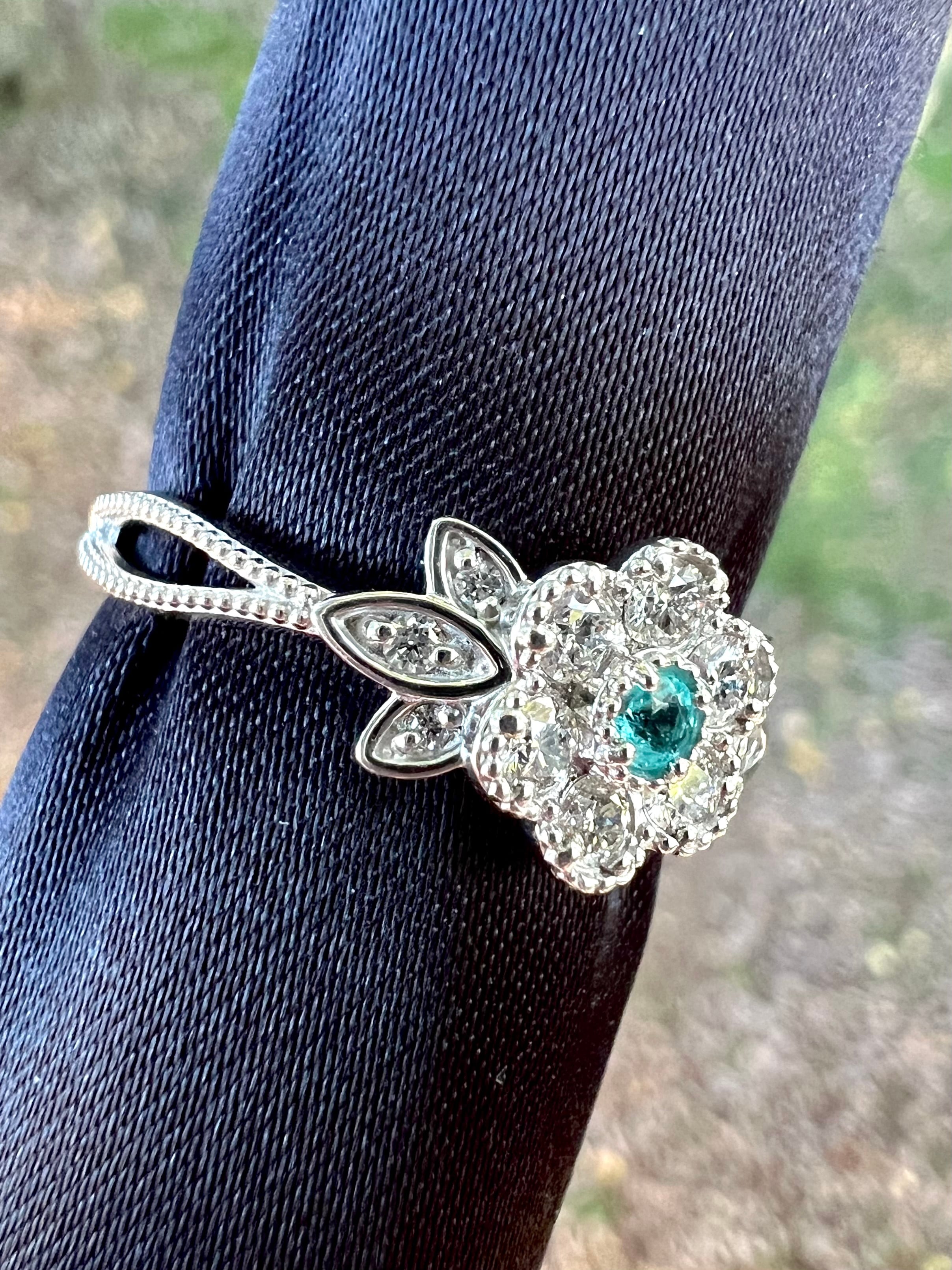 Pt950ブラジル産パライバトルマリンフラワーモチーフリング #13【ランダム発送商品】