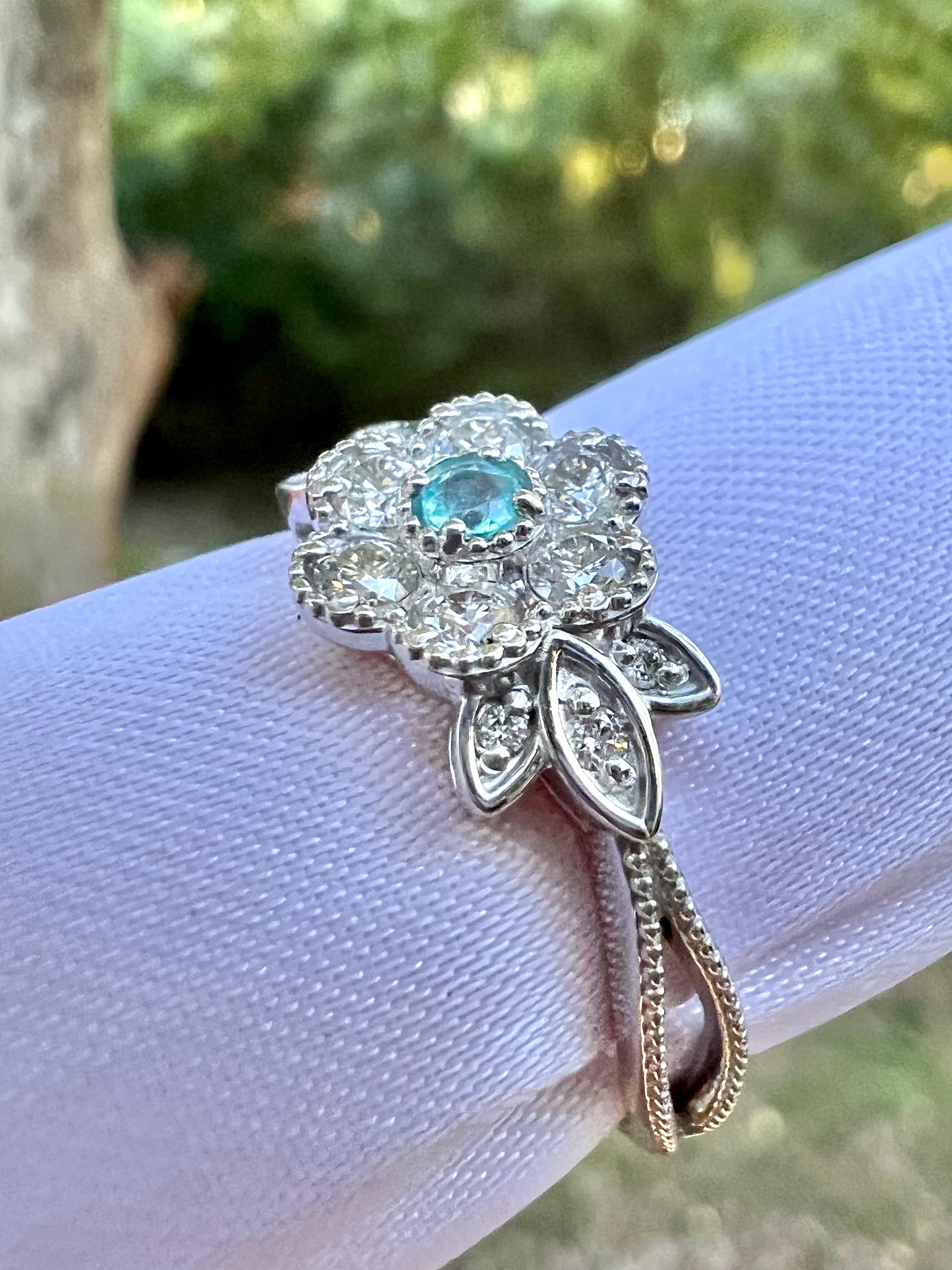 Pt950ブラジル産パライバトルマリンフラワーモチーフリング