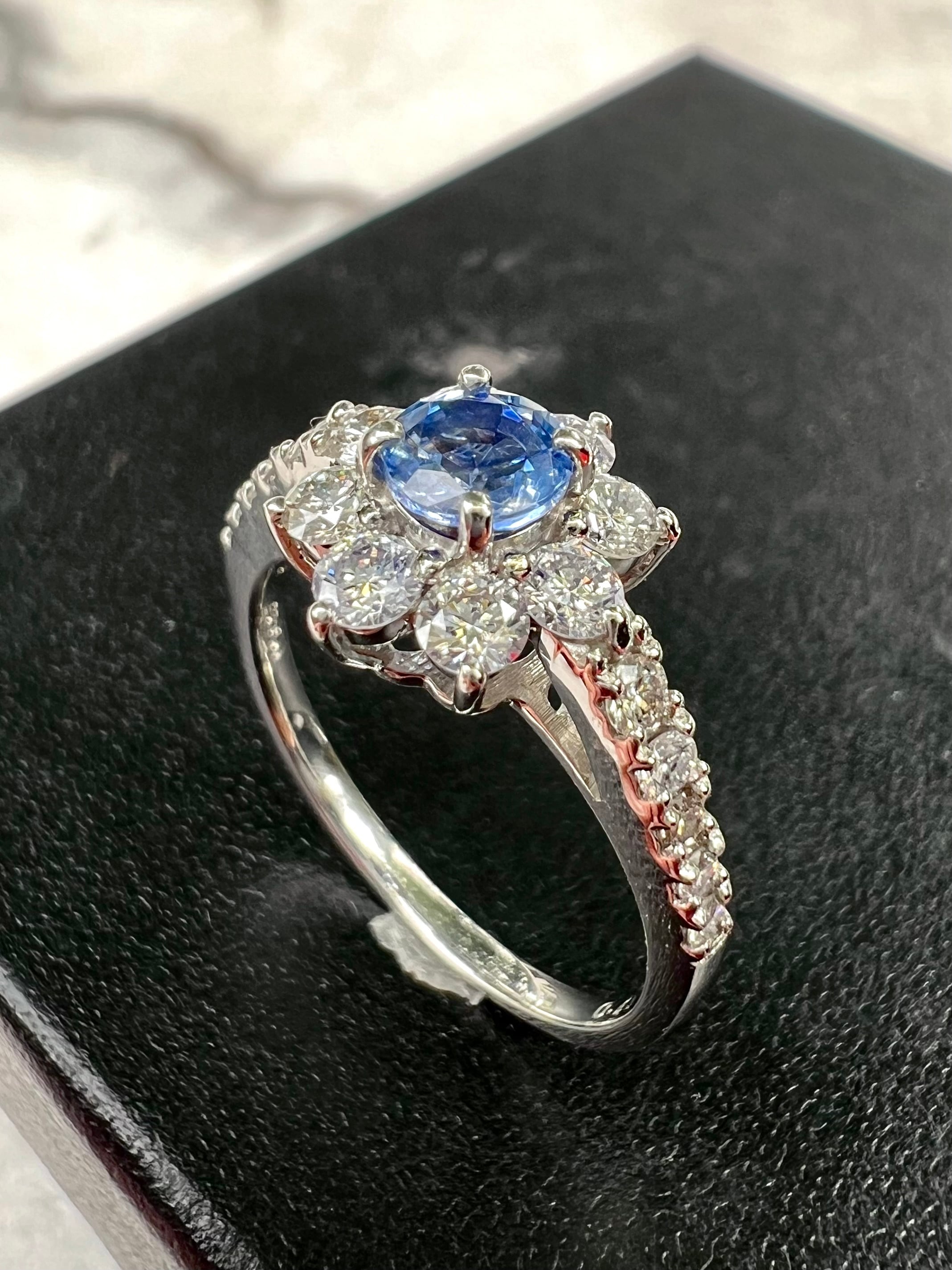 とても綺麗なカシミールサファイヤリングです。