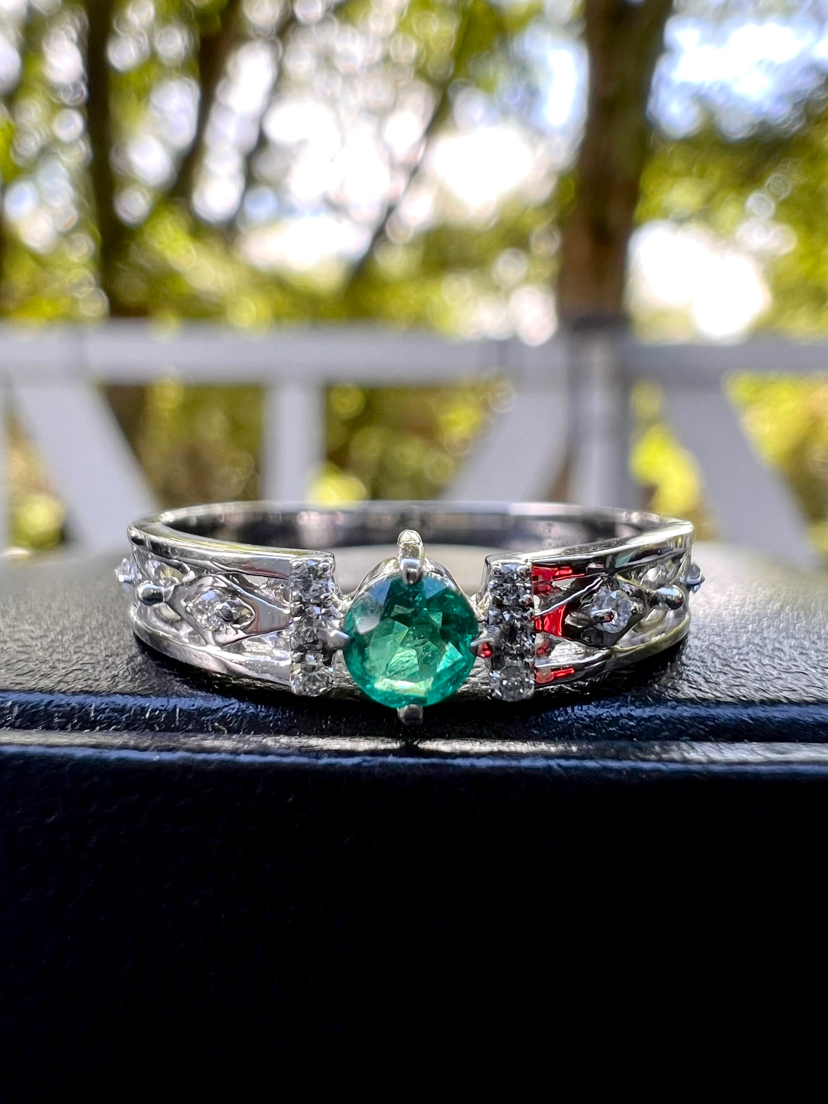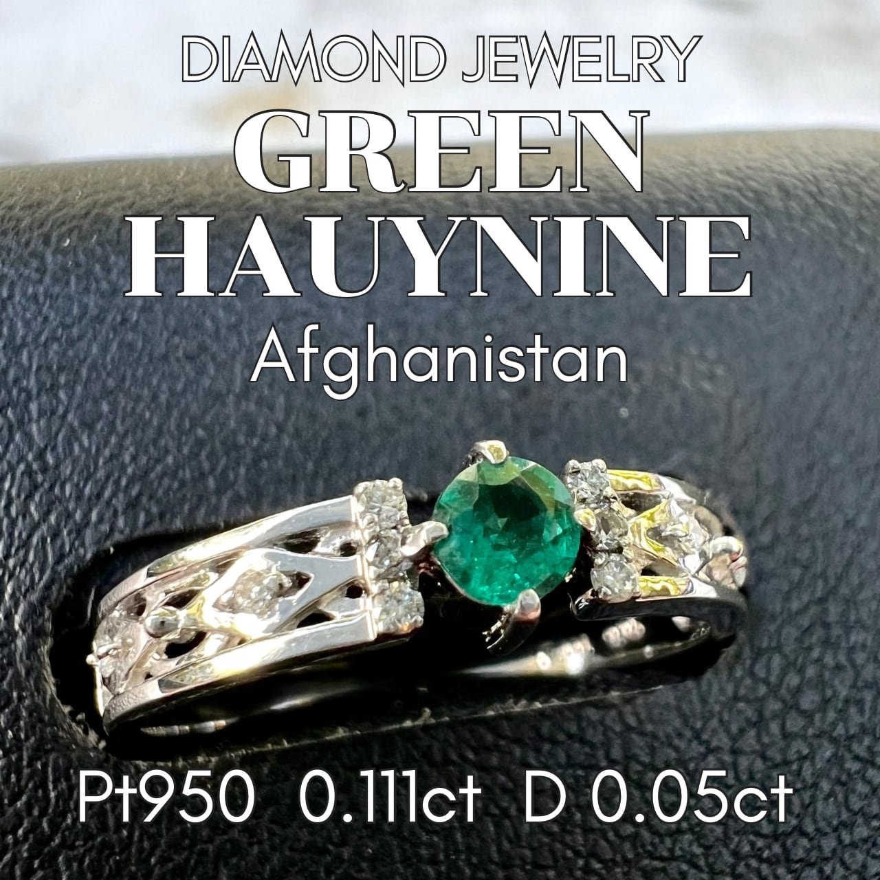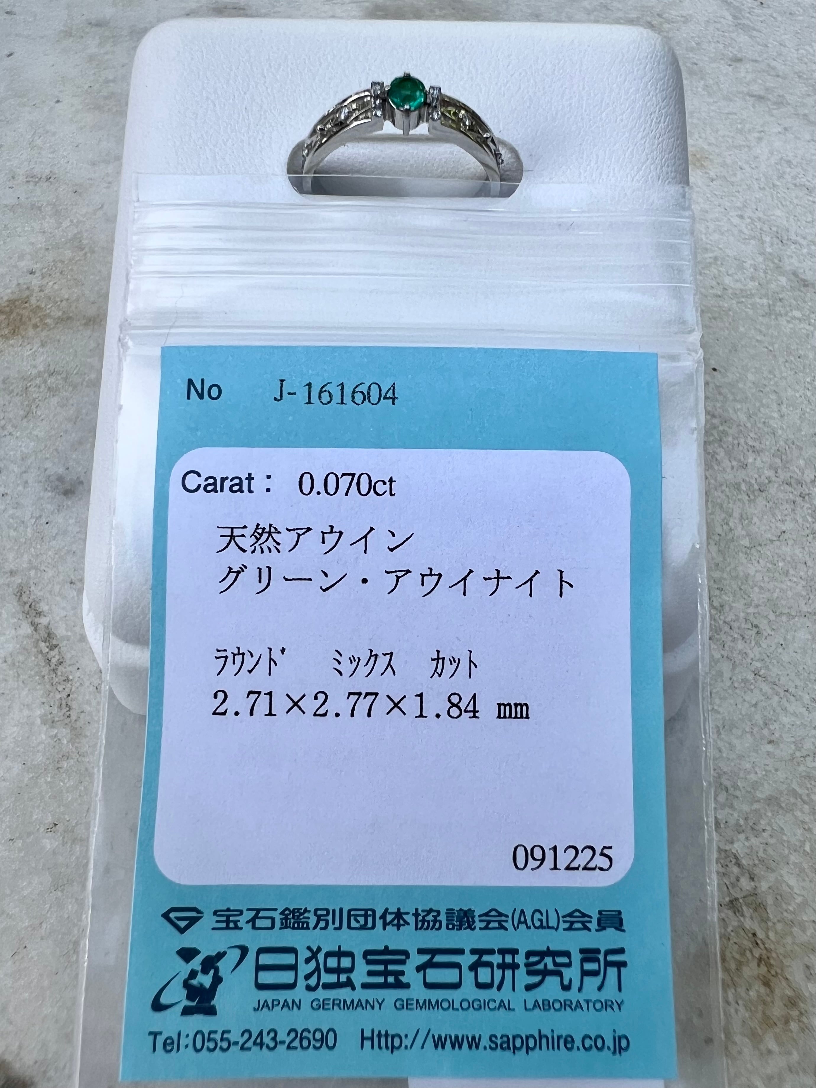 Pt950 グリーンアウイナイトダイヤモンドリング アフガニスタン産 JGGLソーティング付属