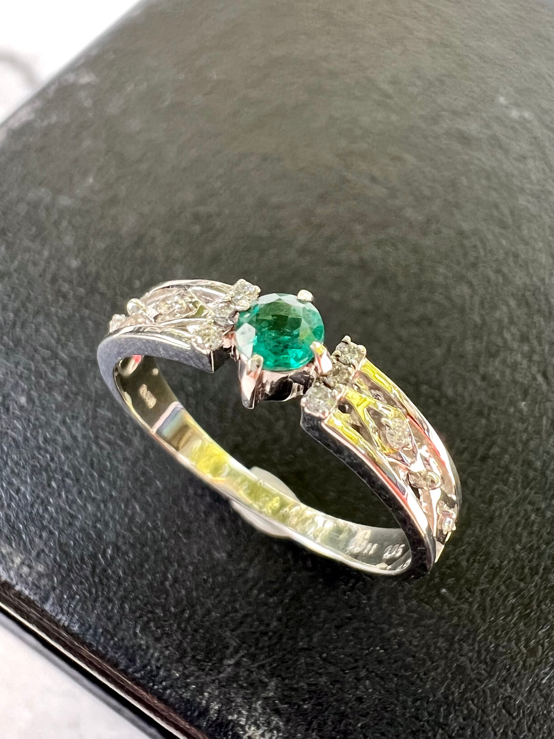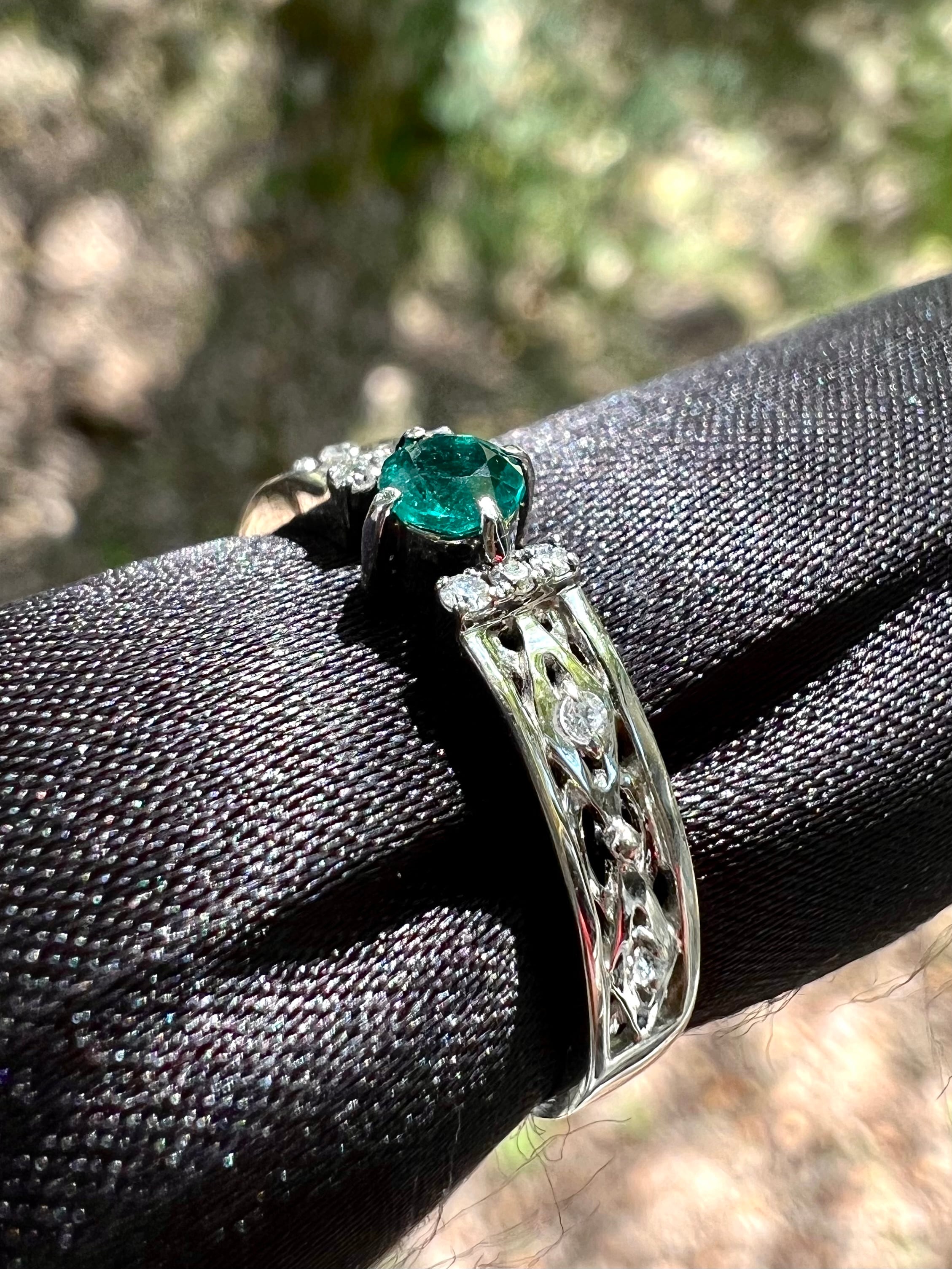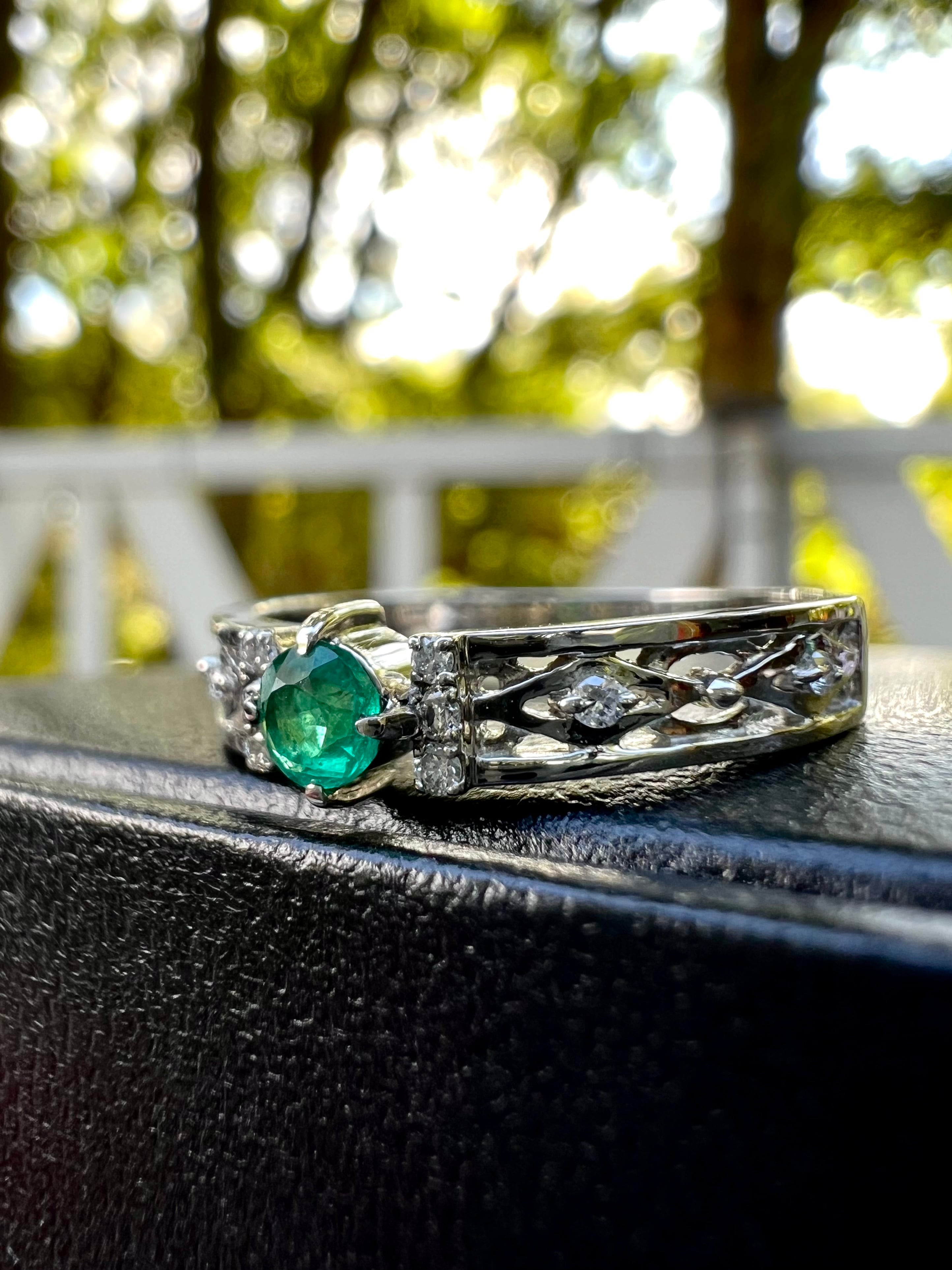 Pt950 グリーンアウイナイトダイヤモンドリング アフガニスタン産 JGGLソーティング付属