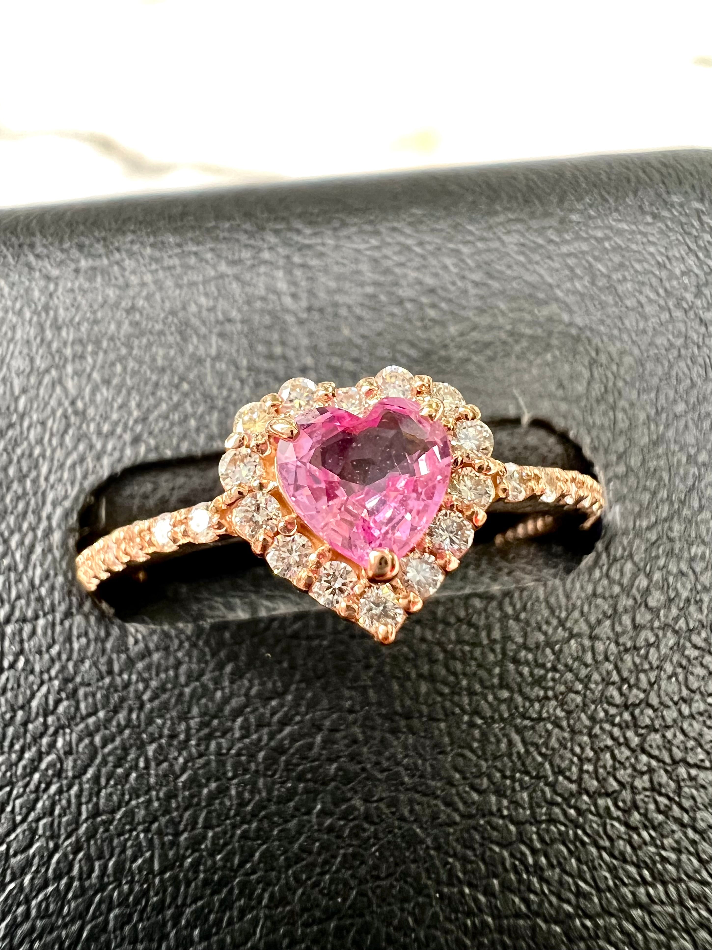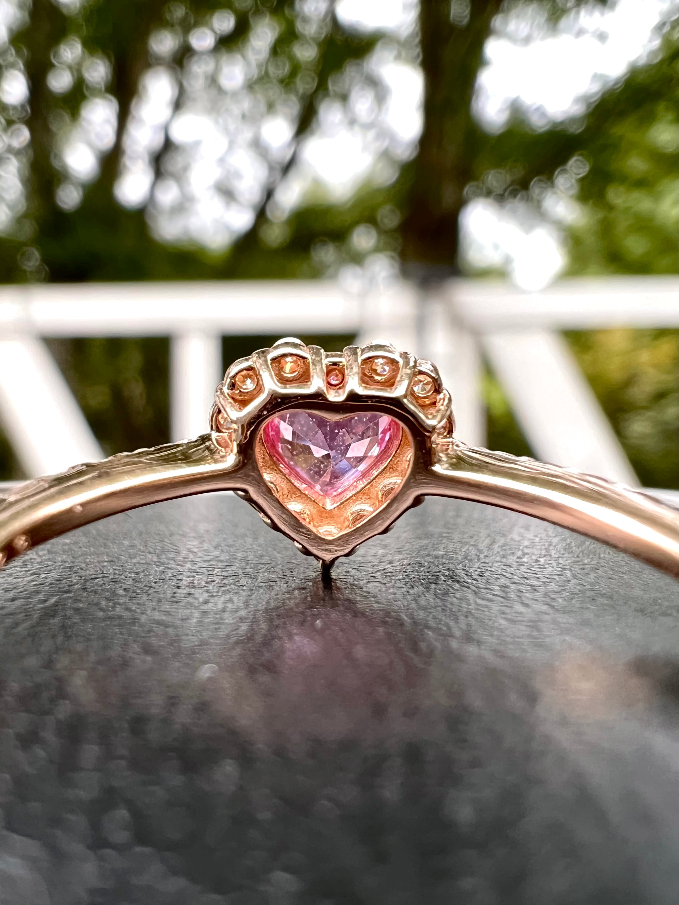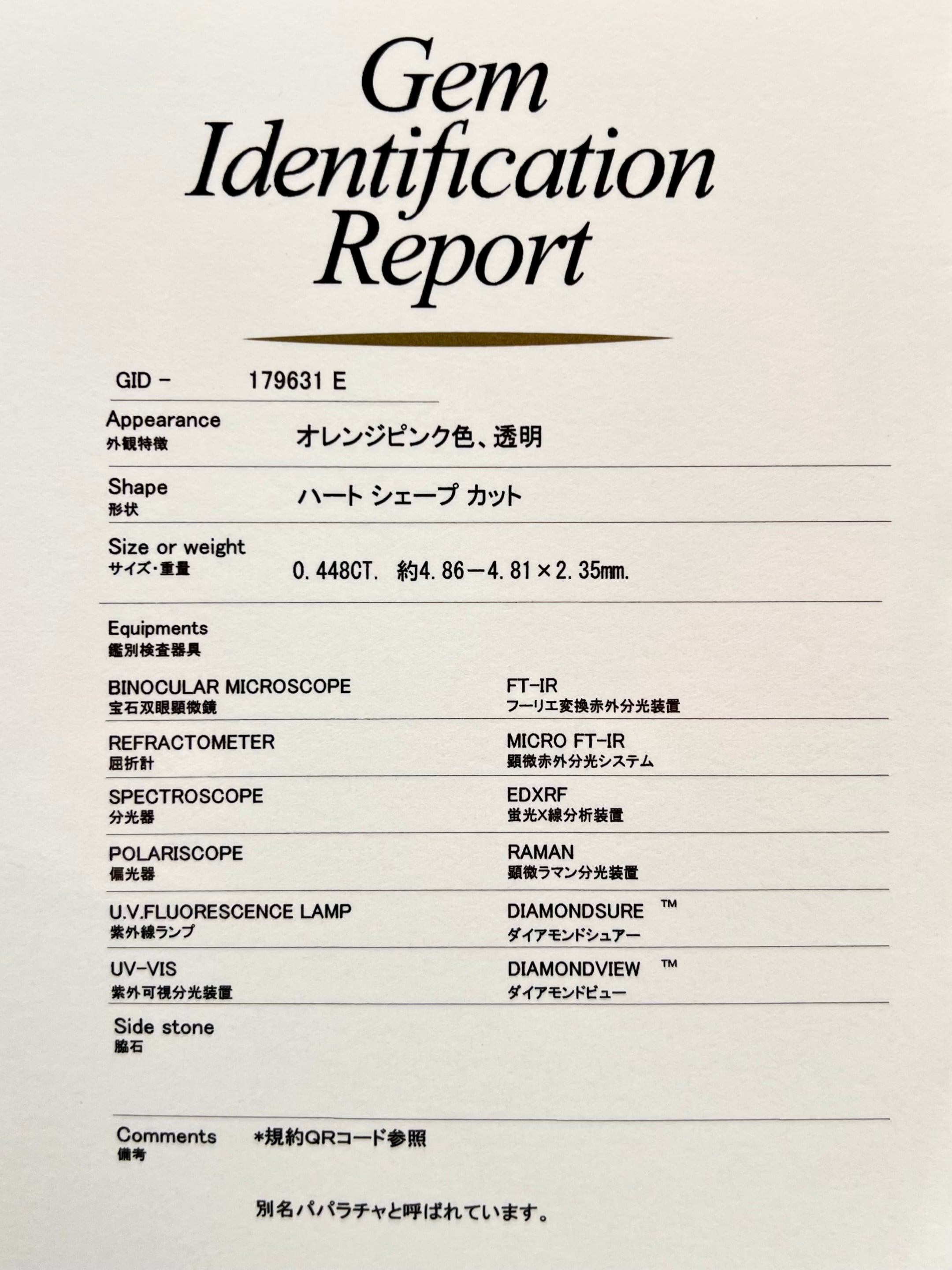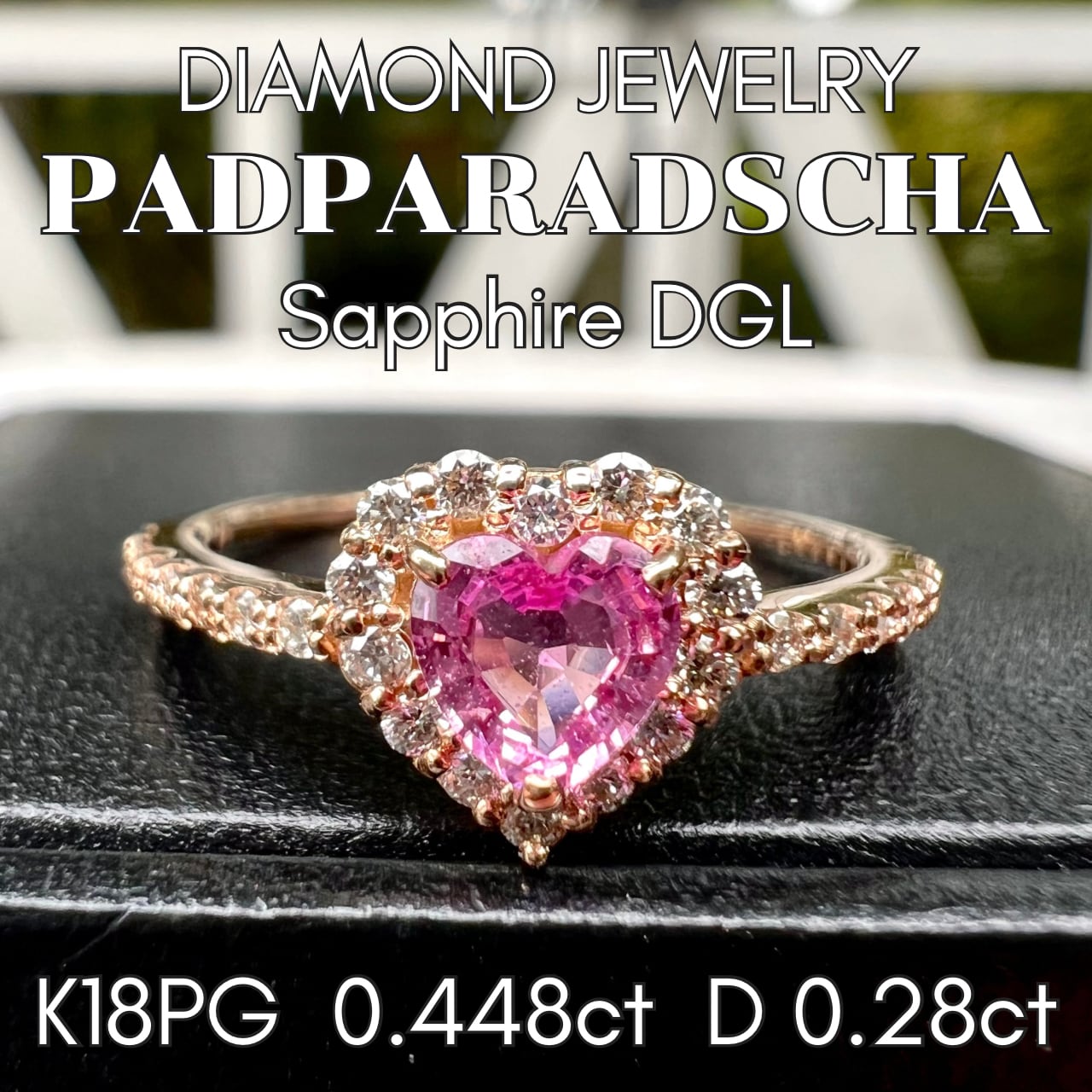 K18PG ハート!パパラチアサファイヤ0.448ct ダイヤモンドリング DGL鑑別書付属