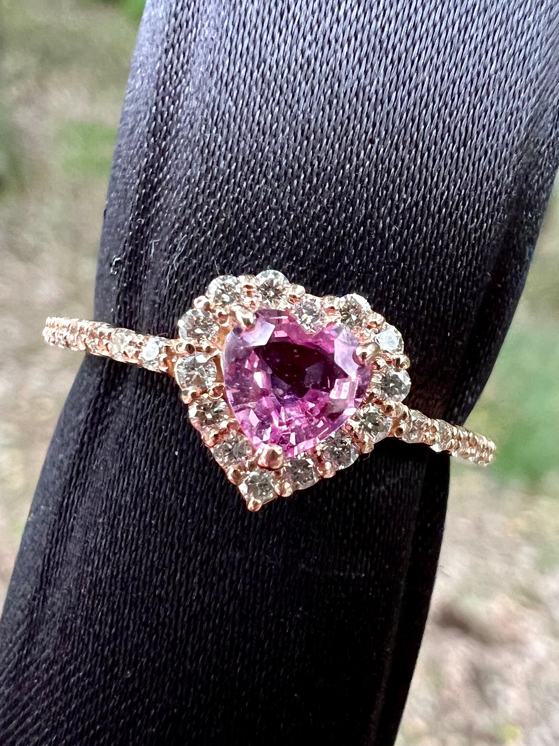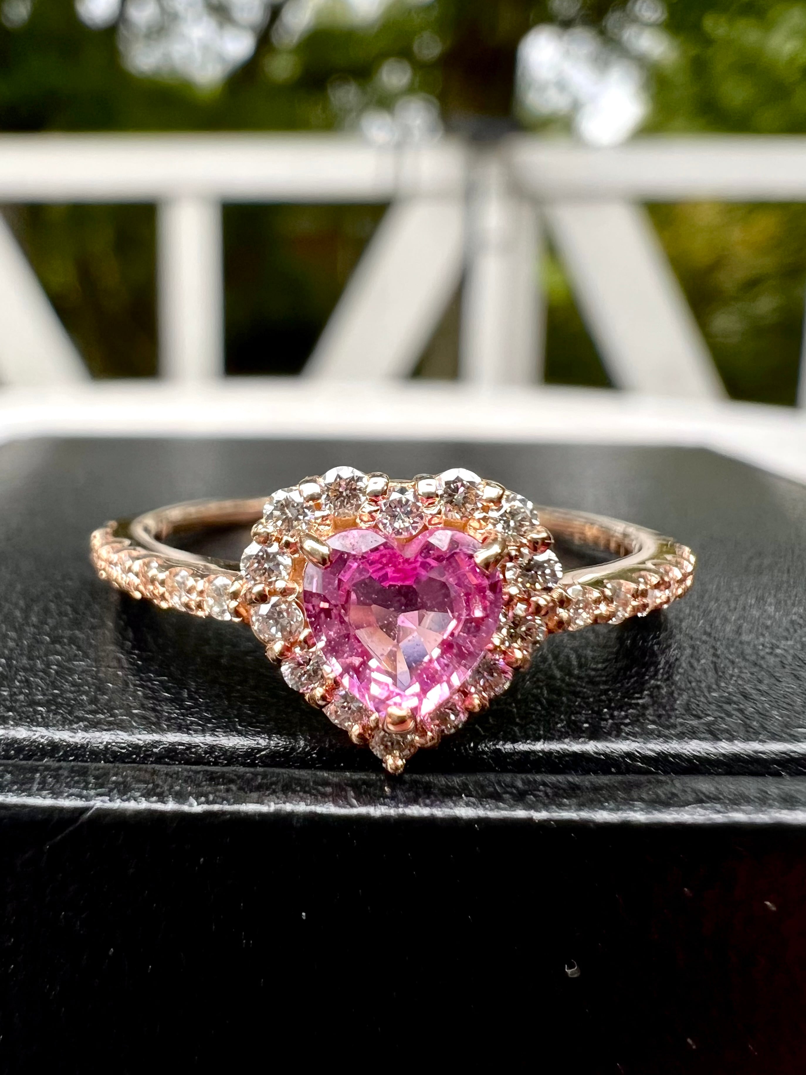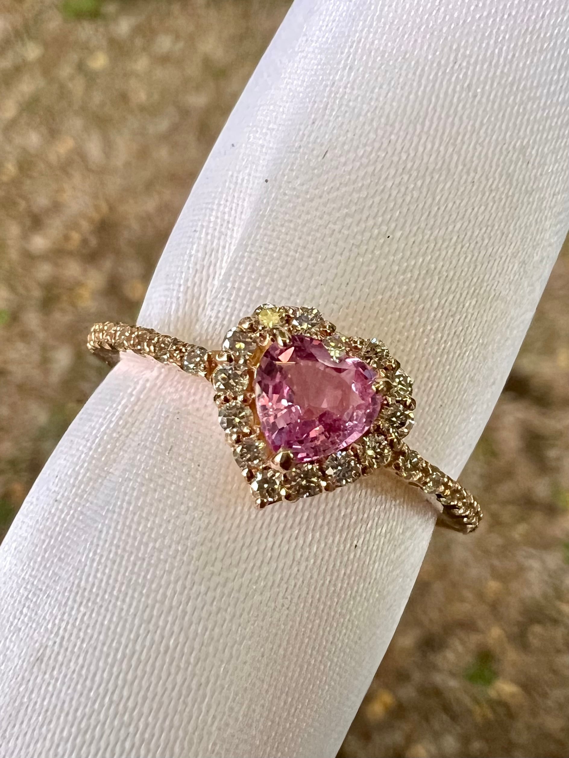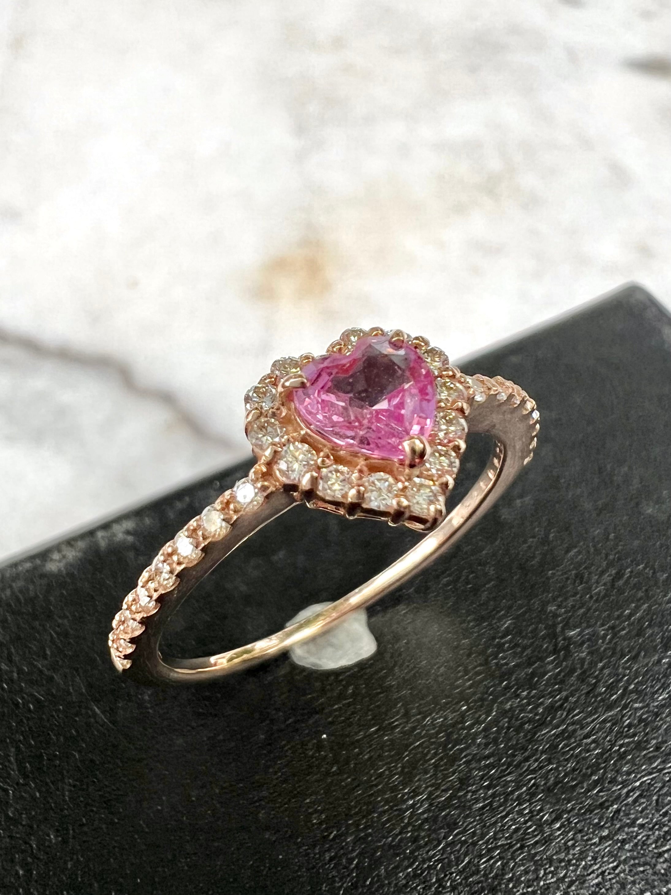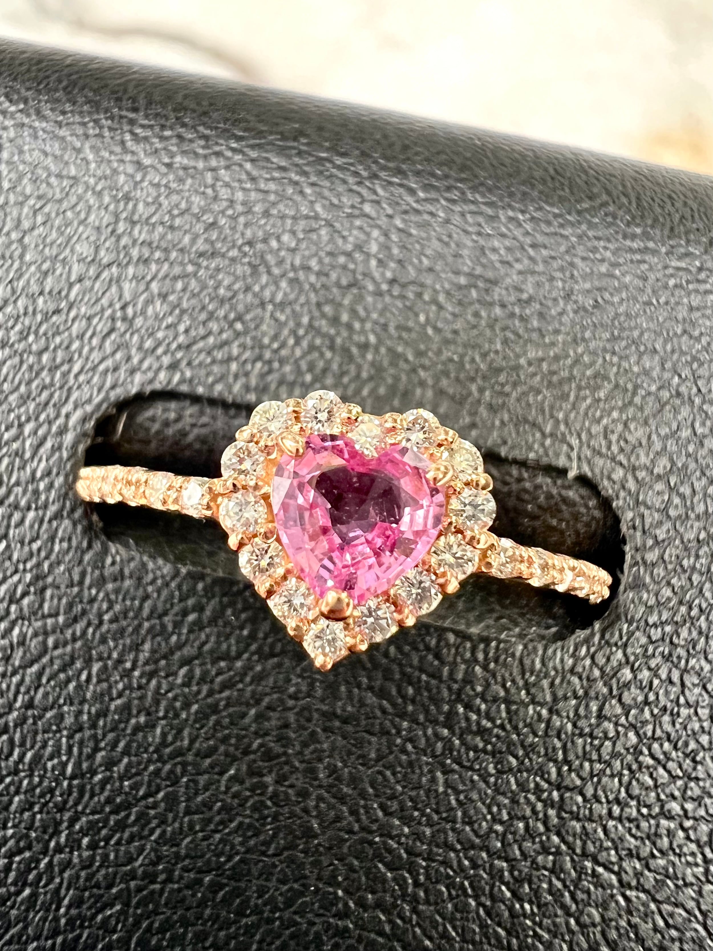 K18PG ハート!パパラチアサファイヤ0.448ct ダイヤモンドリング DGL鑑別書付属