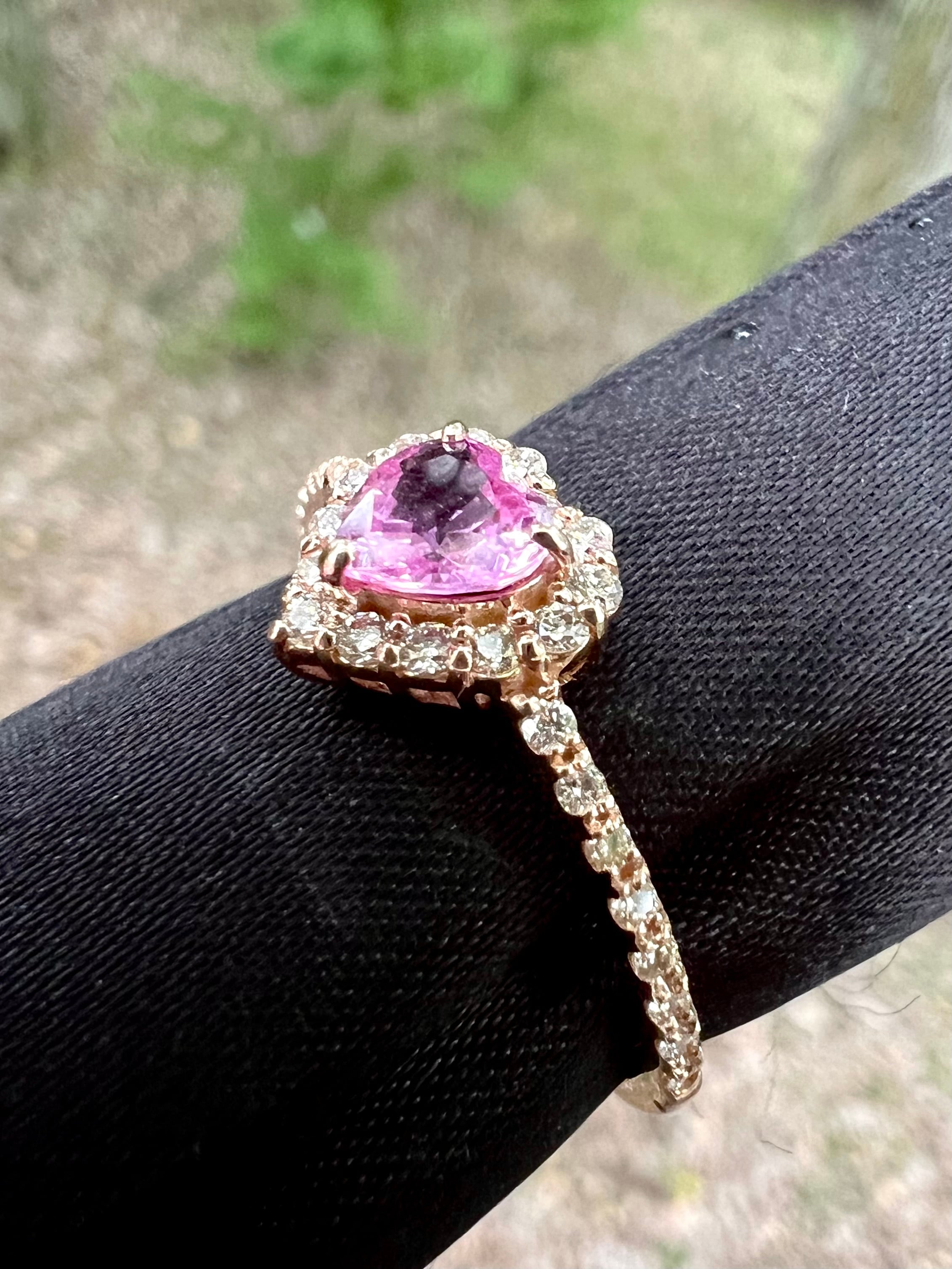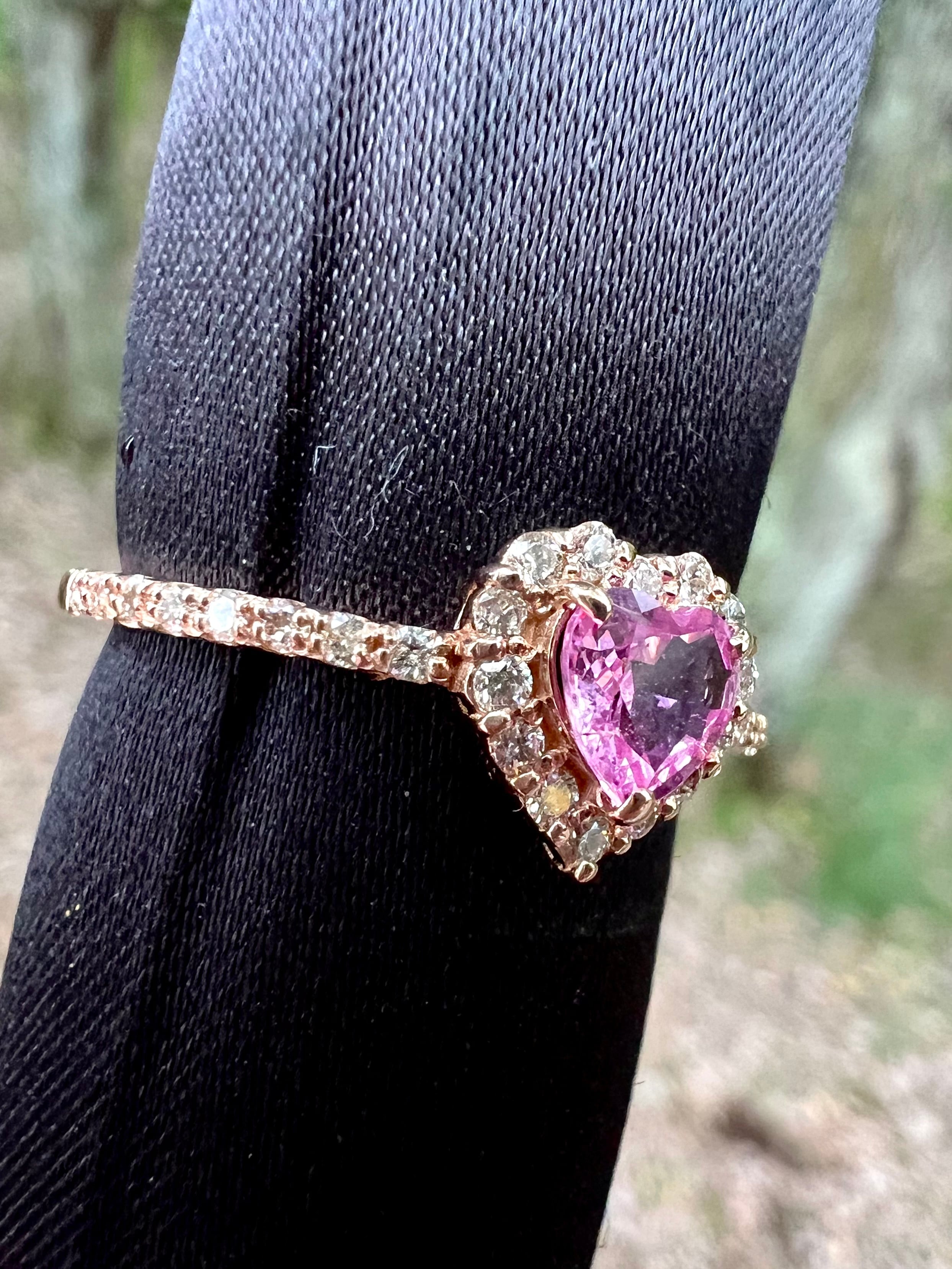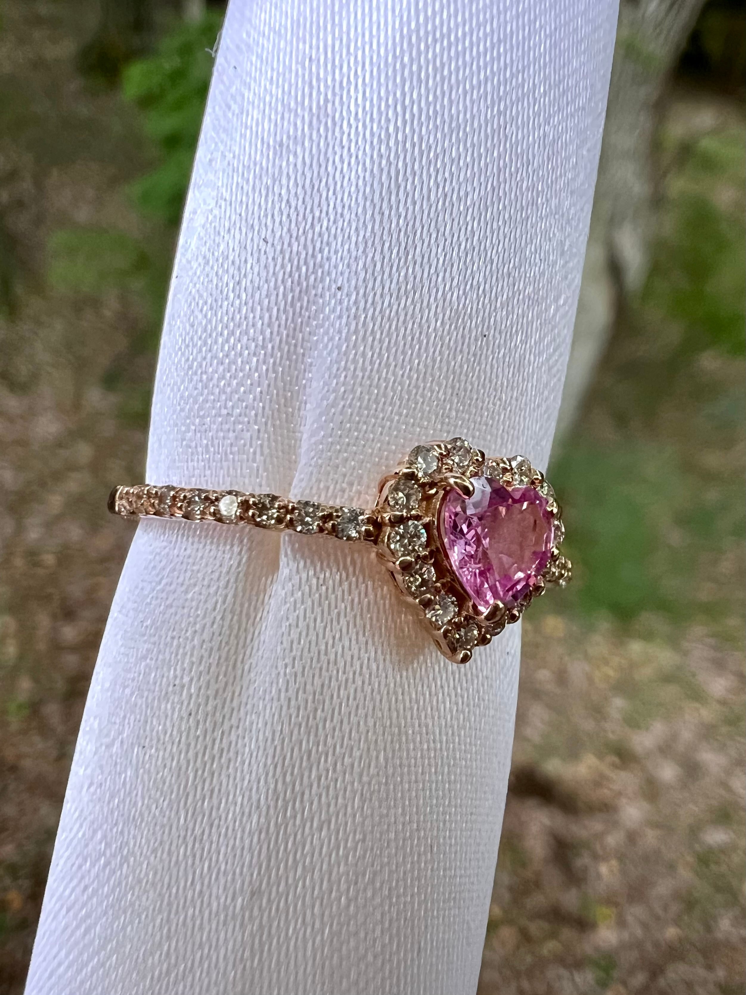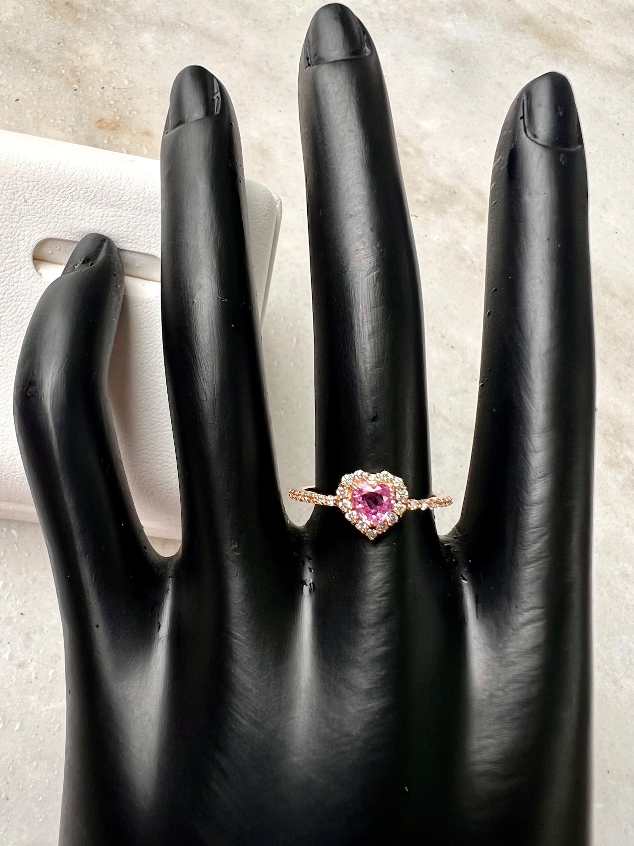 K18PG ハート!パパラチアサファイヤ0.448ct ダイヤモンドリング DGL鑑別書付属