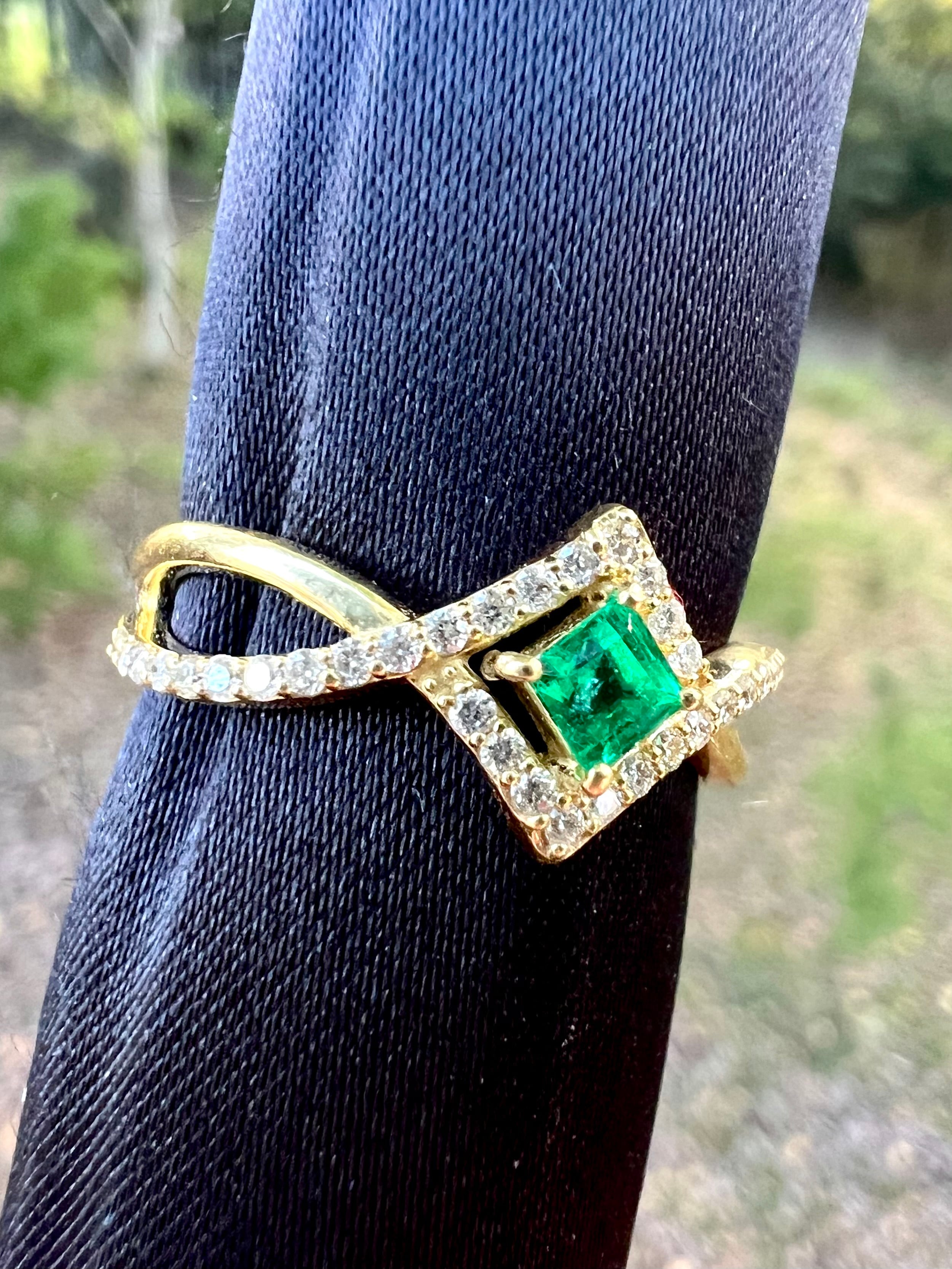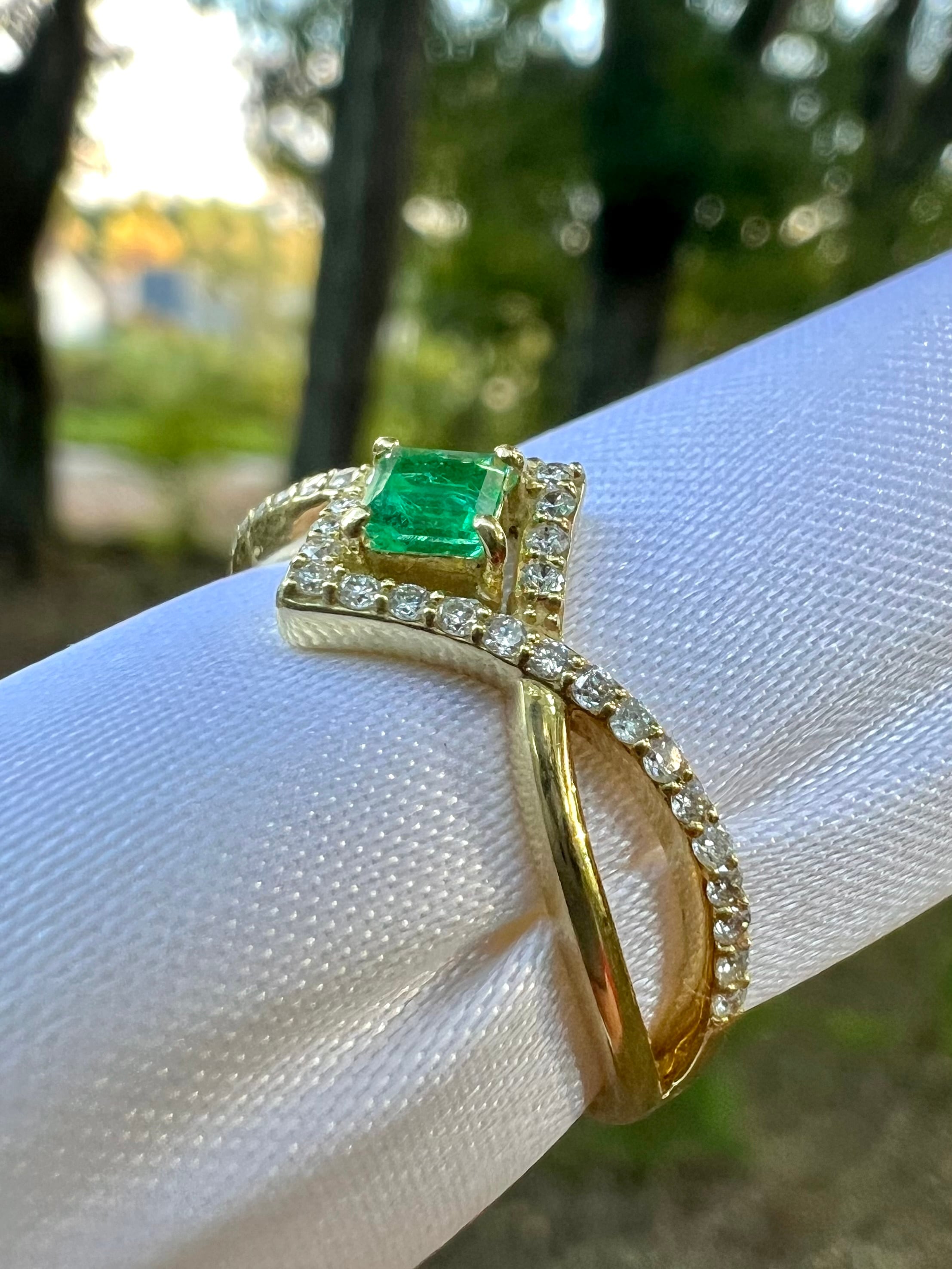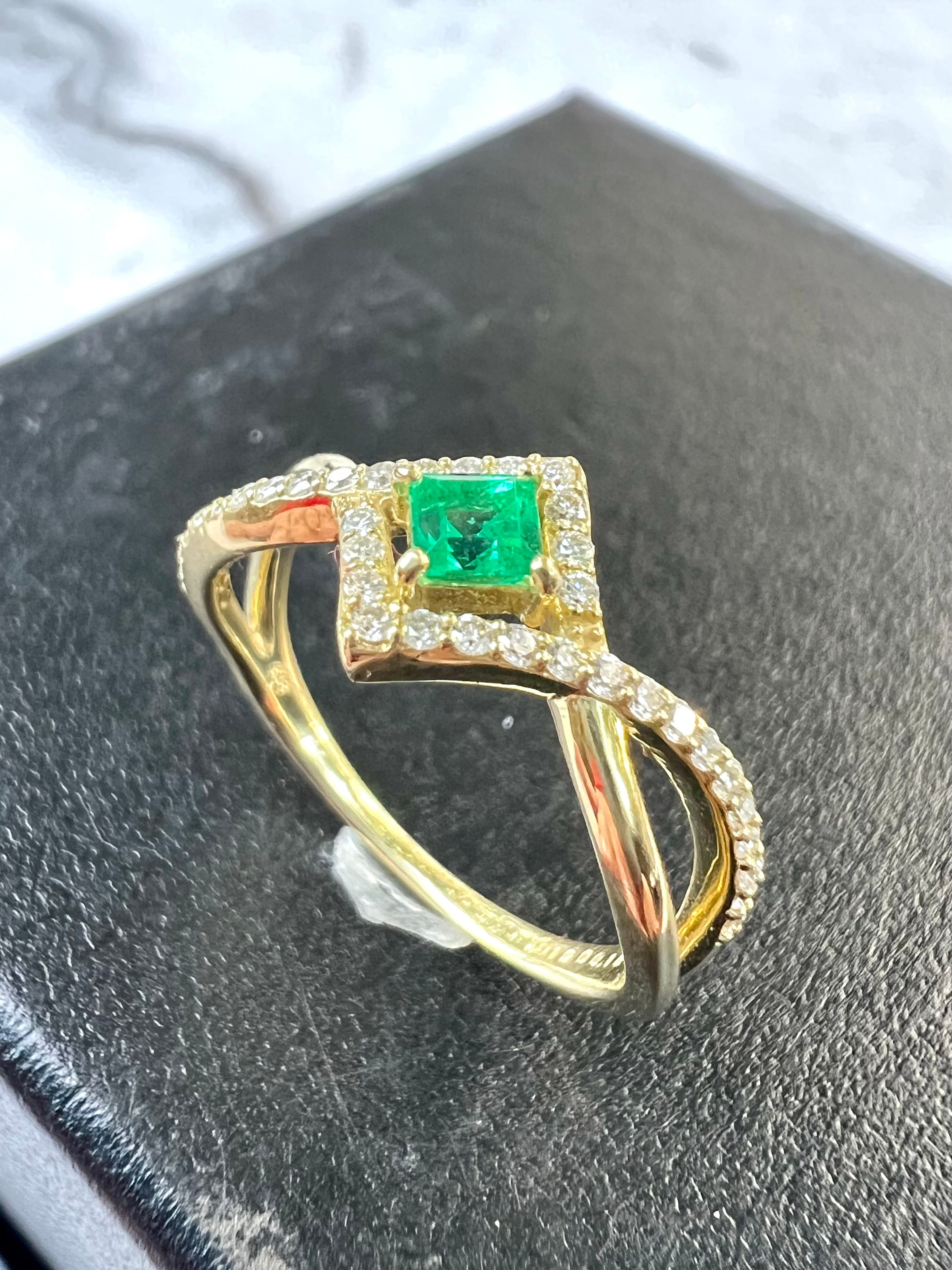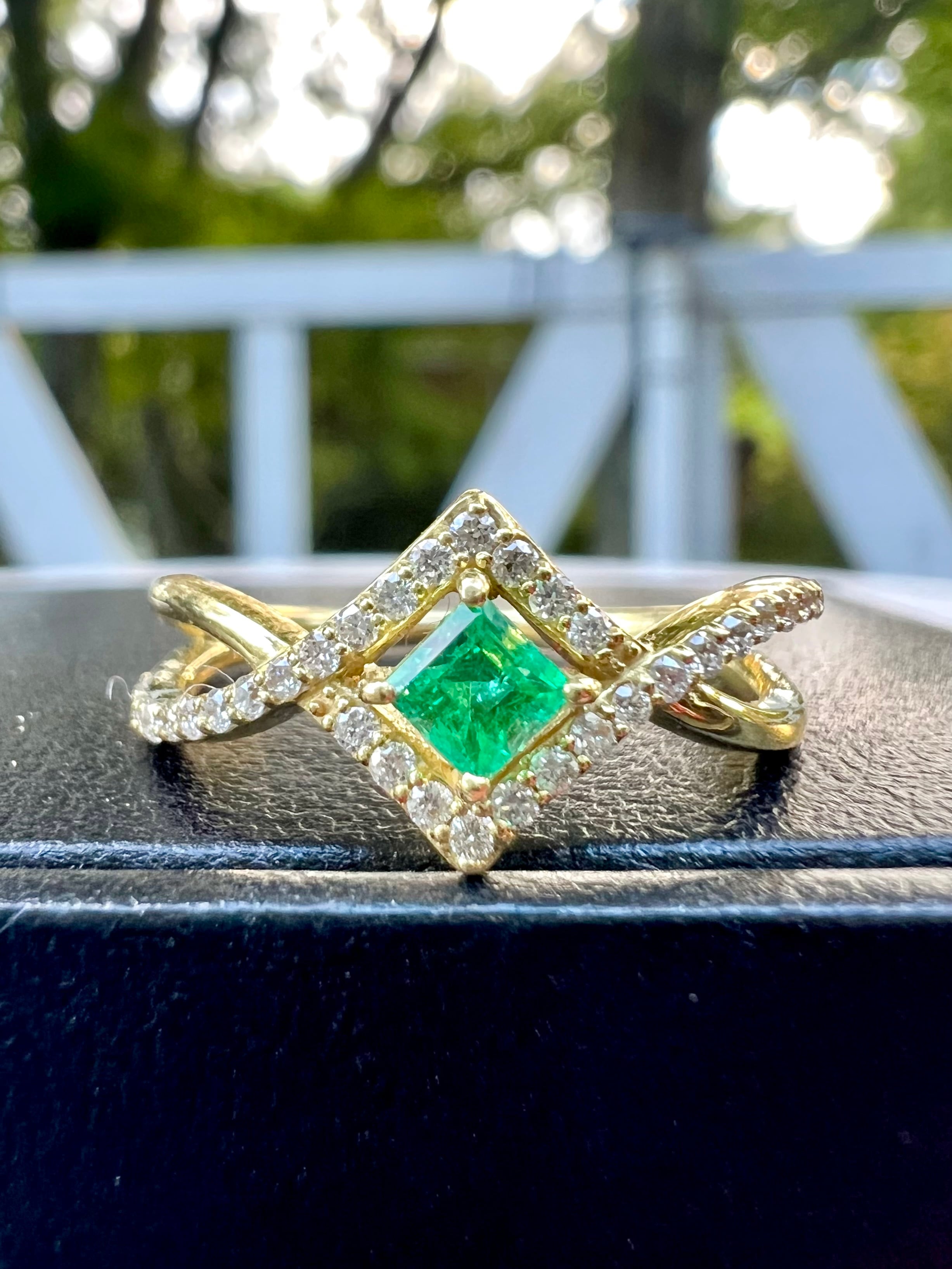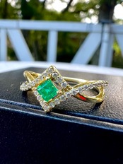 ファッショナブル!Zambia産 エメラルド K18ダイヤモンドリング