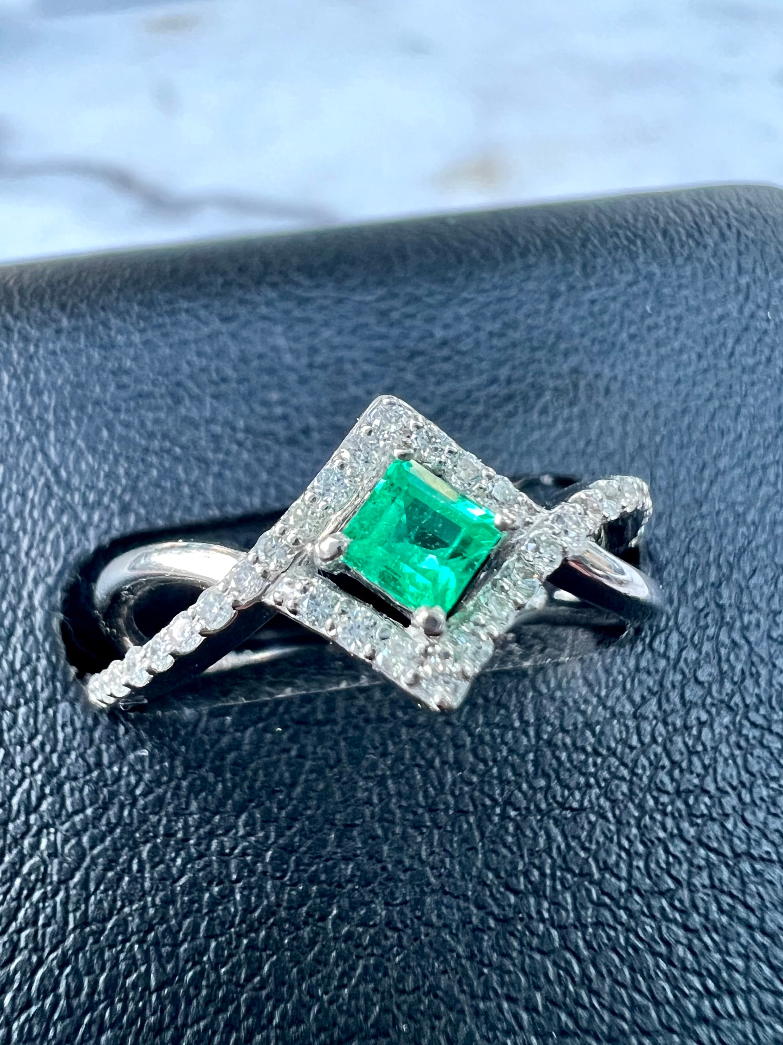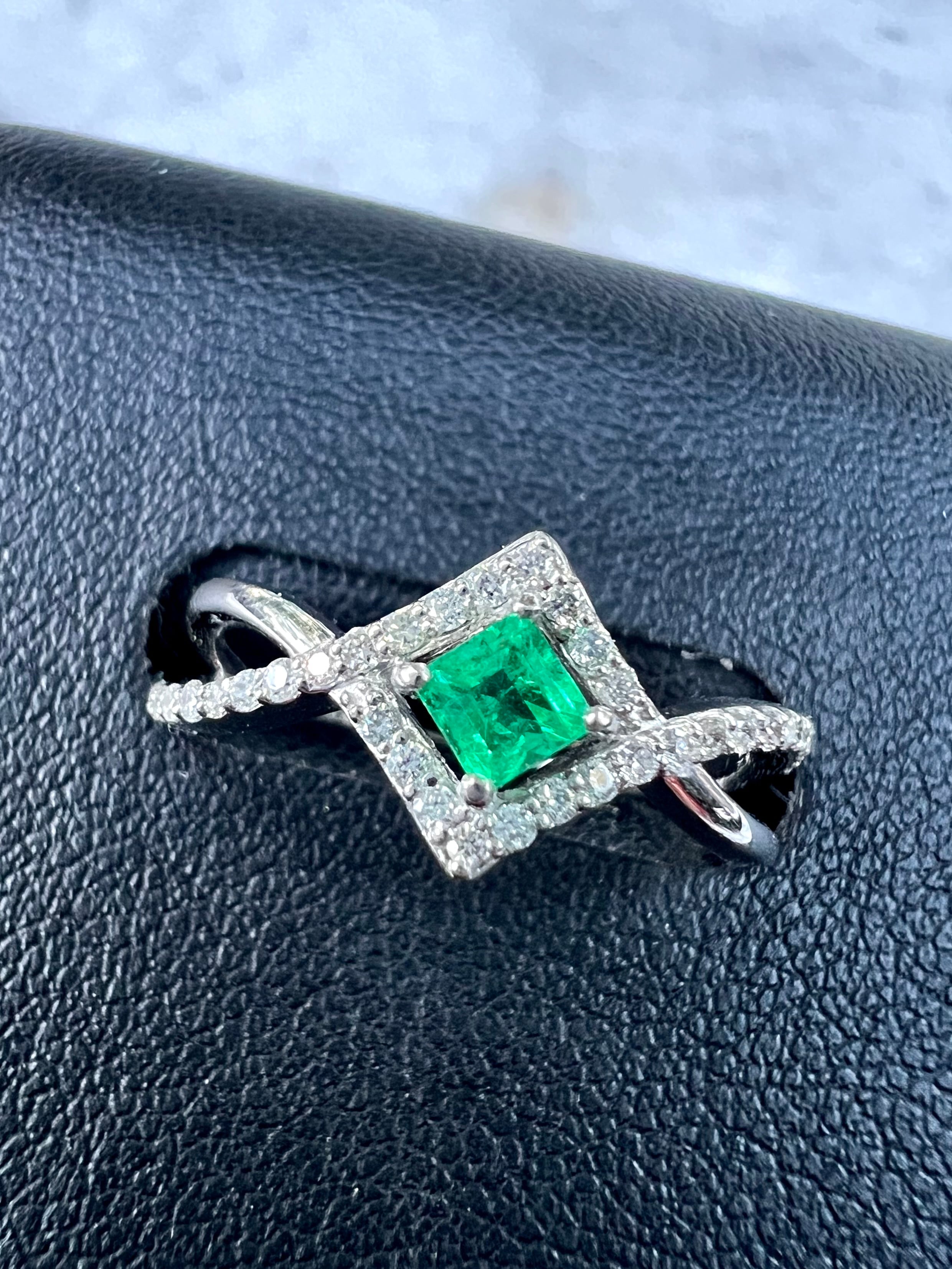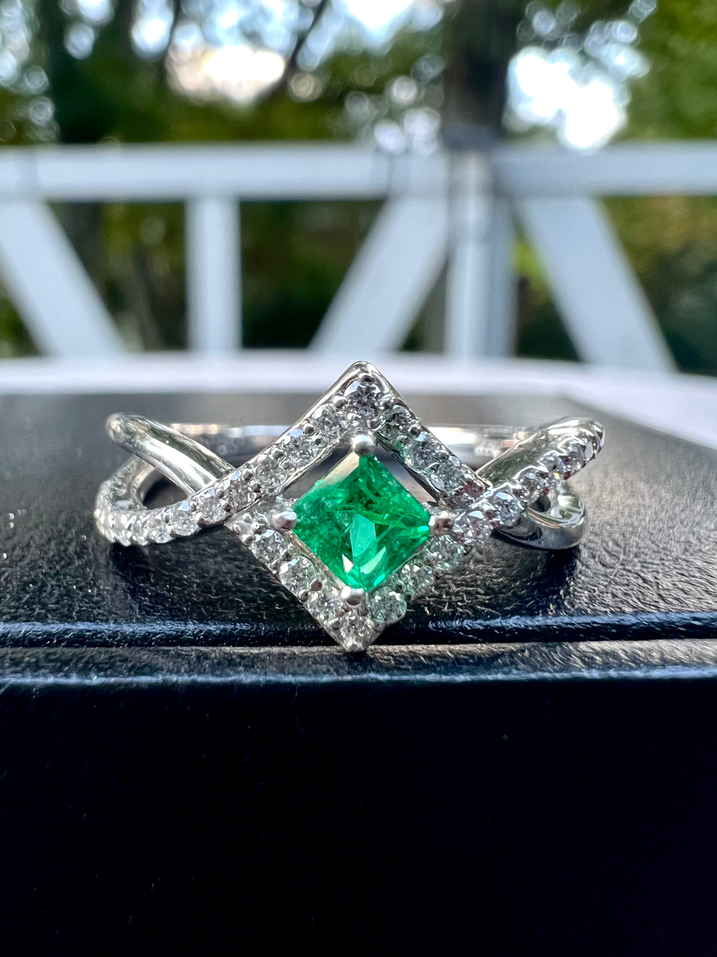 ファッショナブル!Zambia産 エメラルド Pt950ダイヤモンドリング