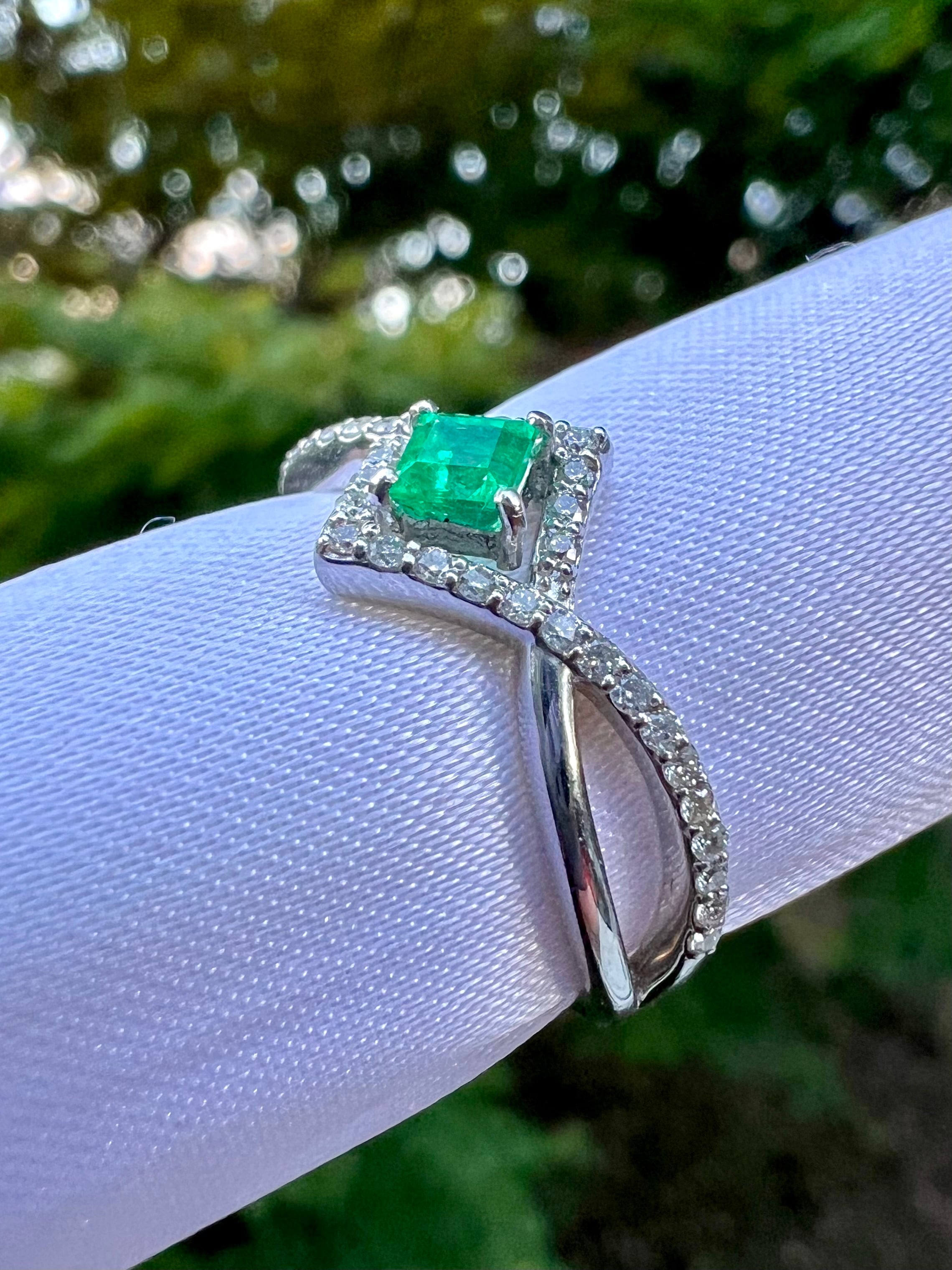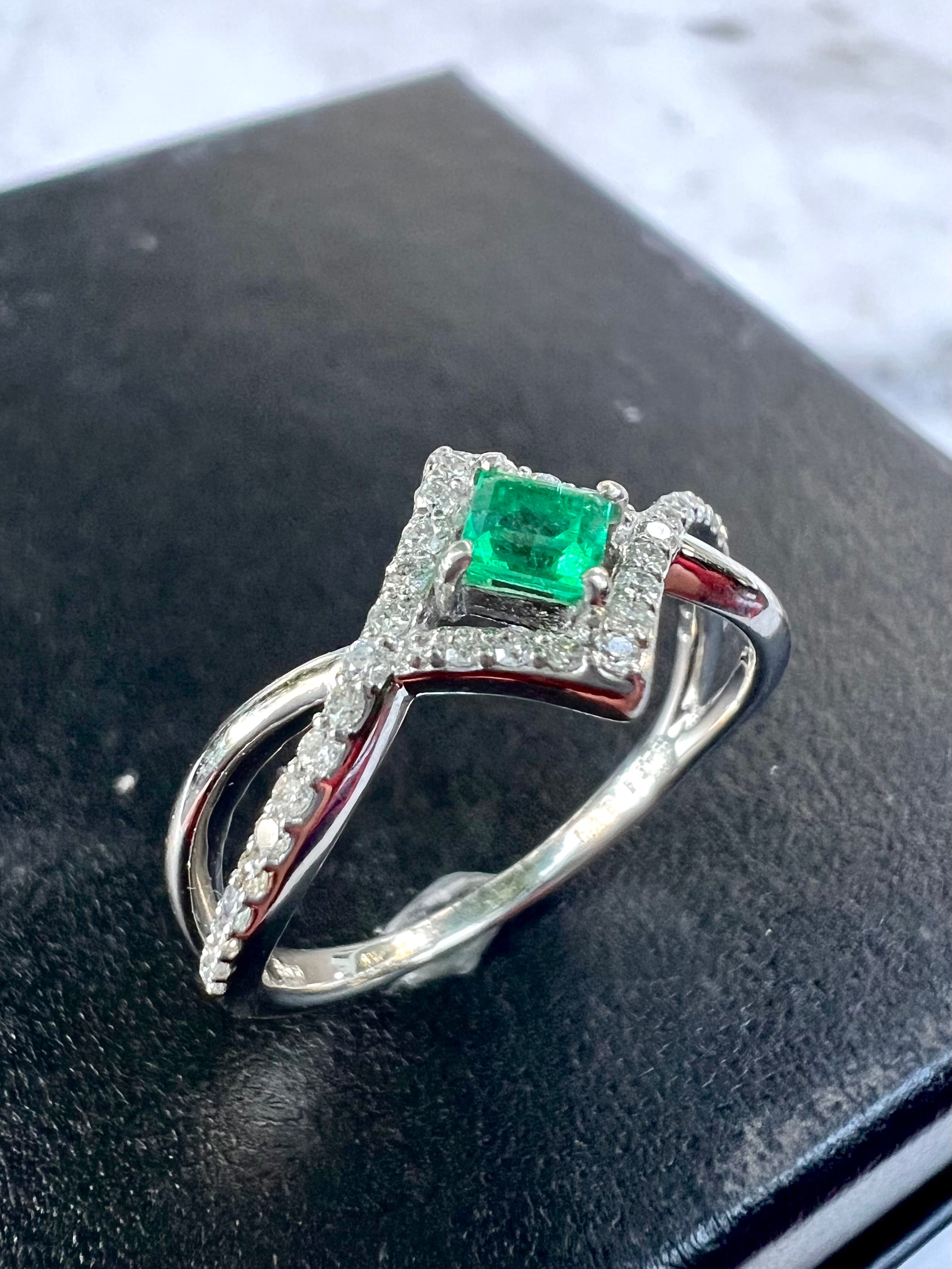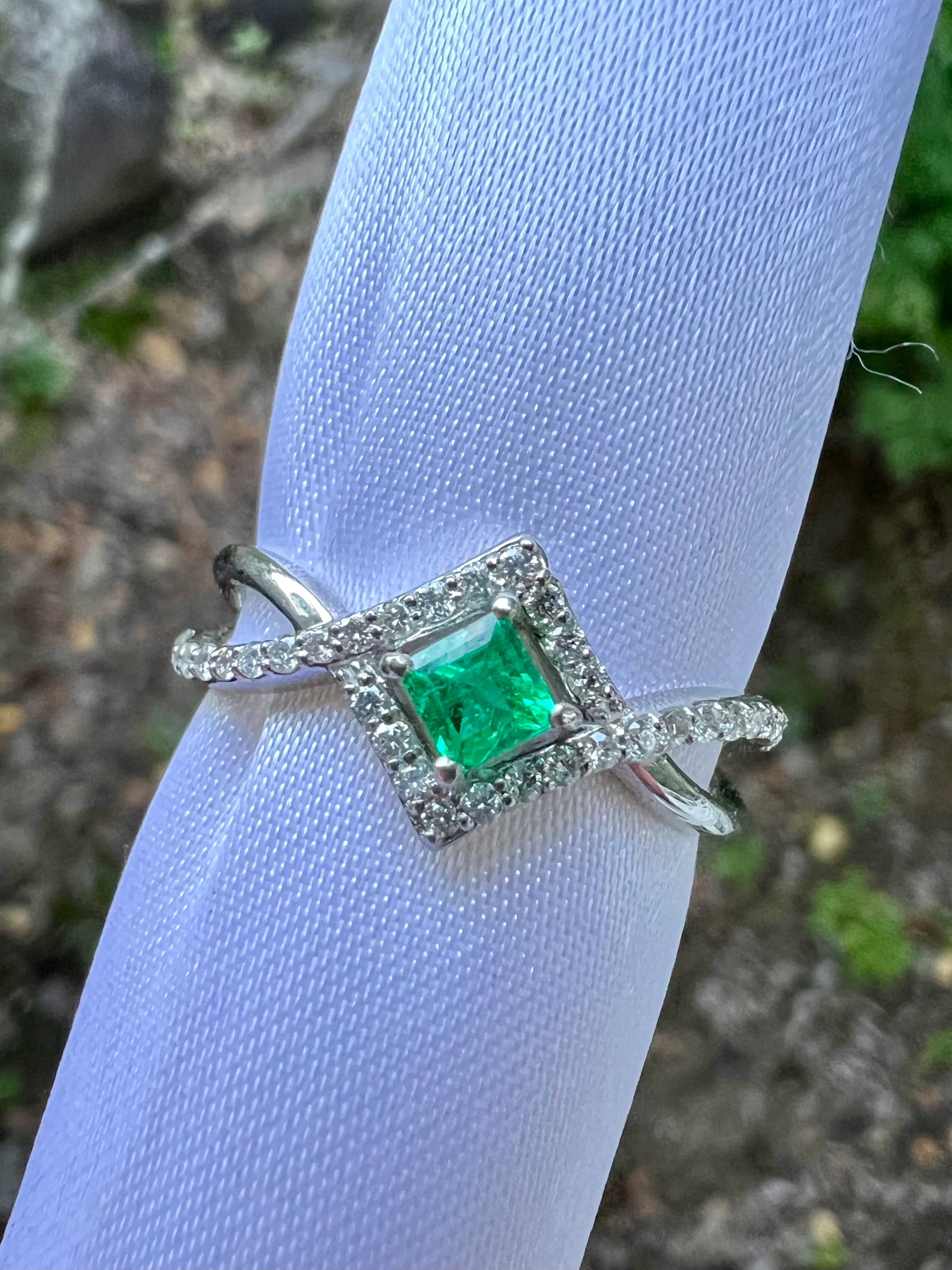 ファッショナブル!Zambia産 エメラルド Pt950ダイヤモンドリング