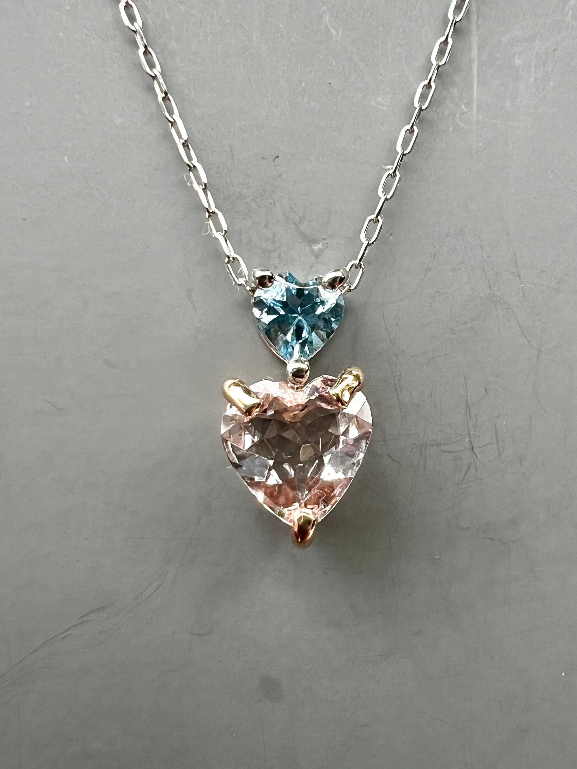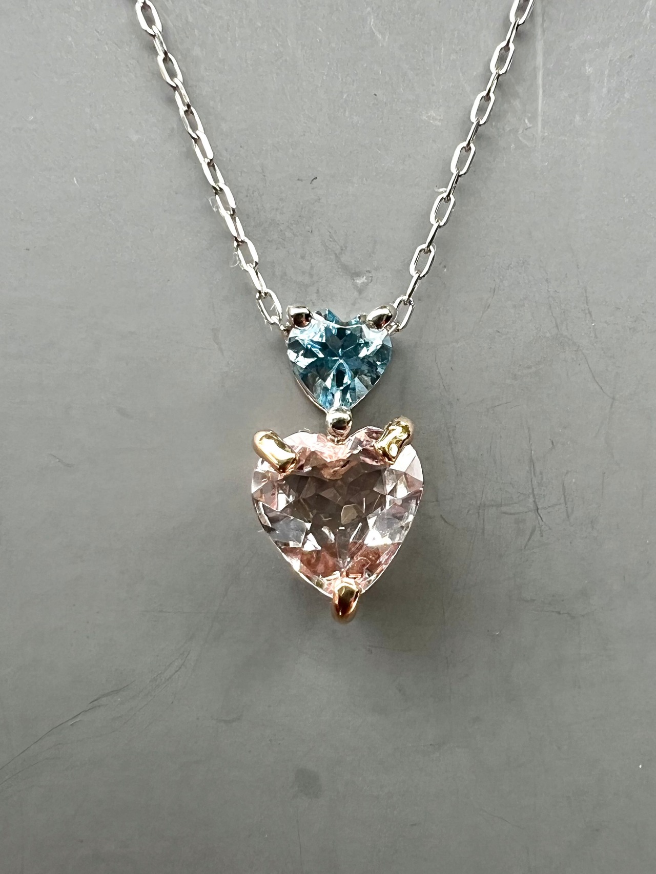 超可愛いぃ!モルガナイト&アクアマリンのハートシェイプジュエリーネックレス