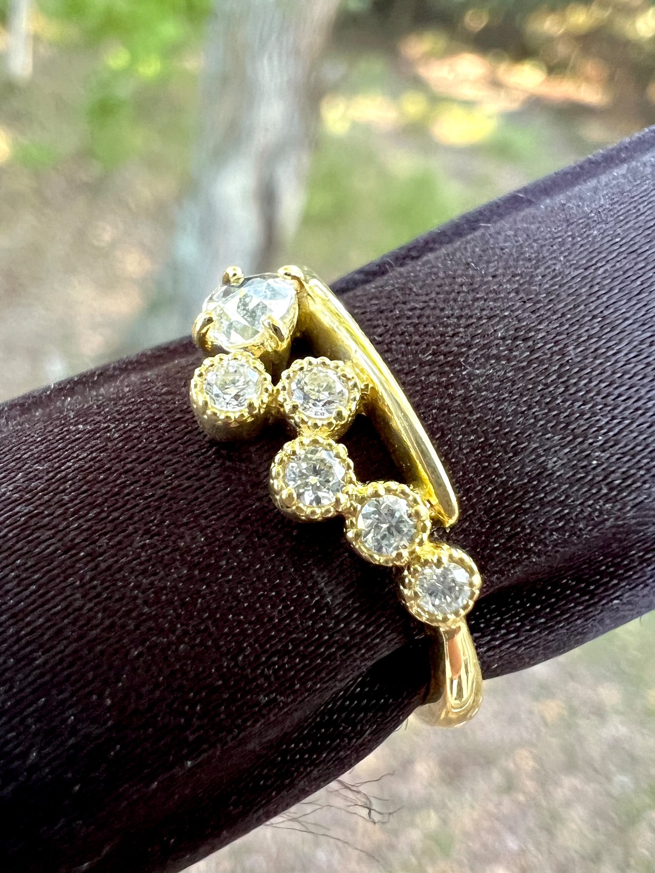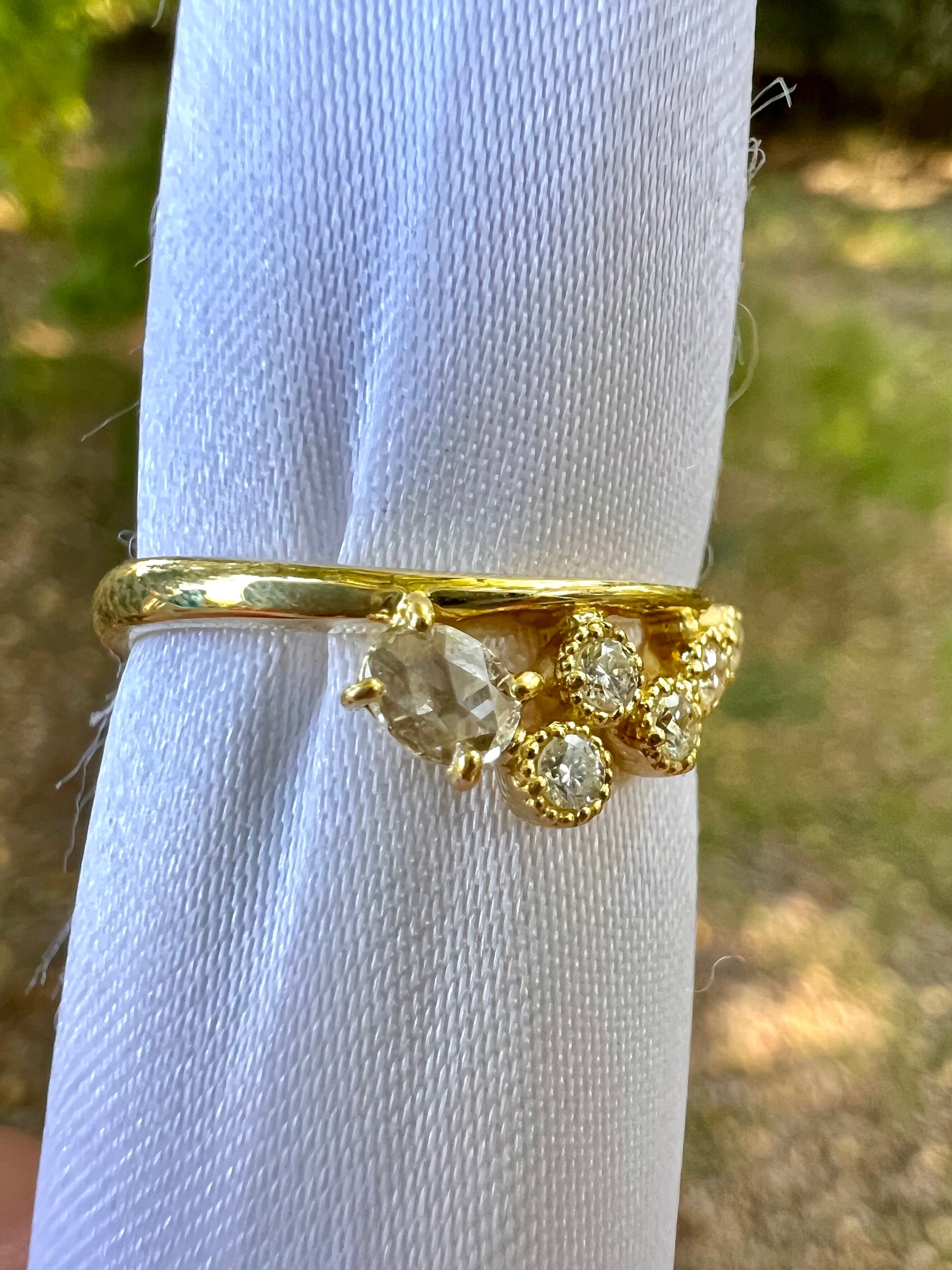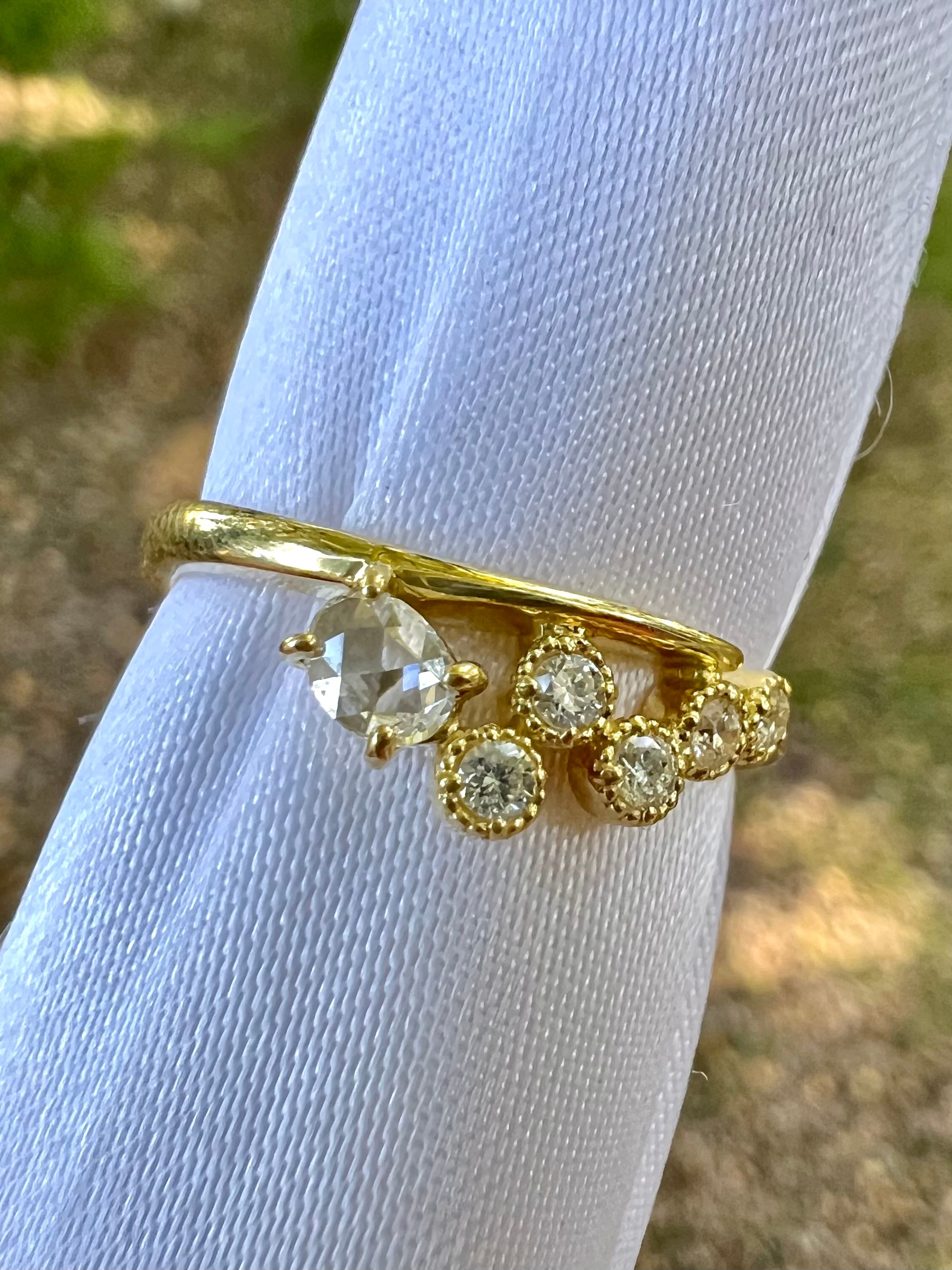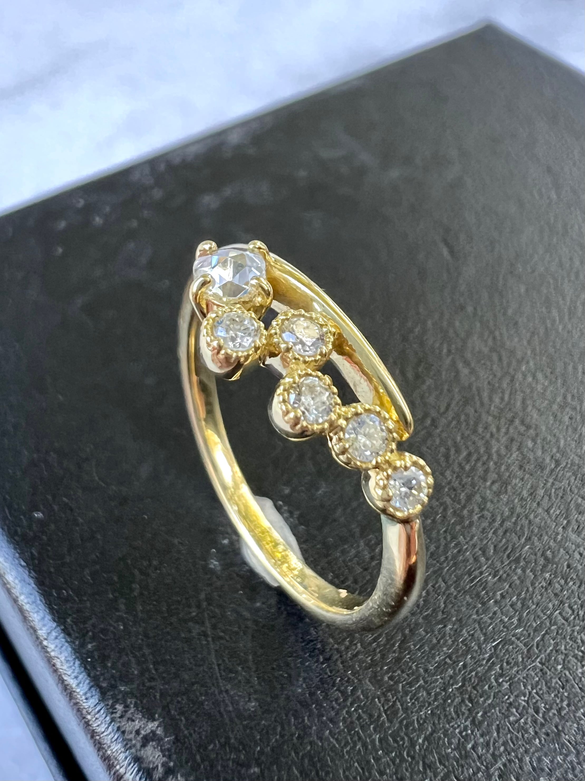 大きめのローズカットダイヤモンドにミルで巻いたブリリアントデザインがとても可愛い!
