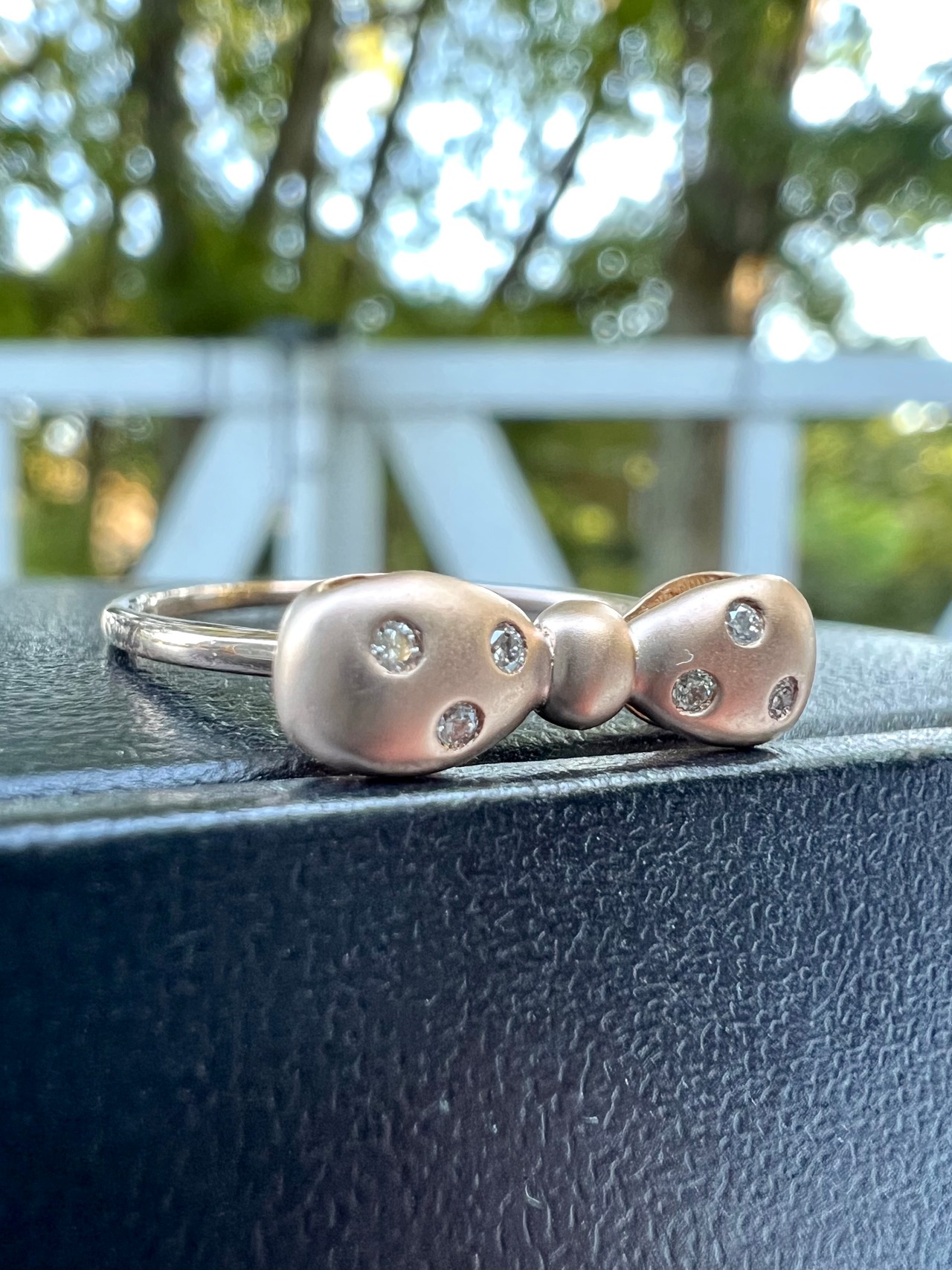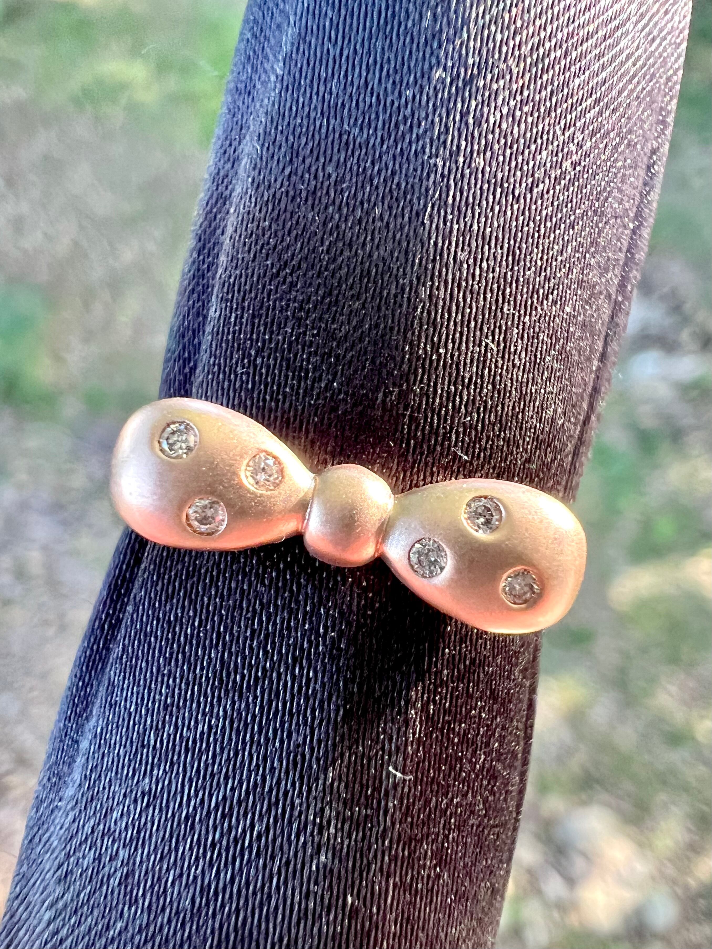 ダイヤモンドが水玉の様な配置のとても可愛いリボンモチーフリングです。