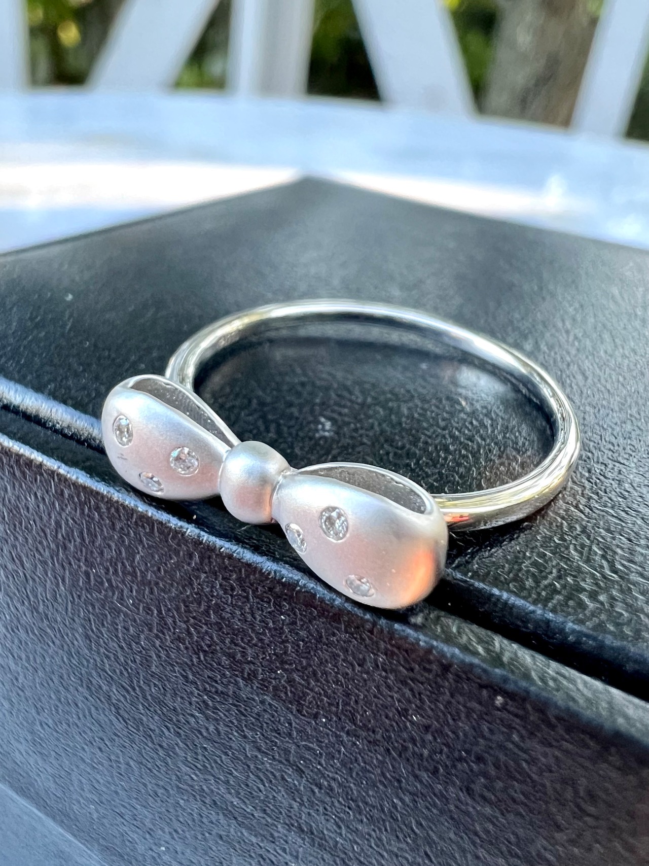 超可愛い! Pt950 ファッションジュエリー リボンモチーフダイヤモンドリング