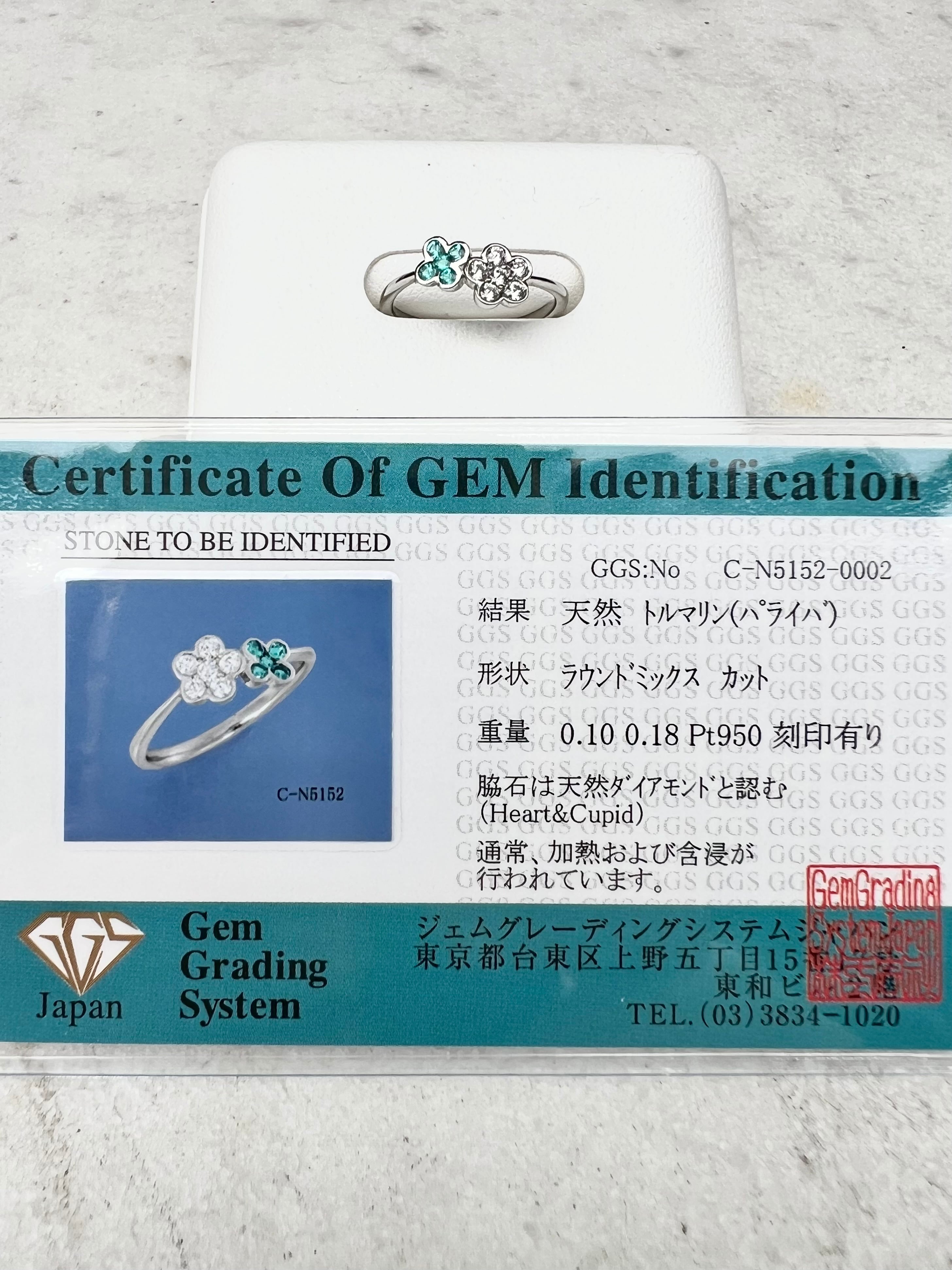 Pt950ブラジル産パライバトルマリンフラワーモチーフデザインALL H&Cダイヤモンドリング