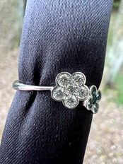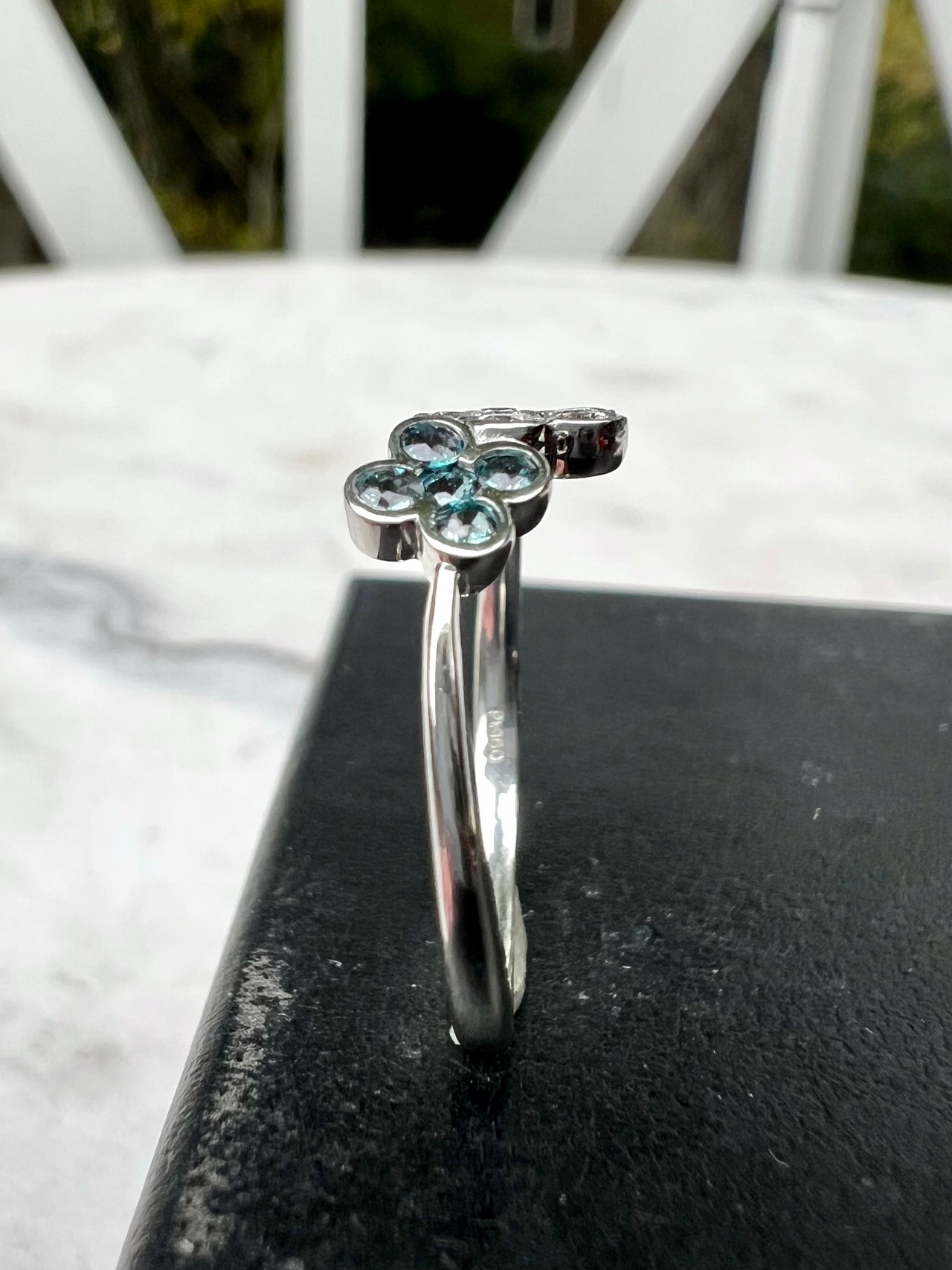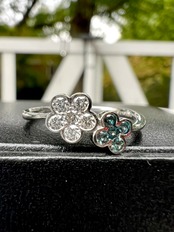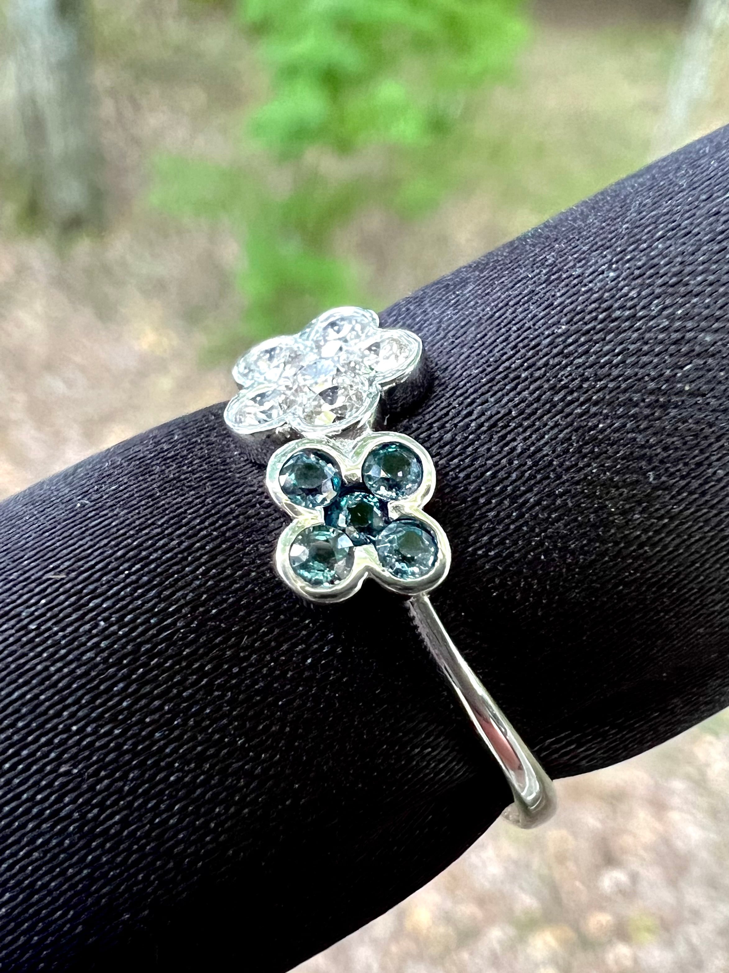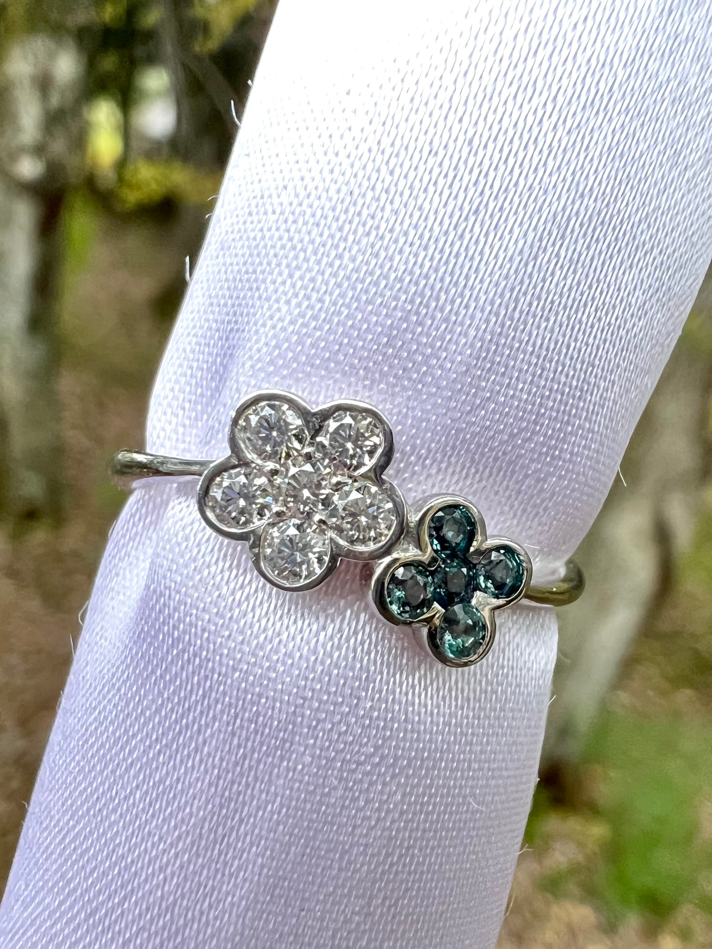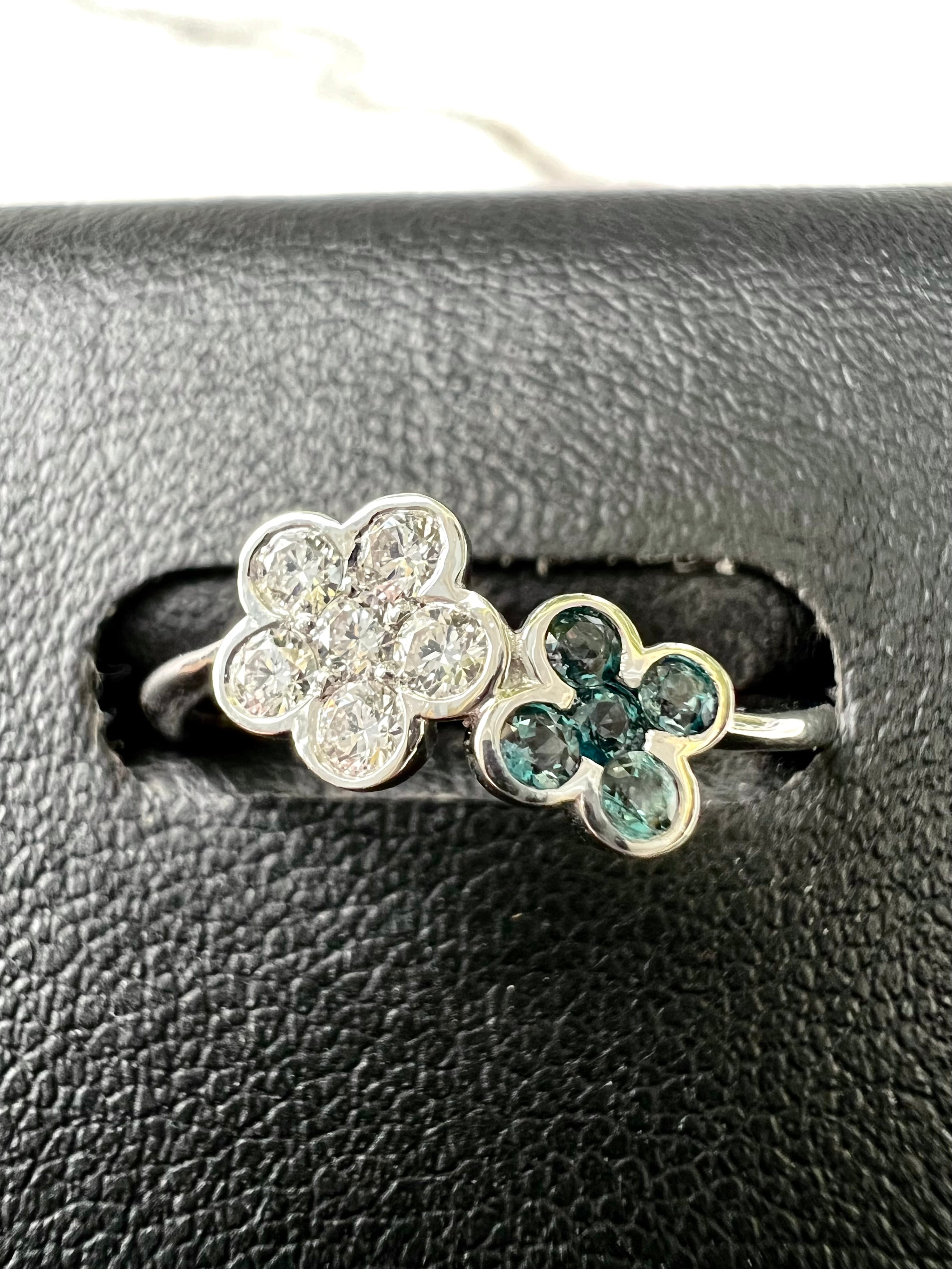 H&Cダイヤで作られた桜のような5枚の花びらのお花のお隣にに5粒のアレキサンドライトで作られた四つ葉のクローバーを添えられた超絶可愛いリングですっ!
