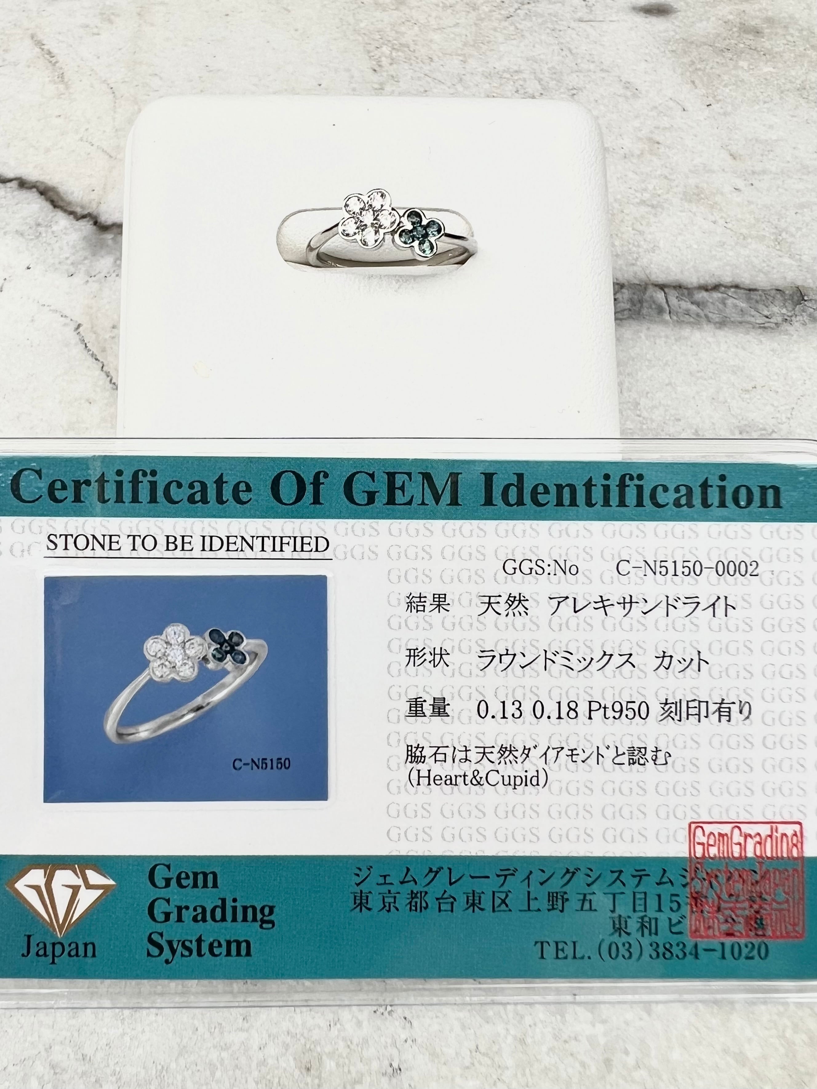 Pt950ブラジル産アレキサンドライトフラワーモチーフデザインALL H&Cダイヤモンドリング