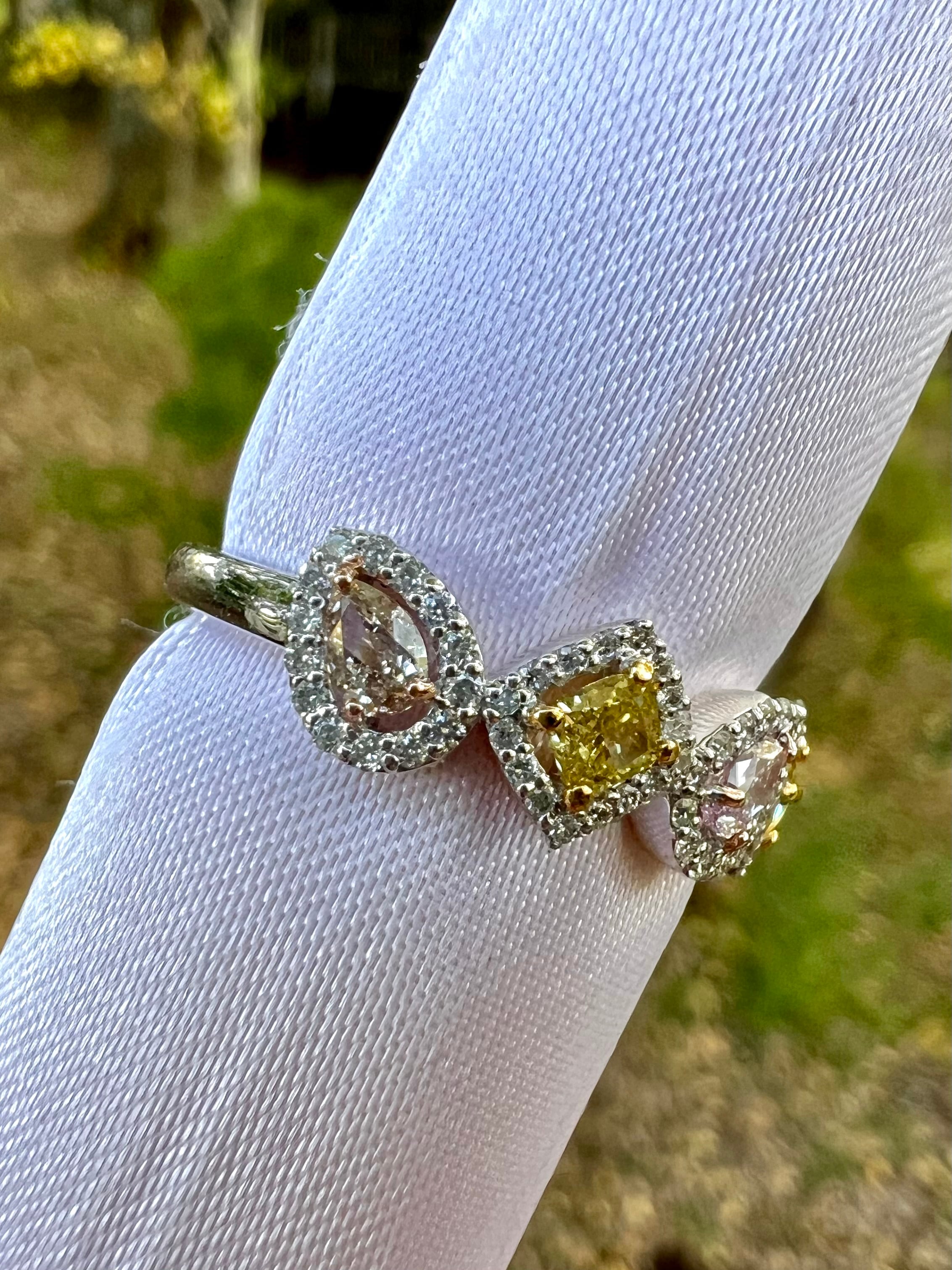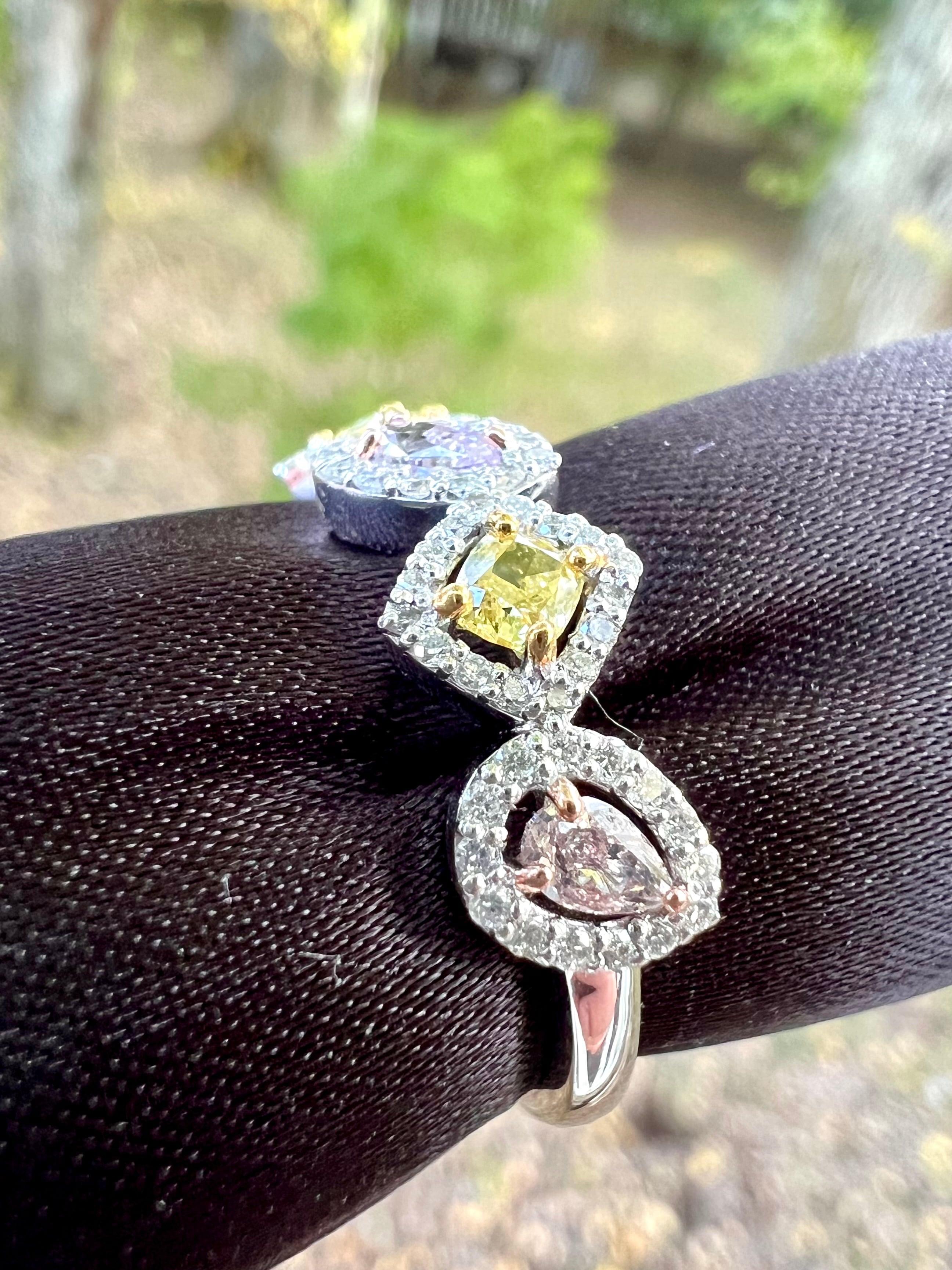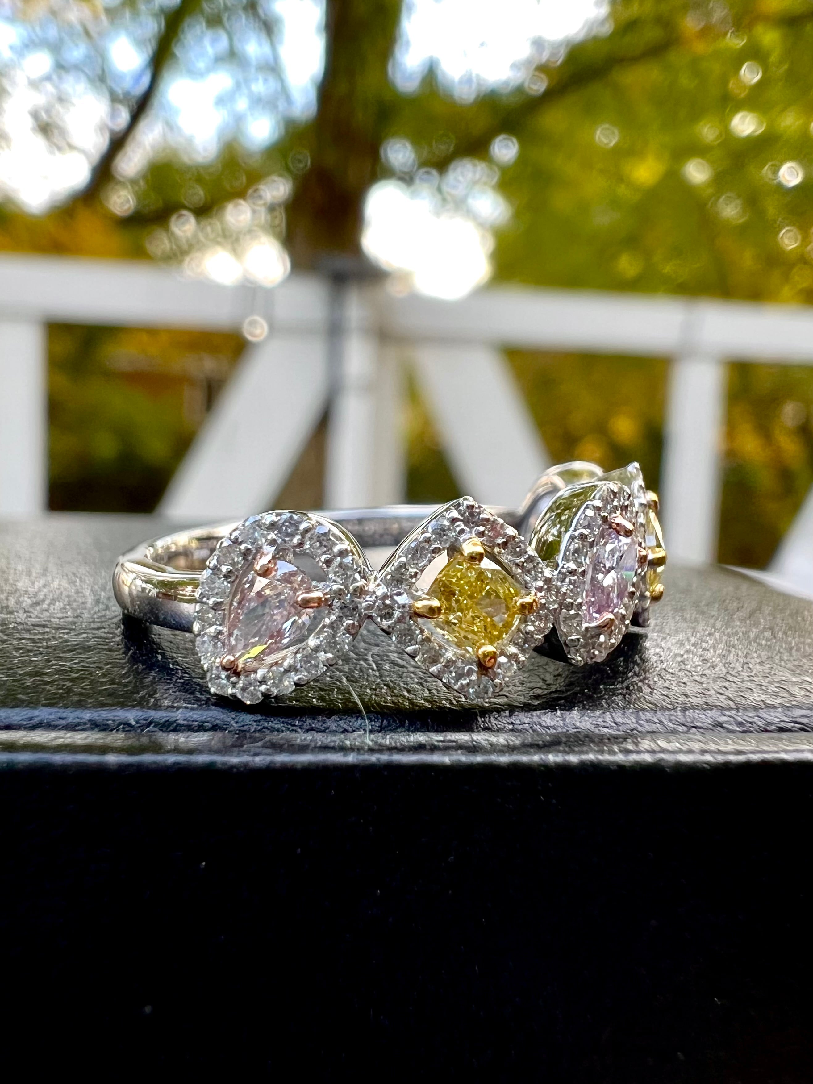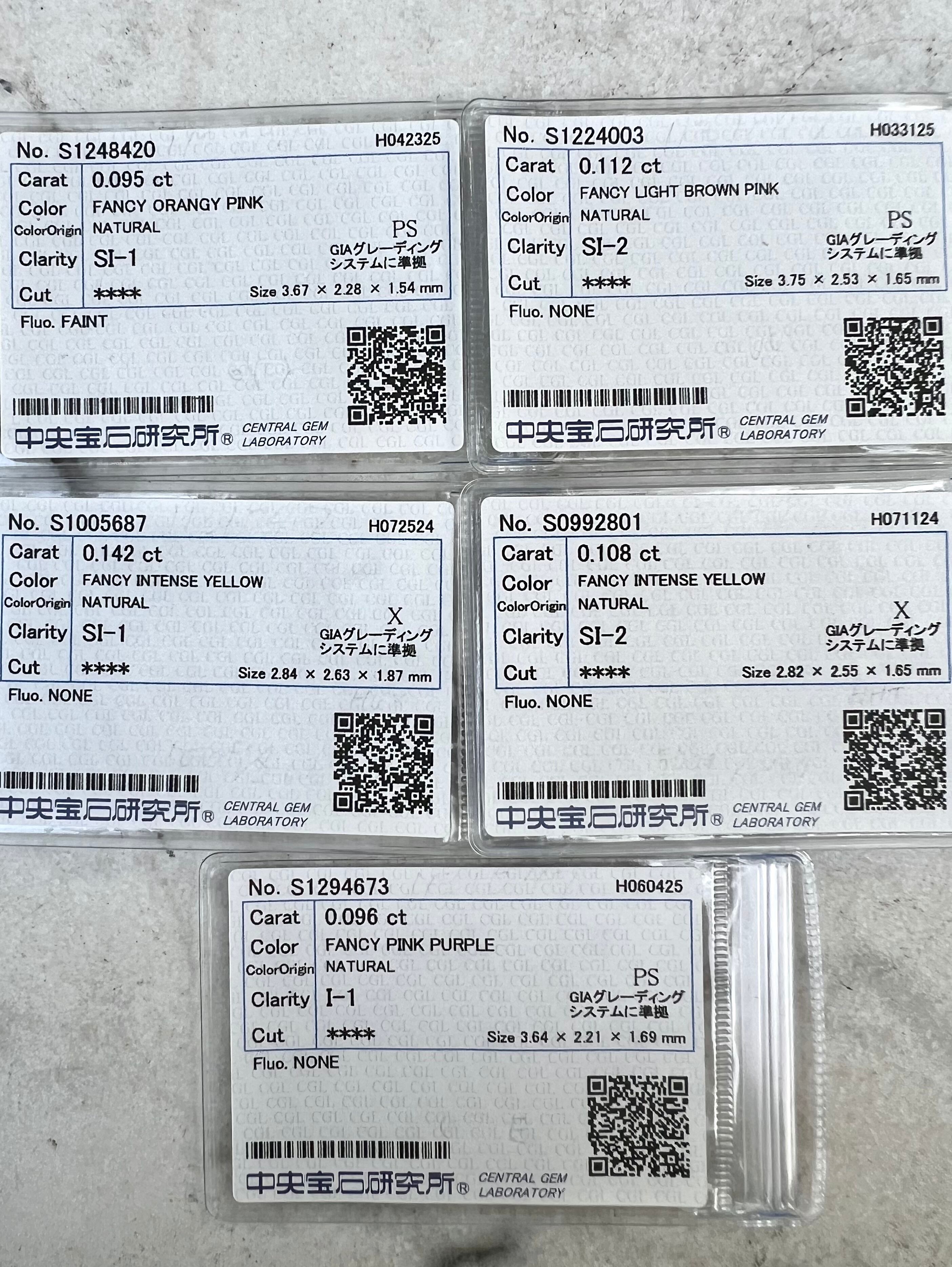 天然ファンシーカラーダイヤモンドリング ピンク&イエローダイヤ CGLソーティングメモ5枚付属