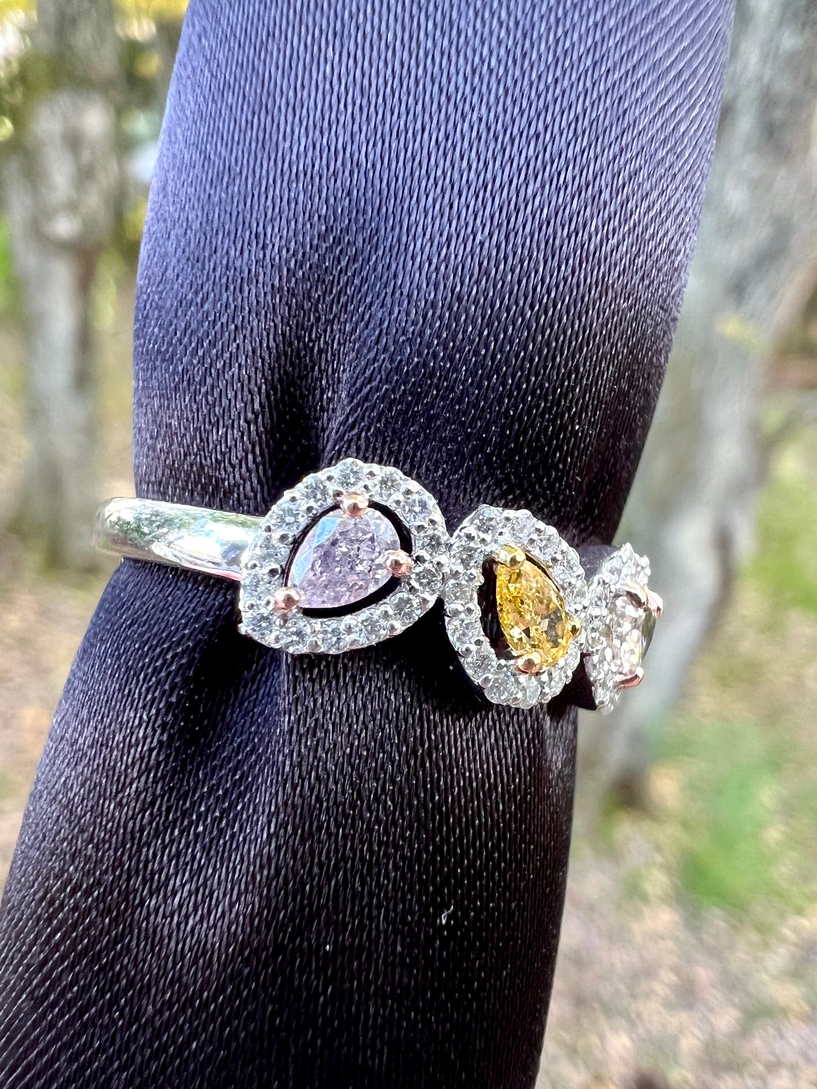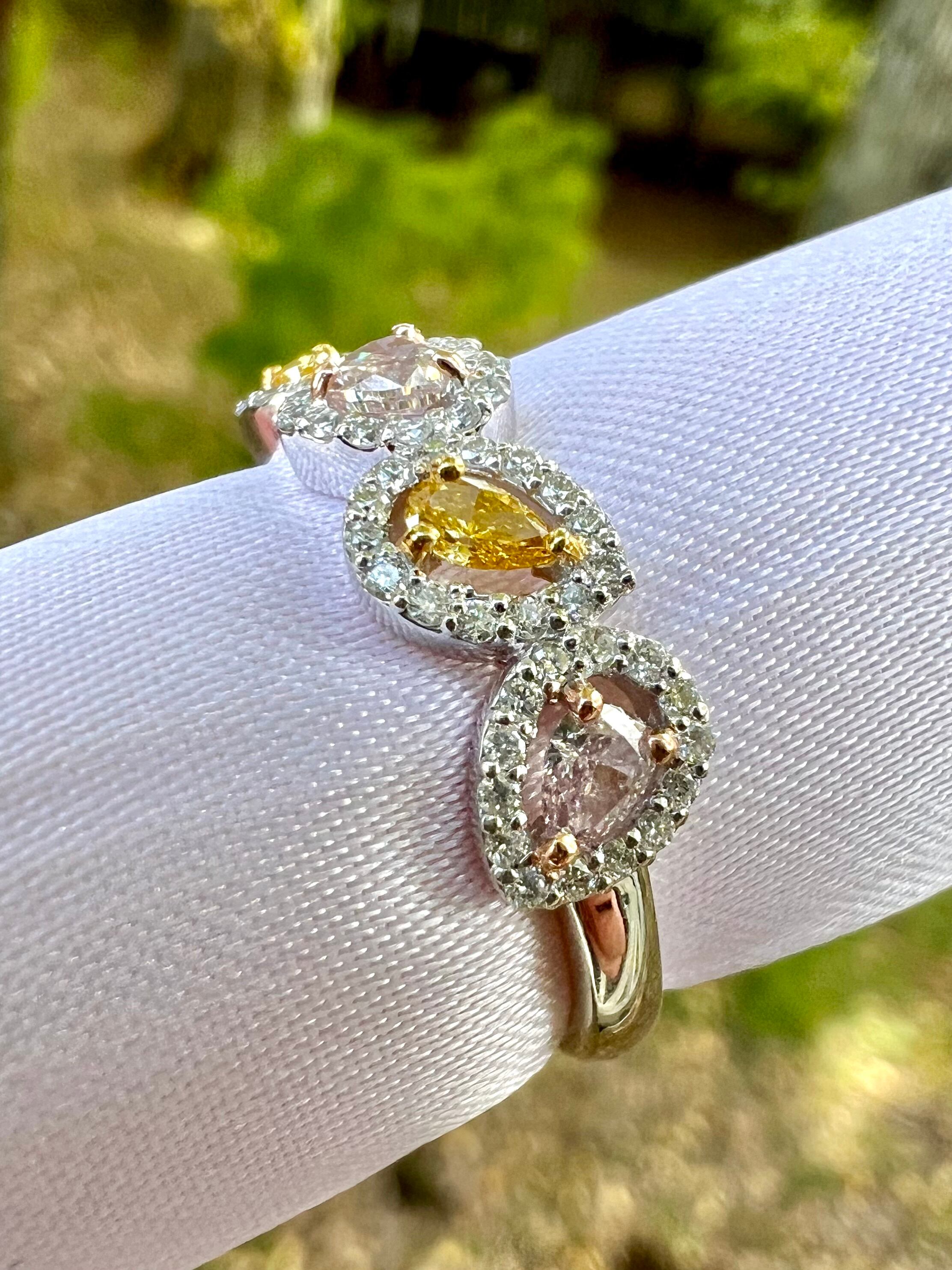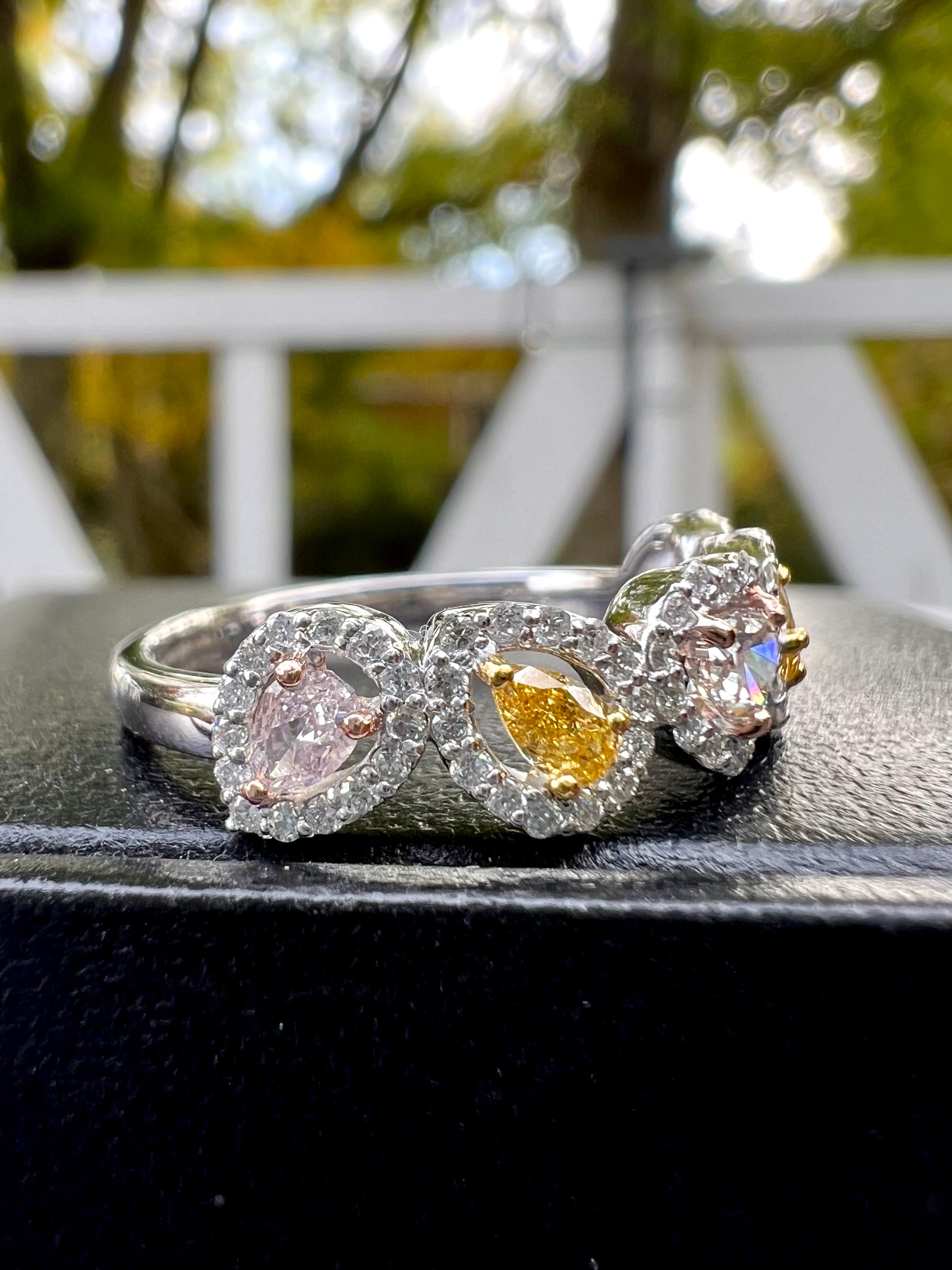 天然ファンシーカラーダイヤモンドリング ピンク&イエローダイヤ CGLソーティングメモ5枚付属