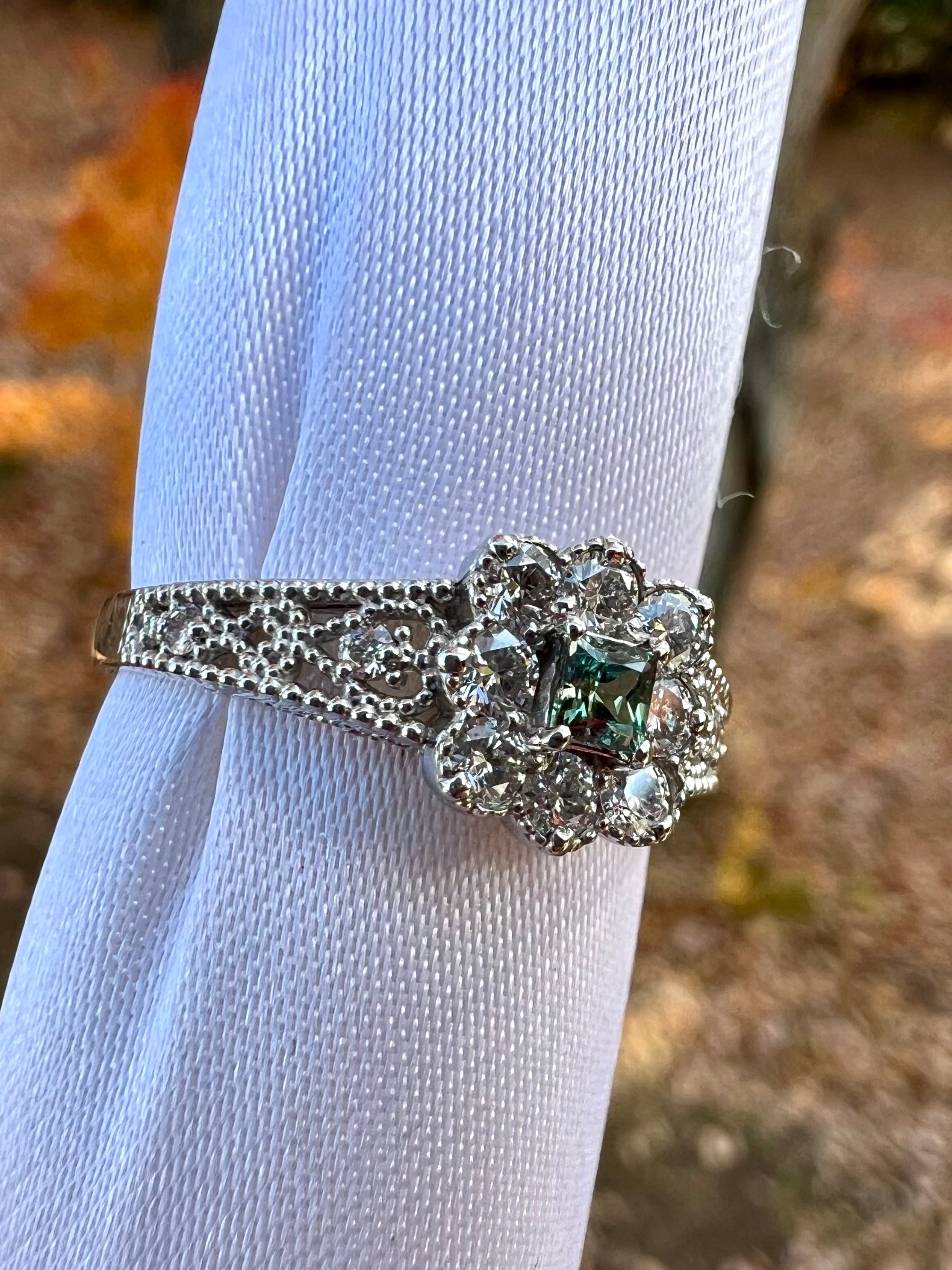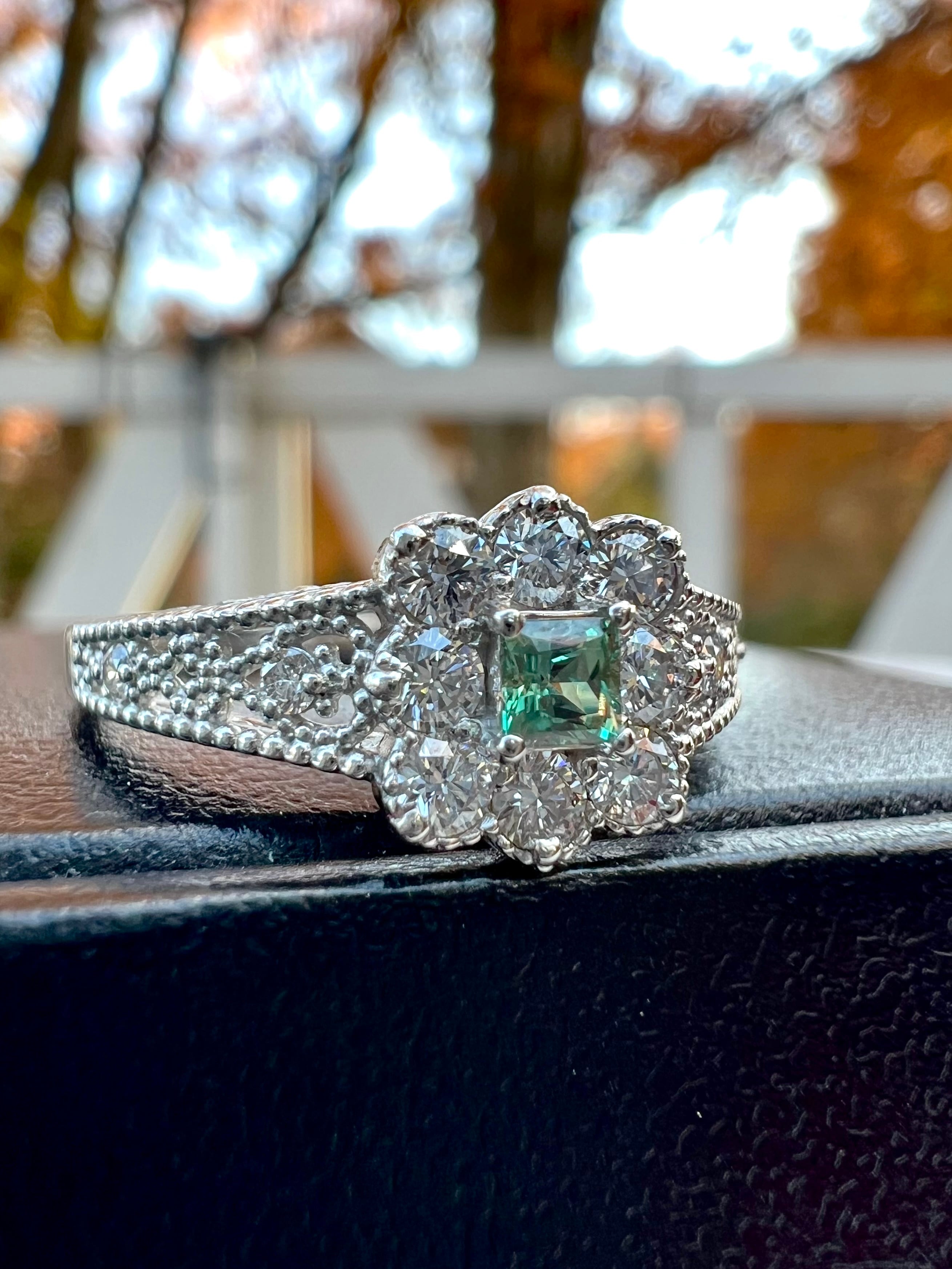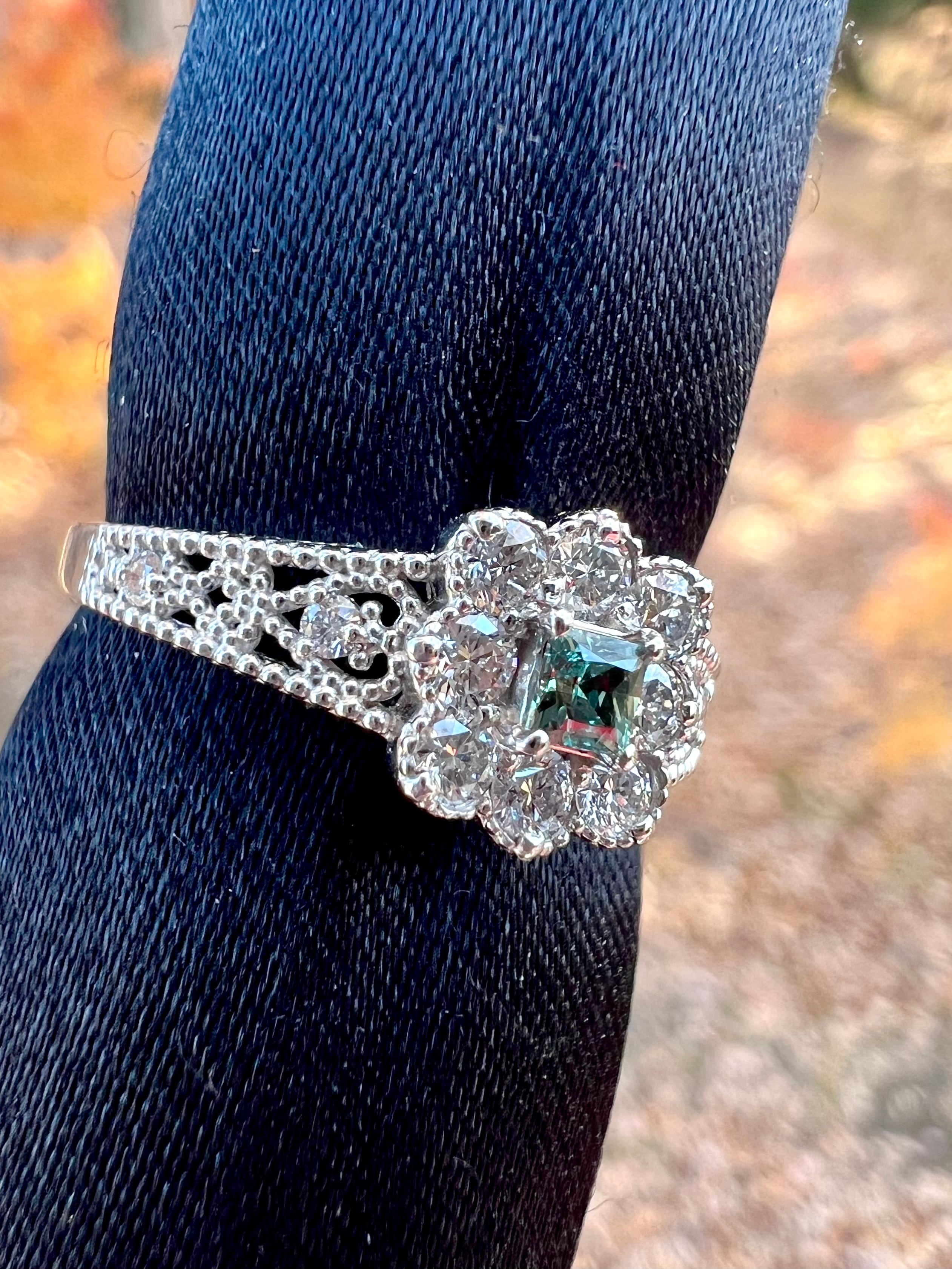 Pt950ブラジル産プリンセスcutアレキサンドライトダイヤモンドリング