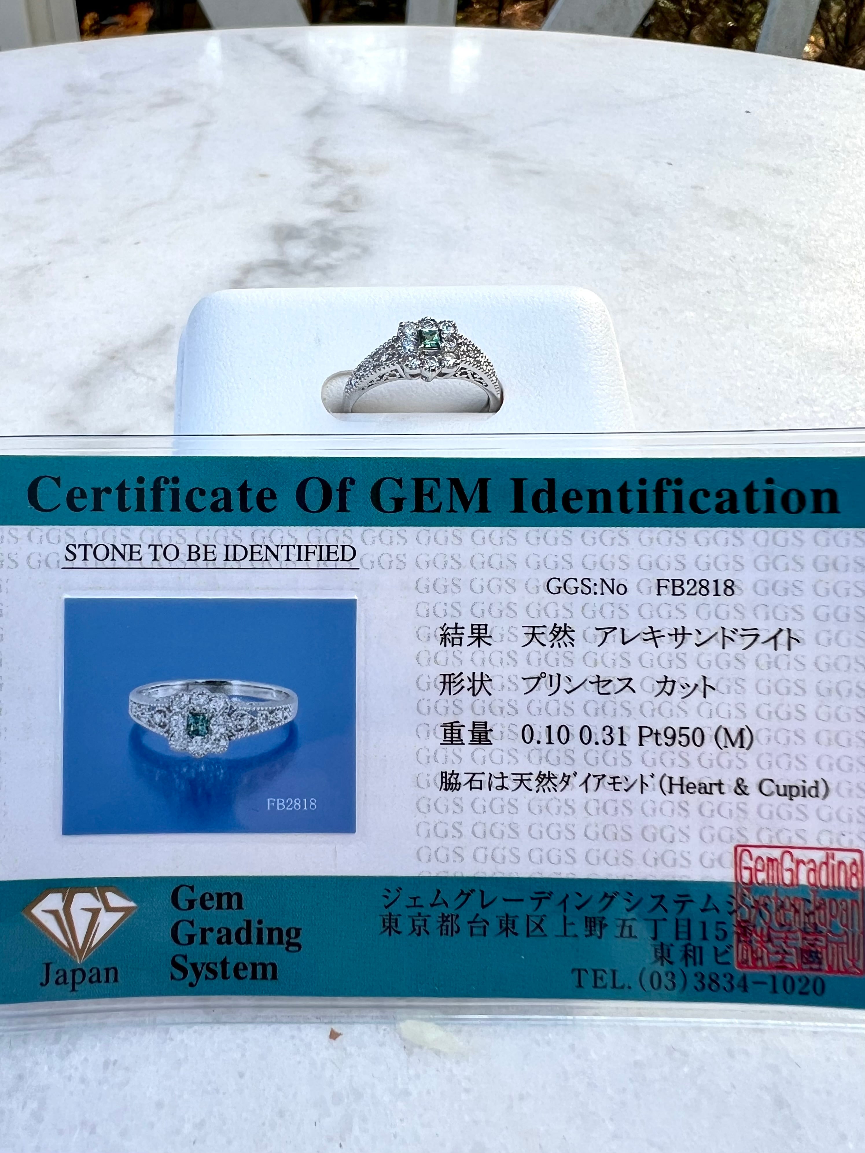 Pt950ブラジル産プリンセスcutアレキサンドライトダイヤモンドリング《Diamond all H&C仕様》GGS鑑別カード付属