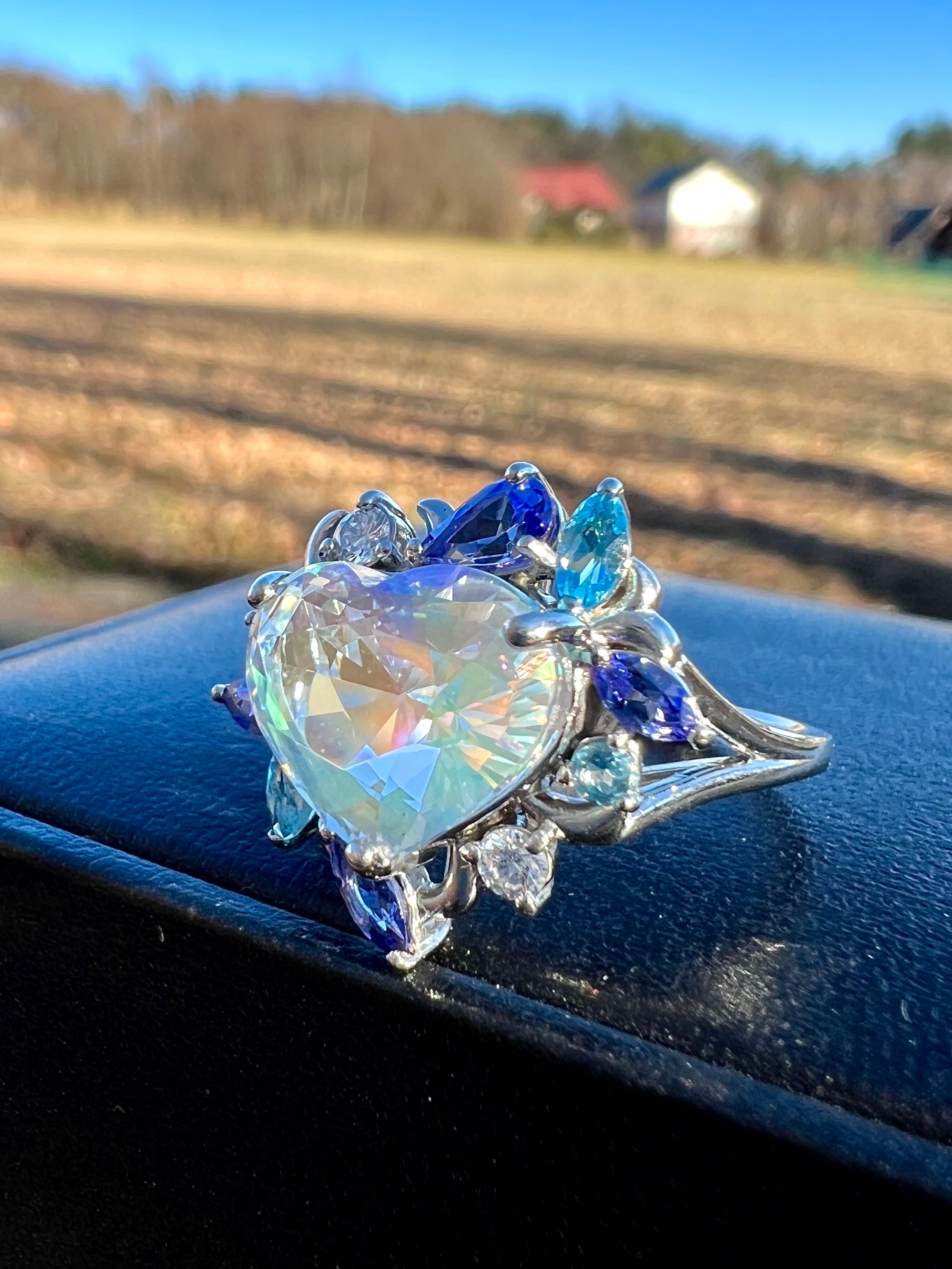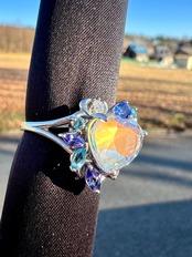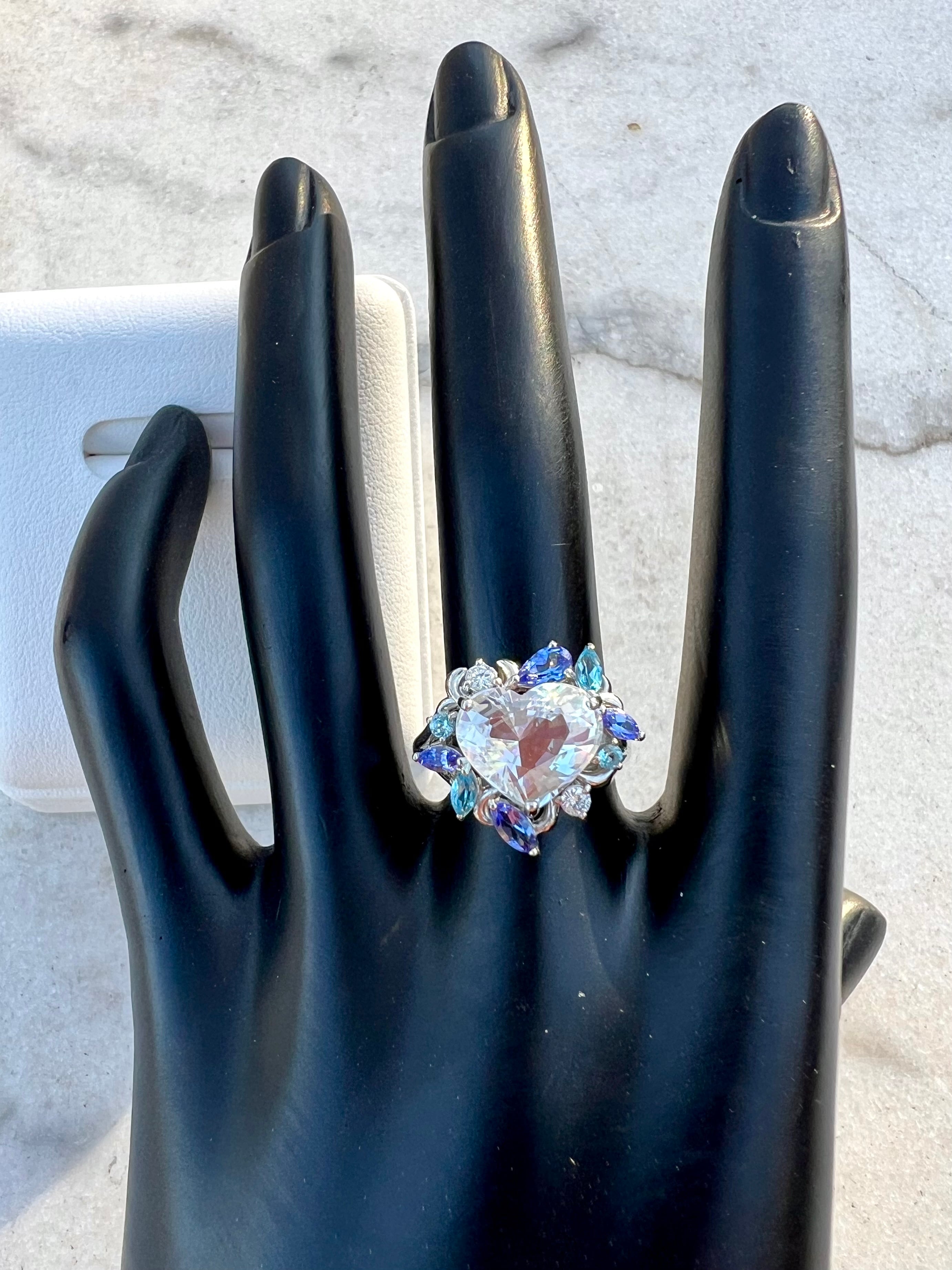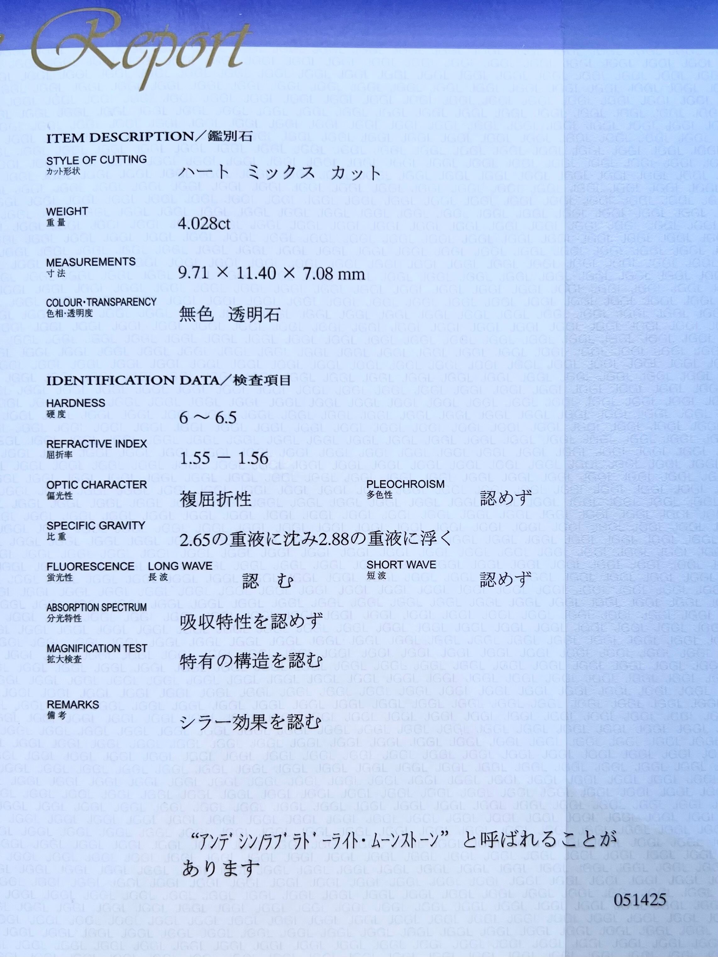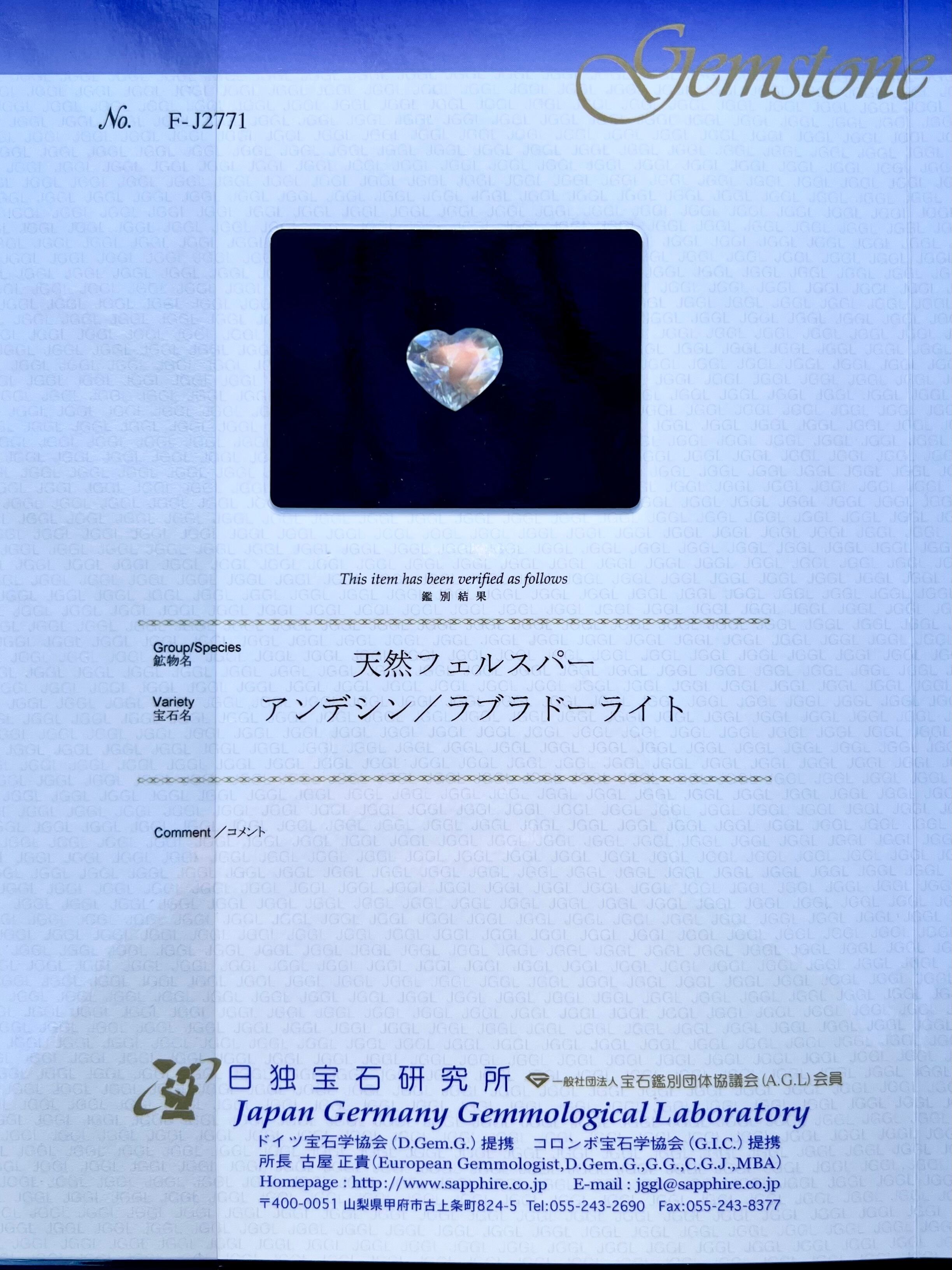 超可愛いぃ!ハートシェイプ Pt950 ムーンストーンリング アンデシンラブラドライト《1点もの!》JGGL鑑別書付属