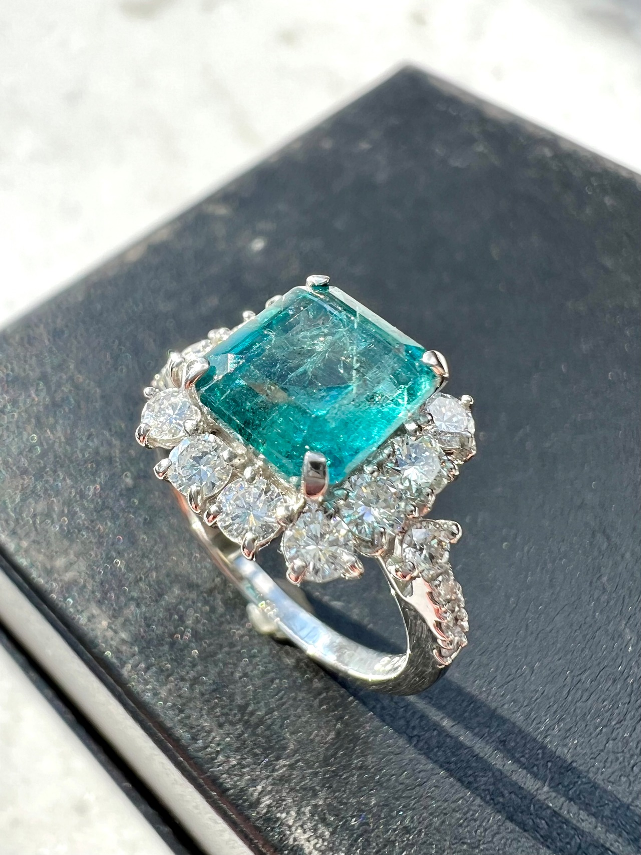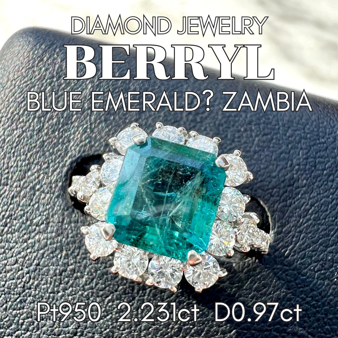 青いエメラルド⁉︎ Zambia産 ブルーグリーンベリル Pt950ダイヤモンドリング