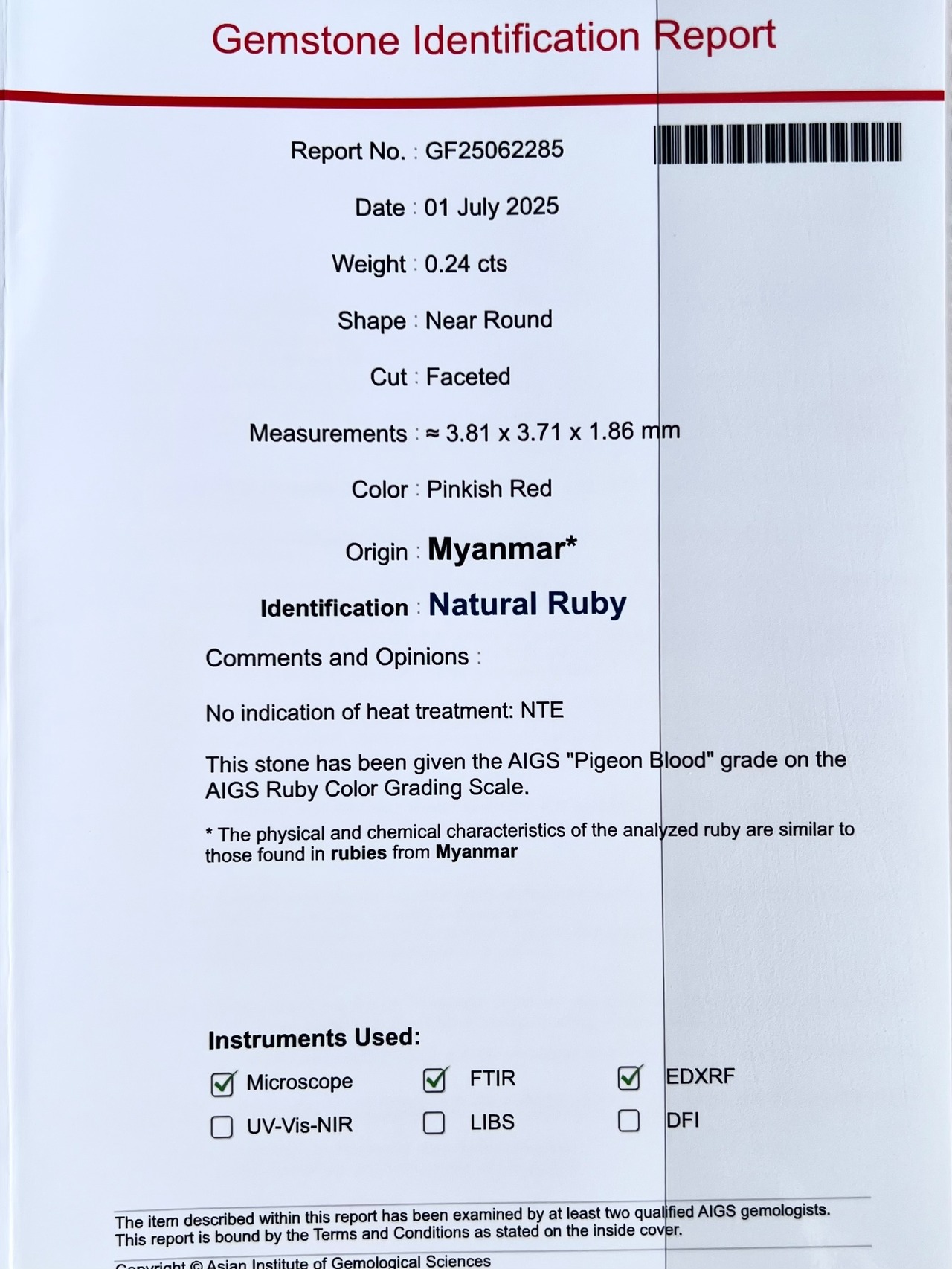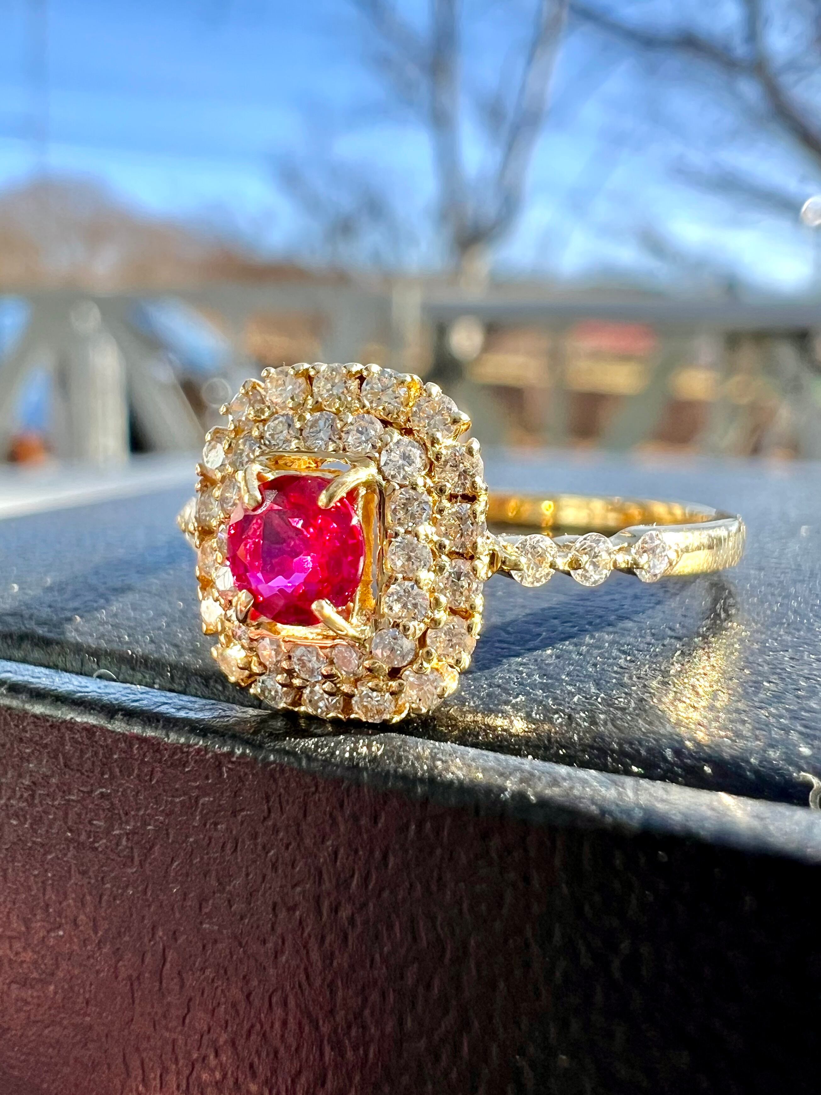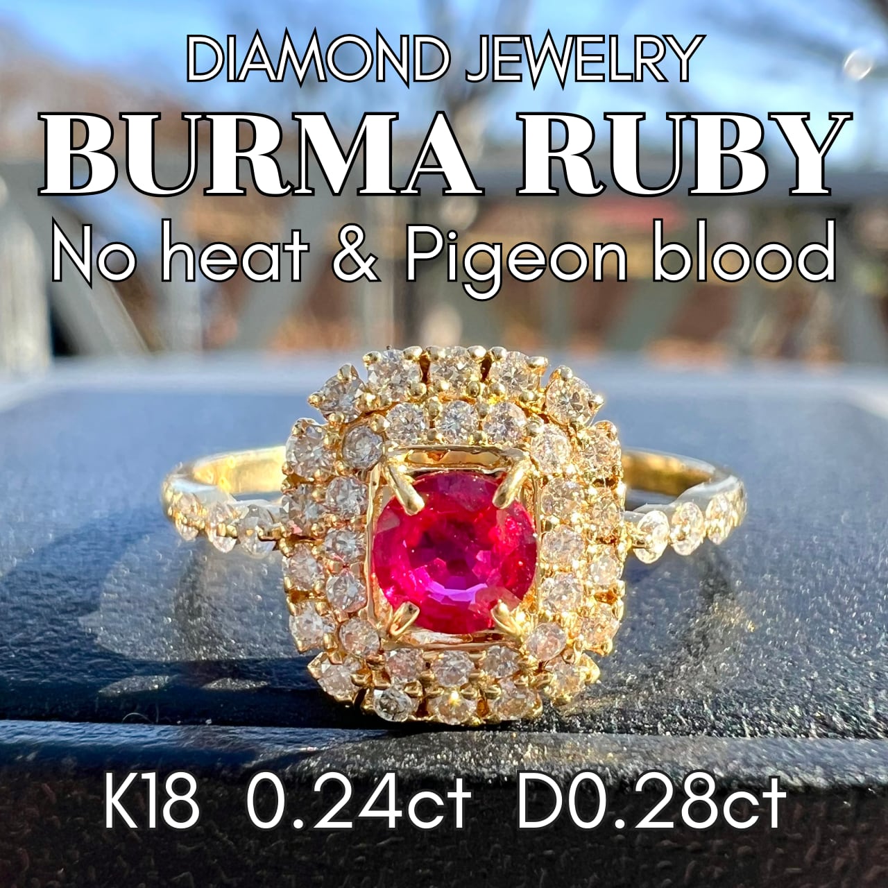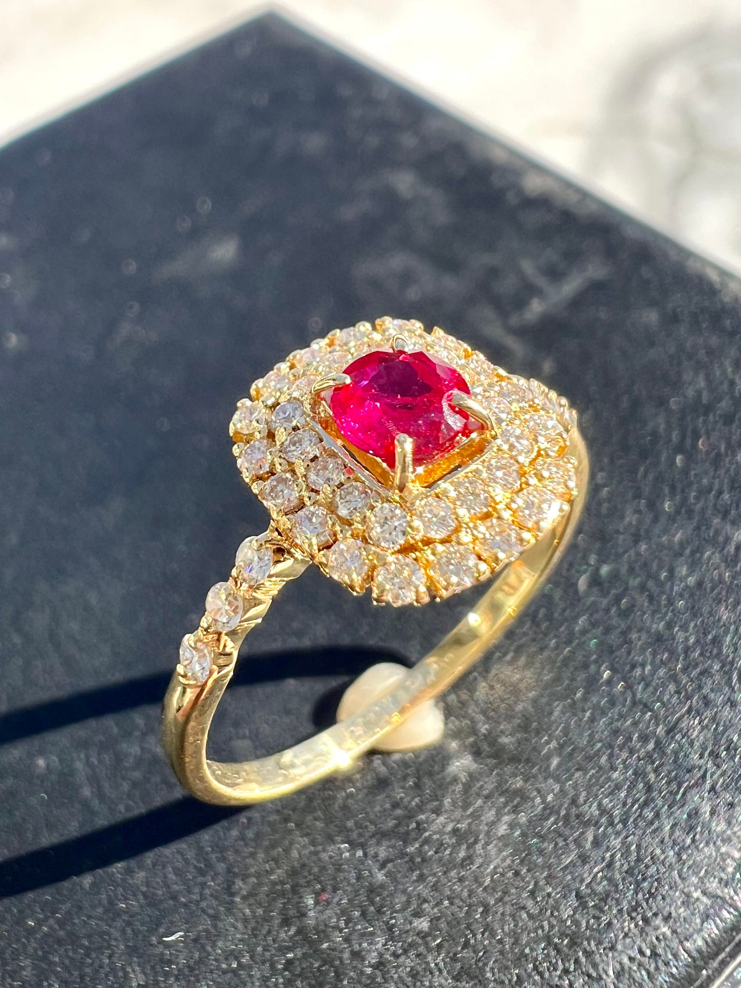 K18 Burma産 No heat & Pigeon ルビーダイヤモンドリング AIGS鑑別書付属