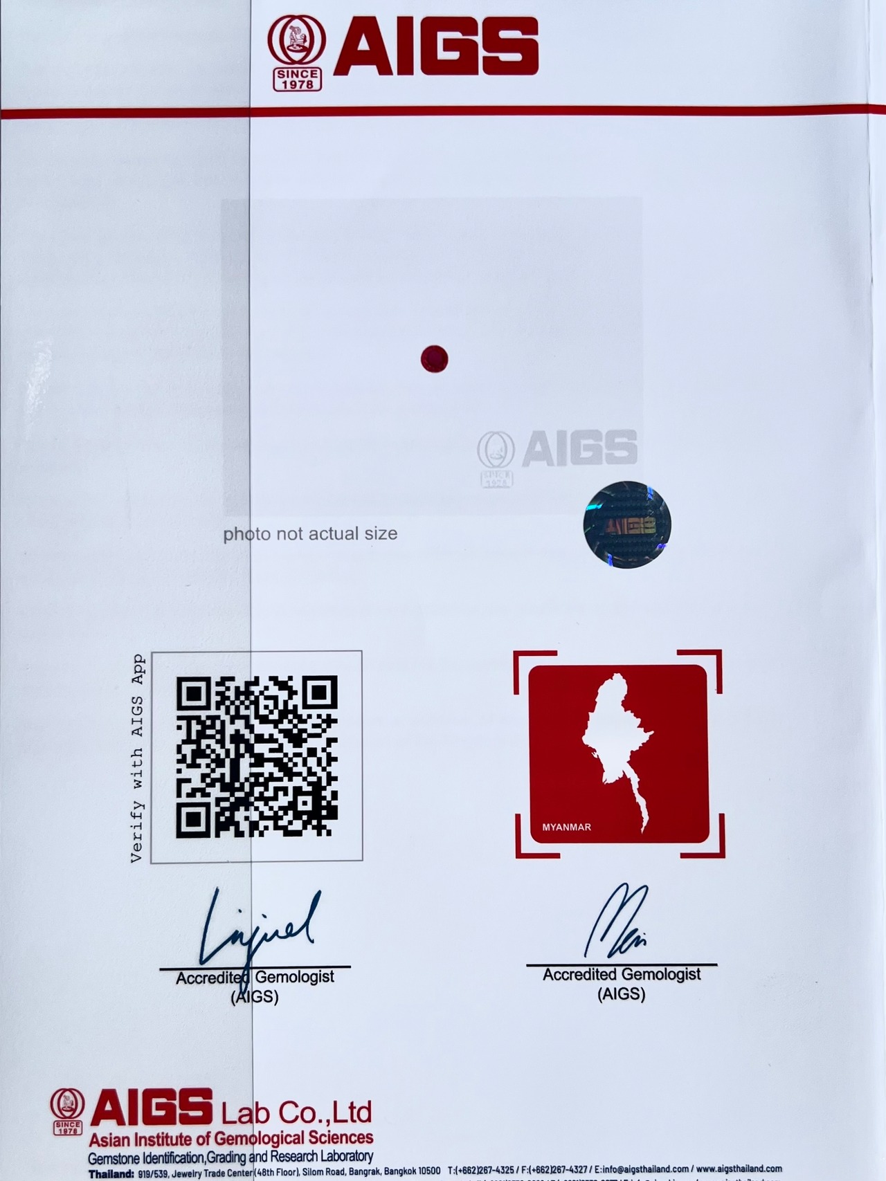付属品 AIGSリポート付属