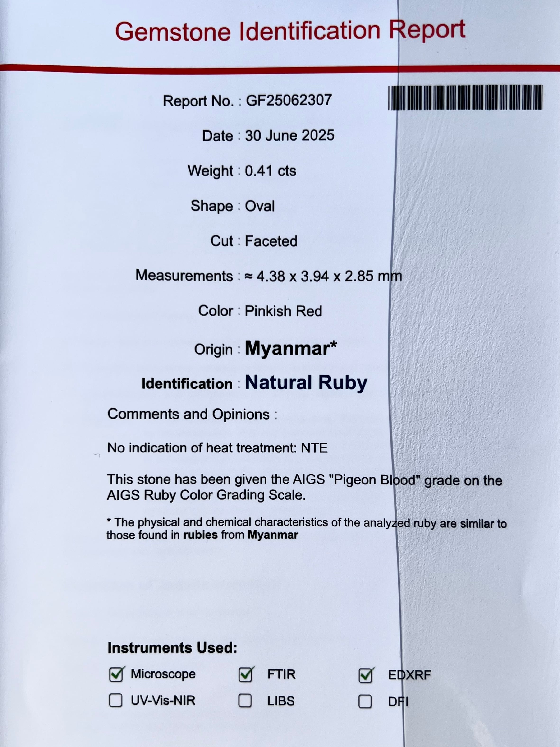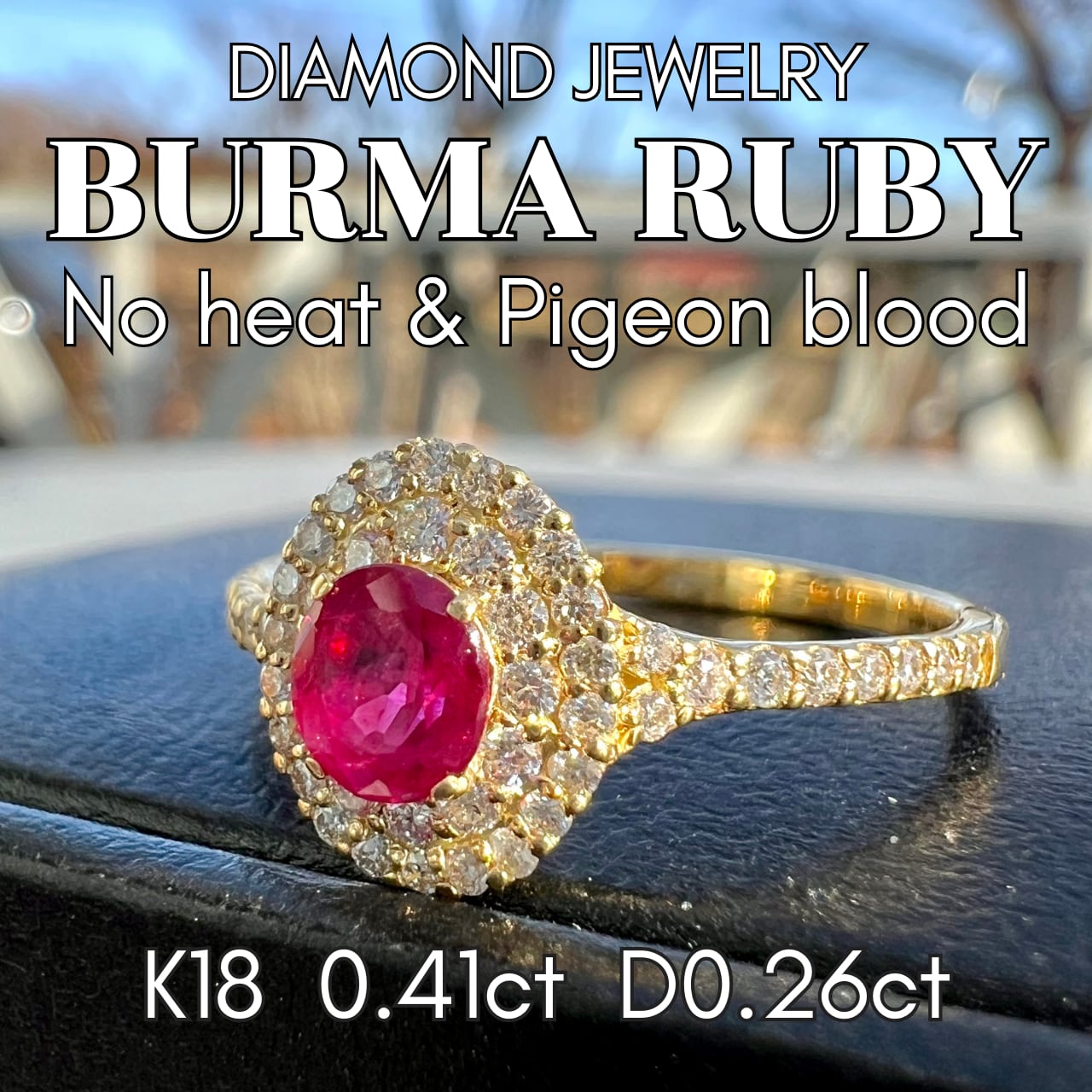 K18 Burma産 No heat & Pigeon ルビーダイヤモンドリング AIGS鑑別書付属