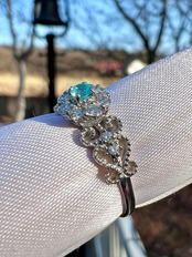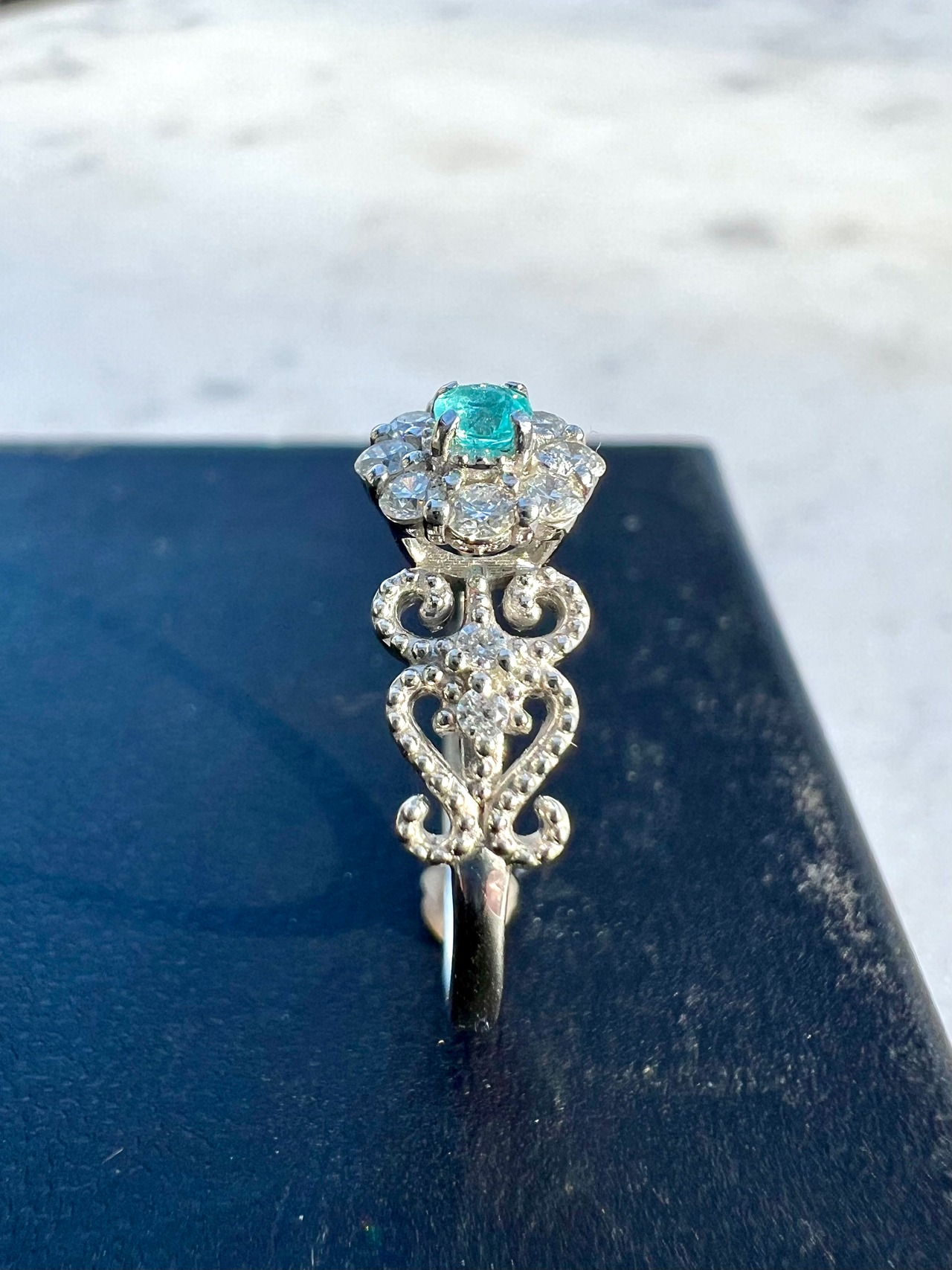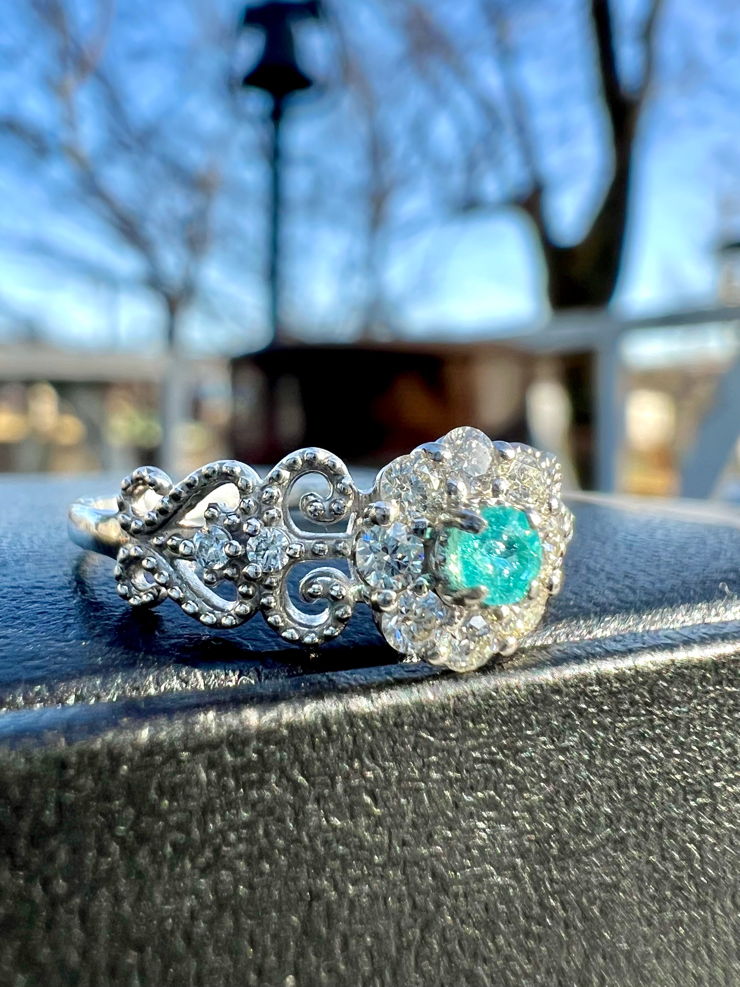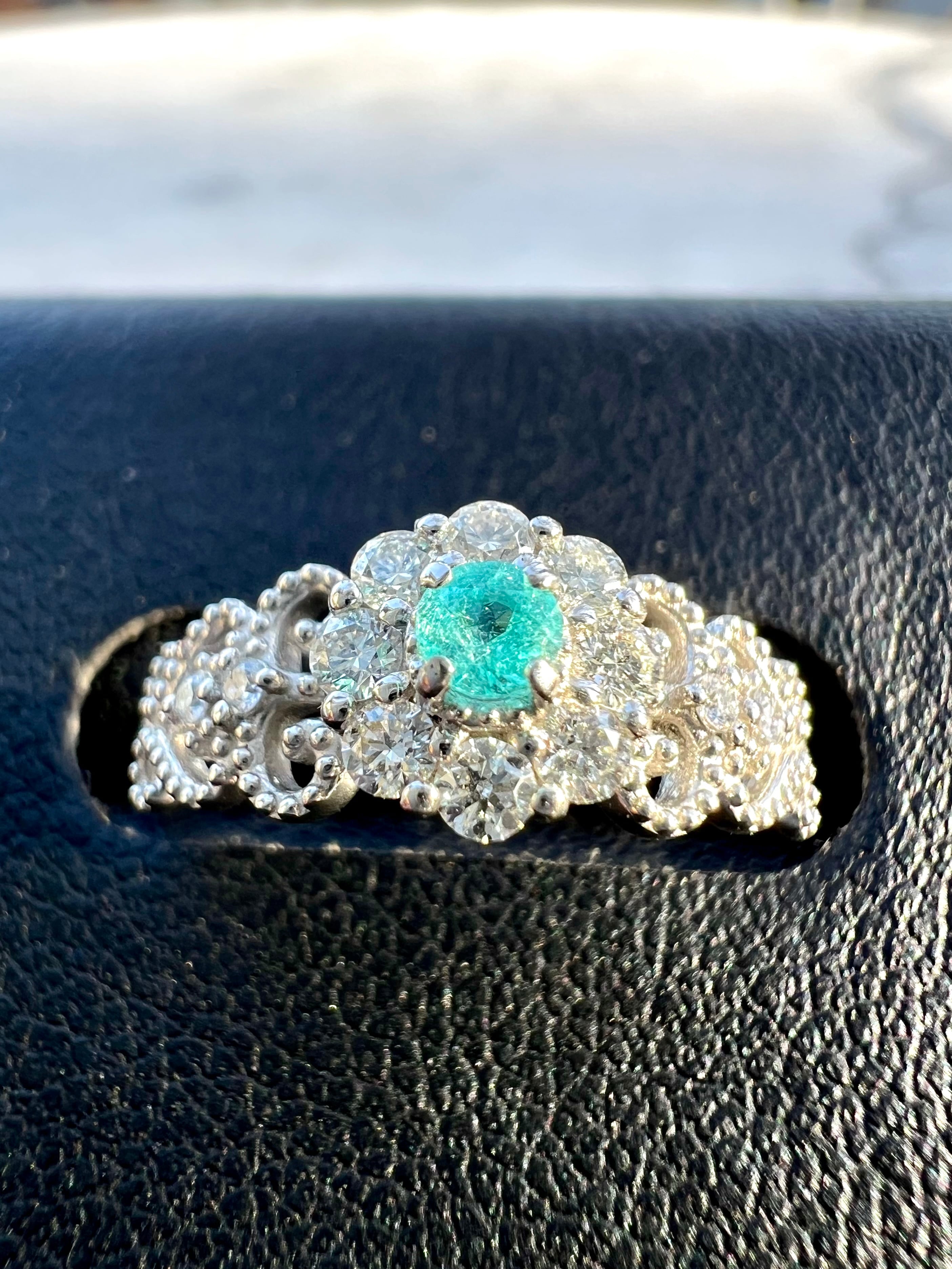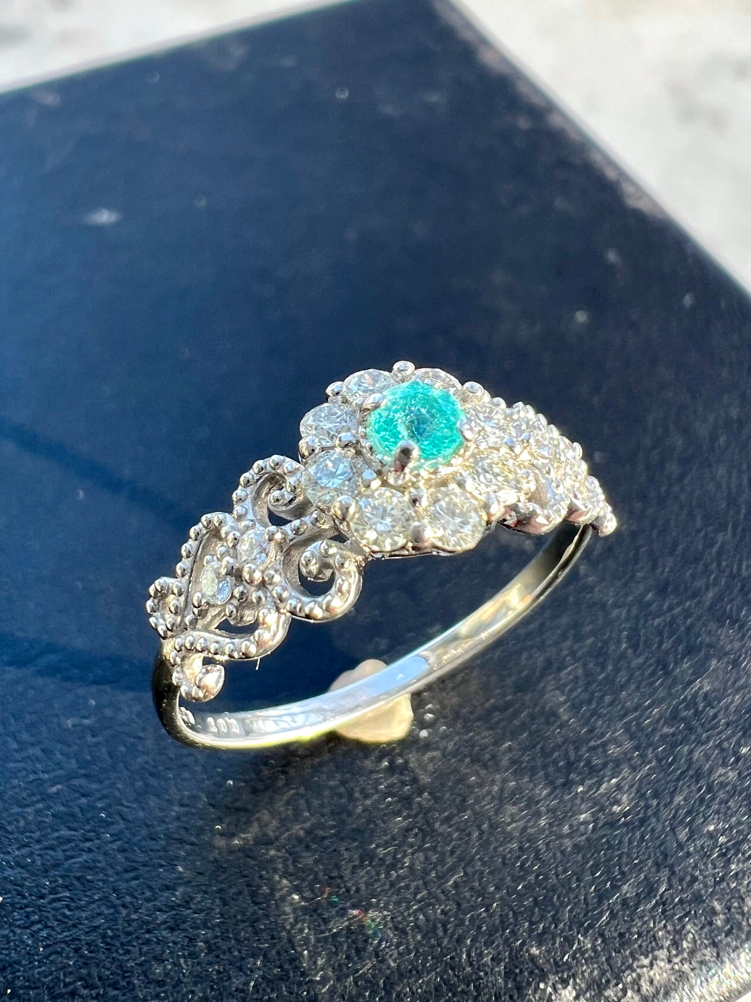 大きめのメレH&Cダイヤを取り巻いたパライバトルマリンが超絶可愛いリングですっ!