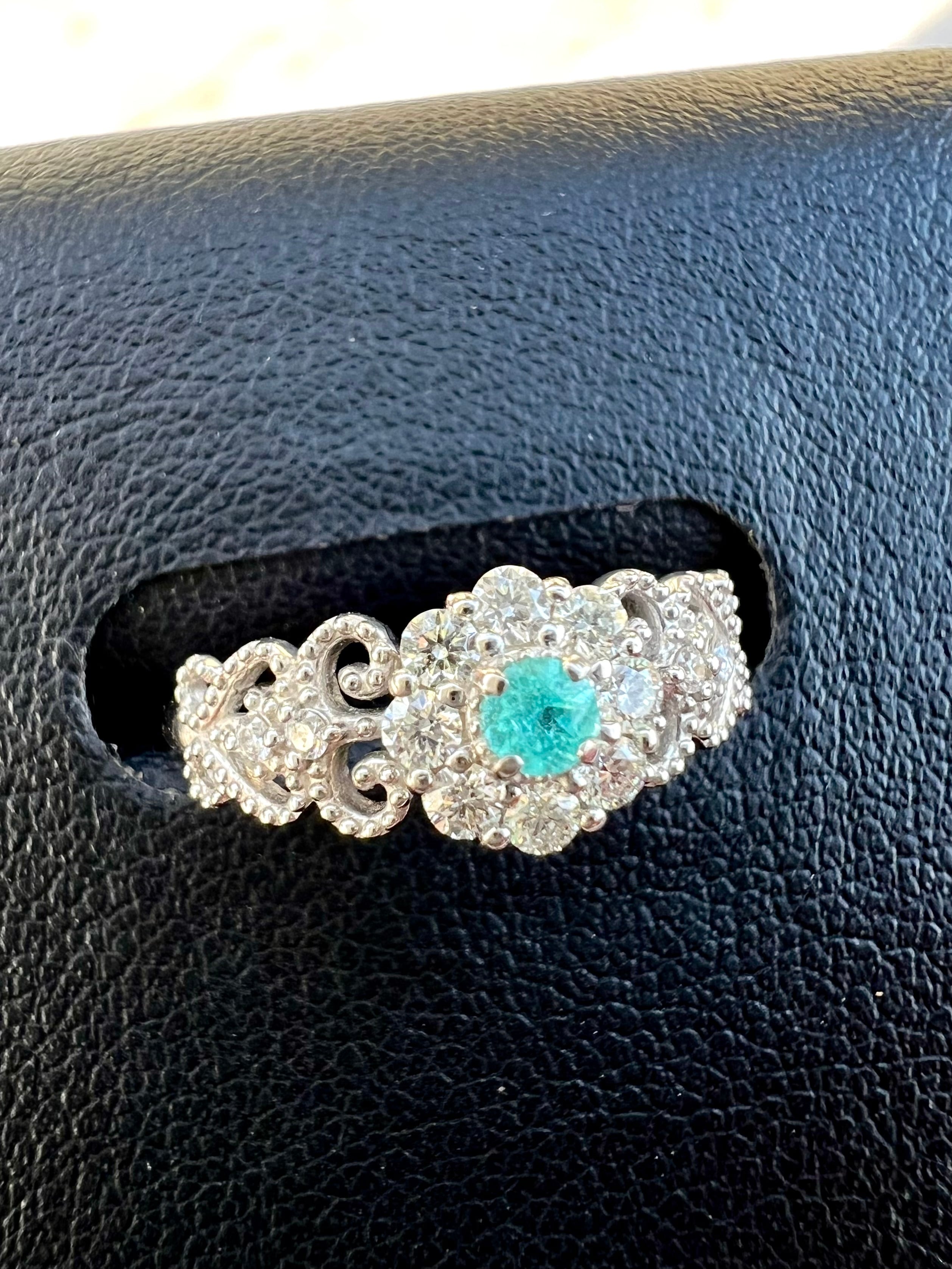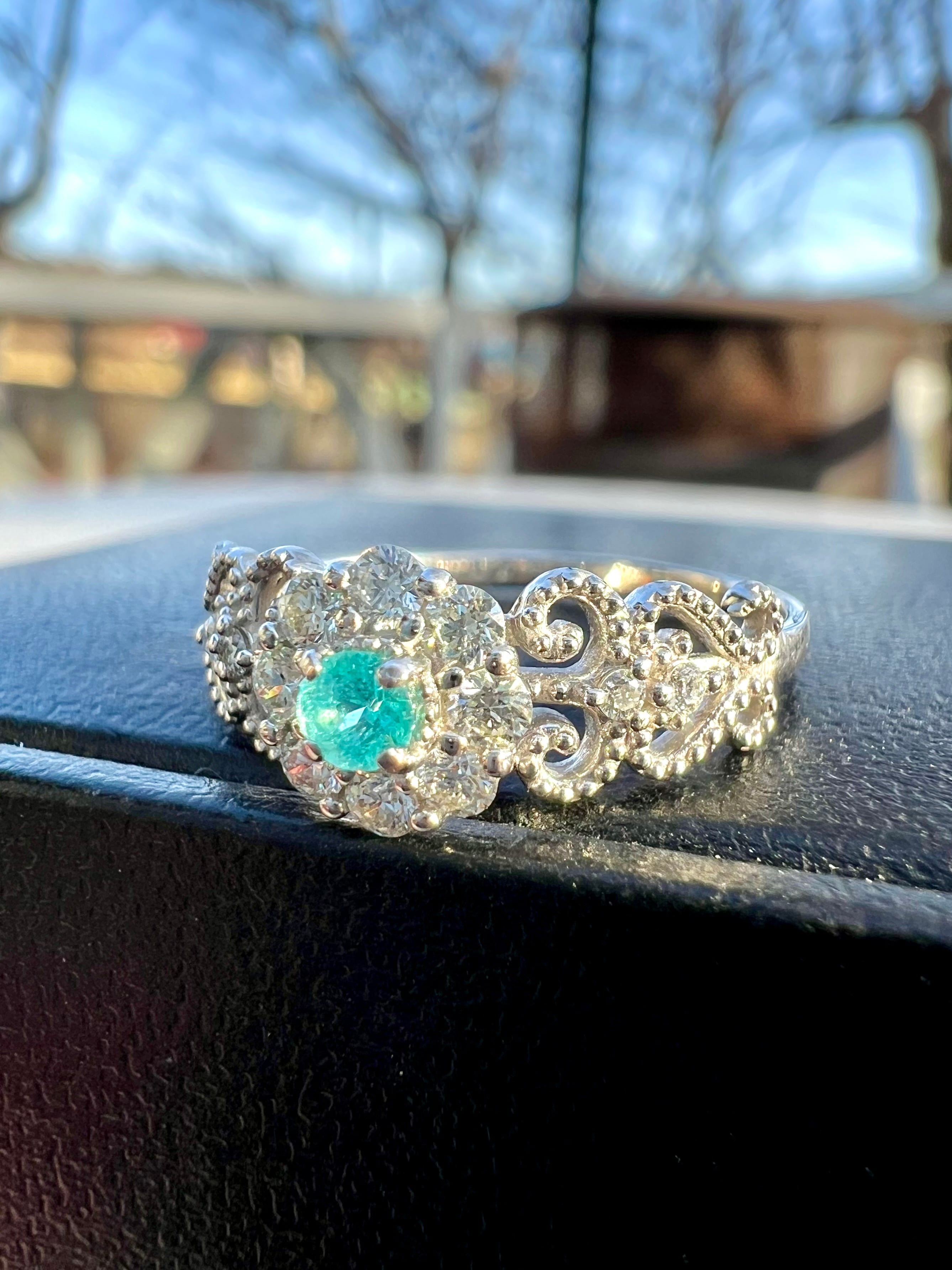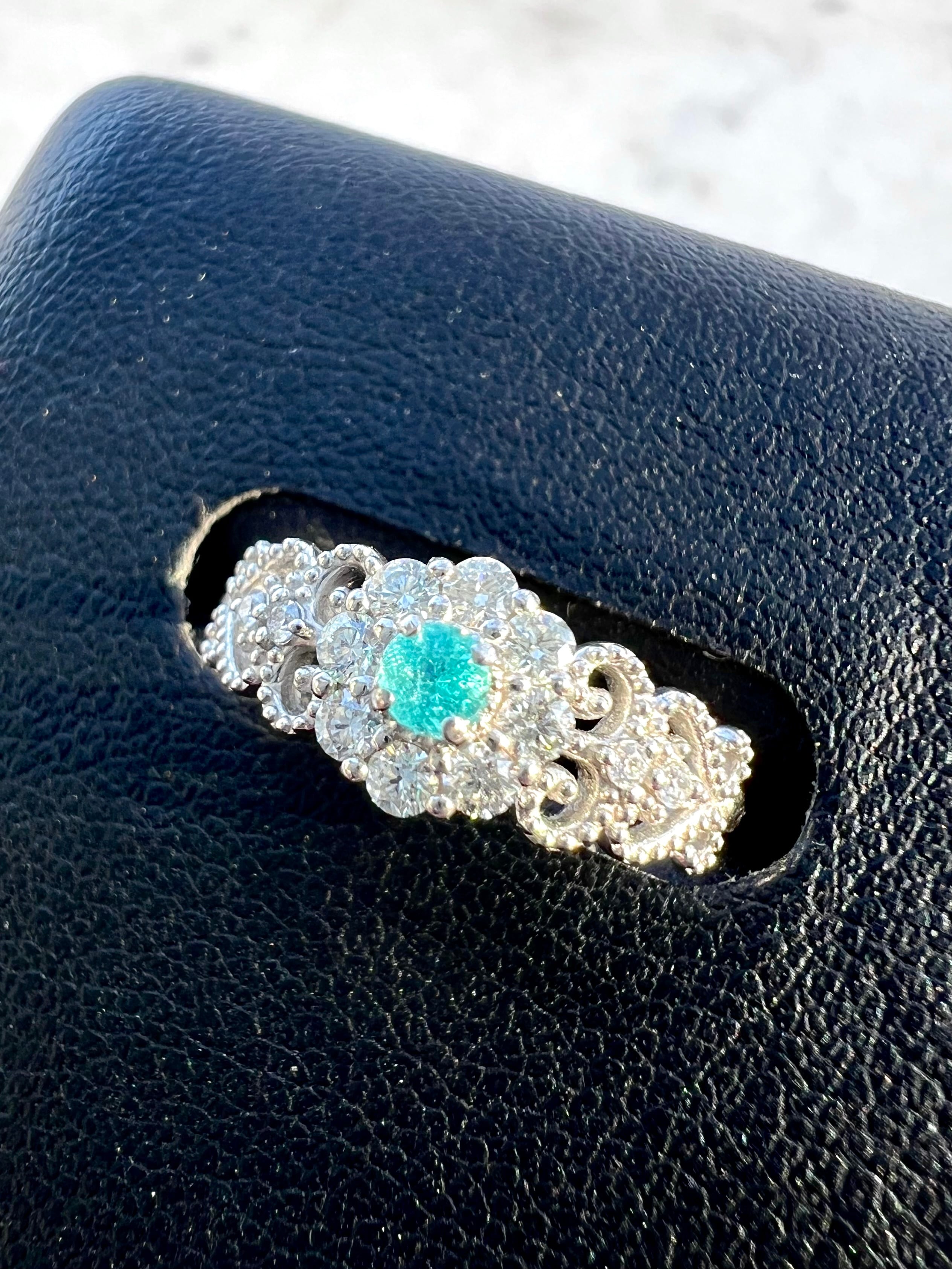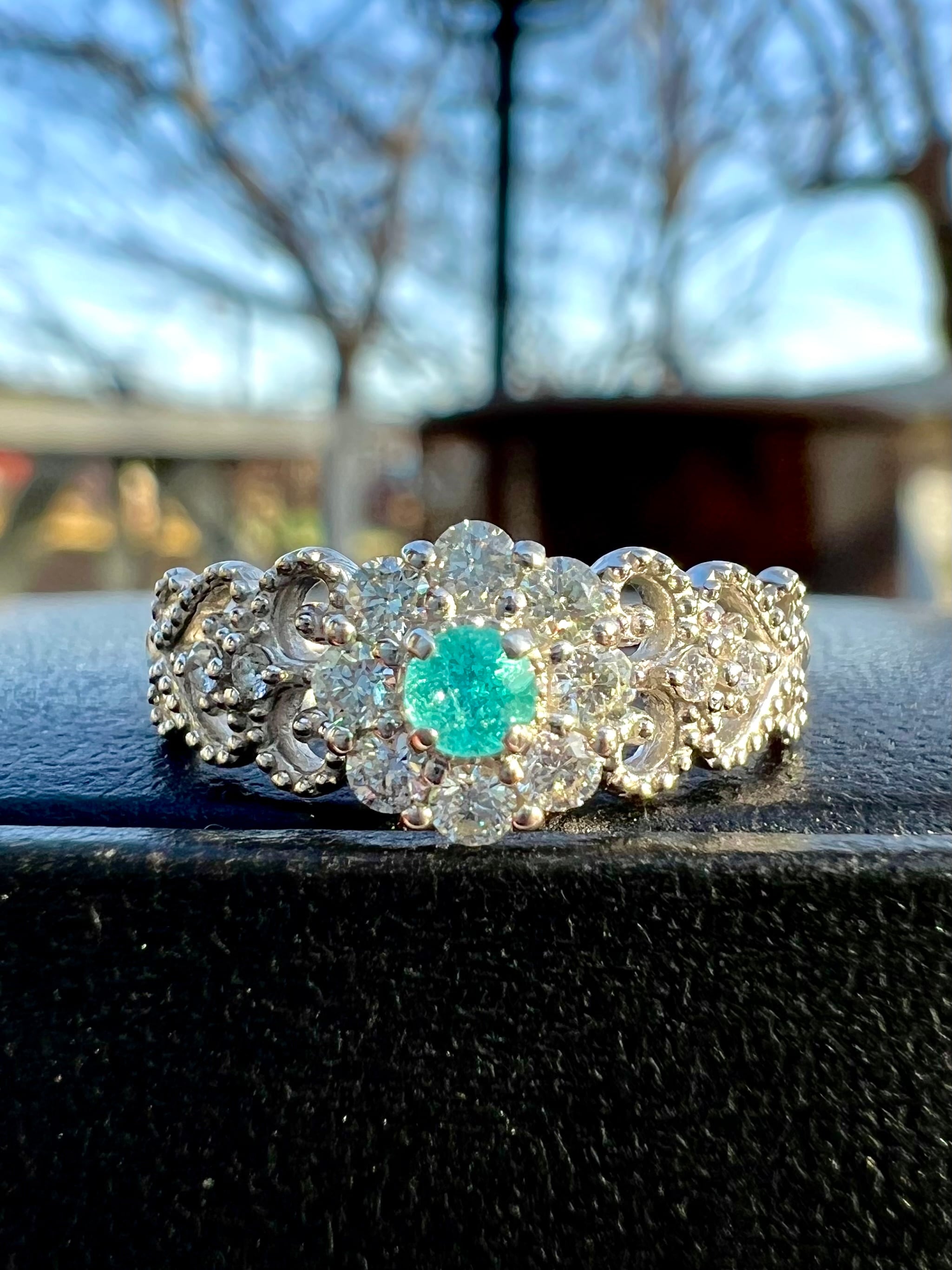 大きめのメレH&Cダイヤを取り巻いたパライバトルマリンが超絶可愛いリングですっ!