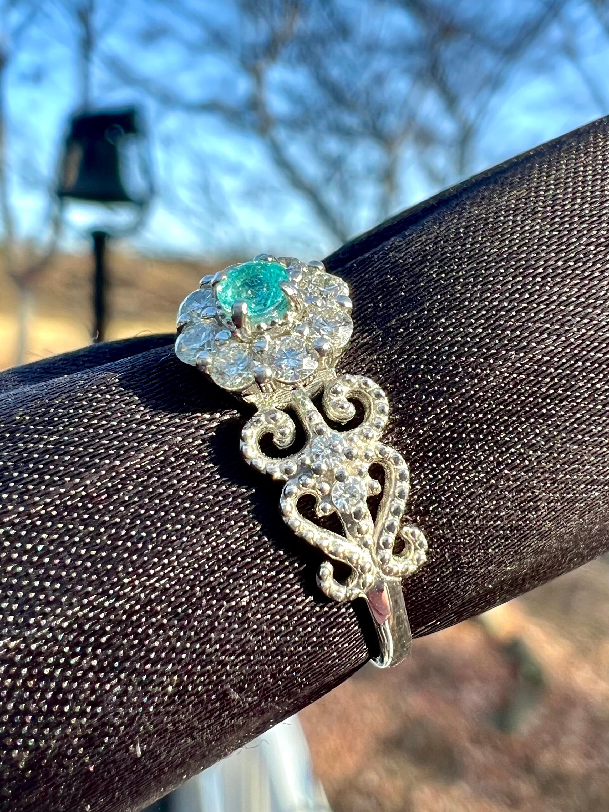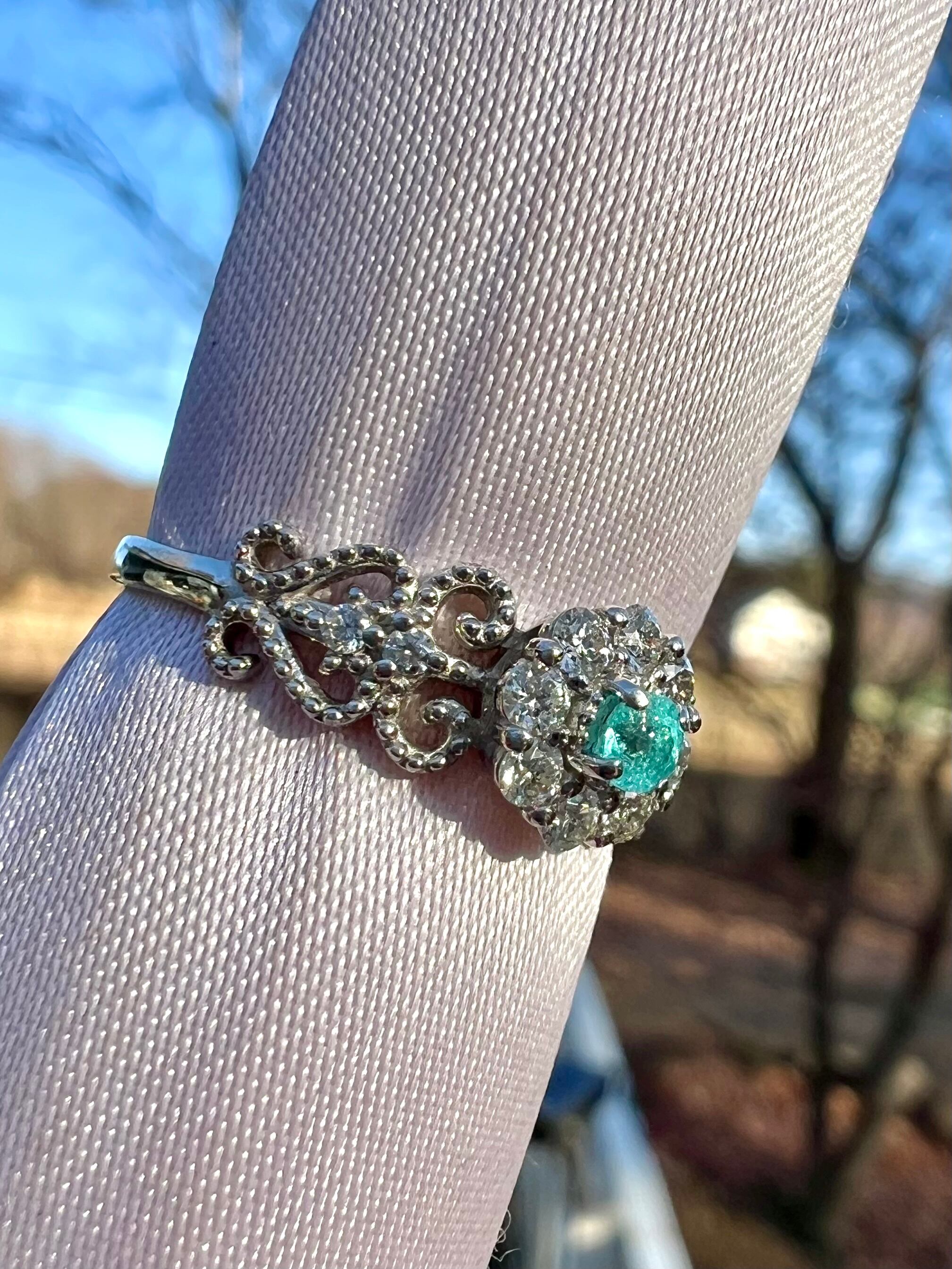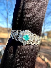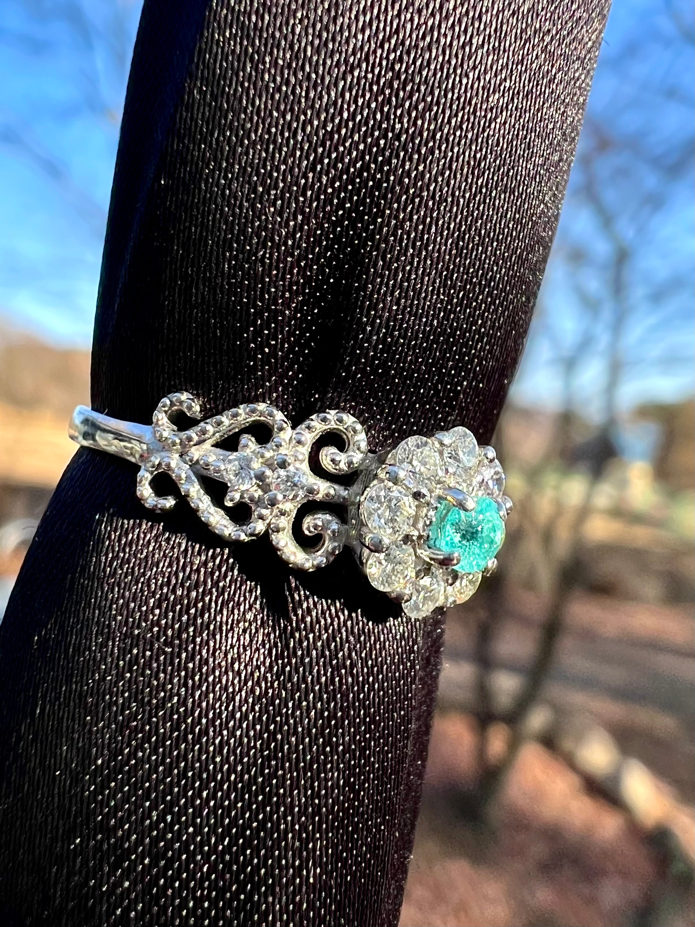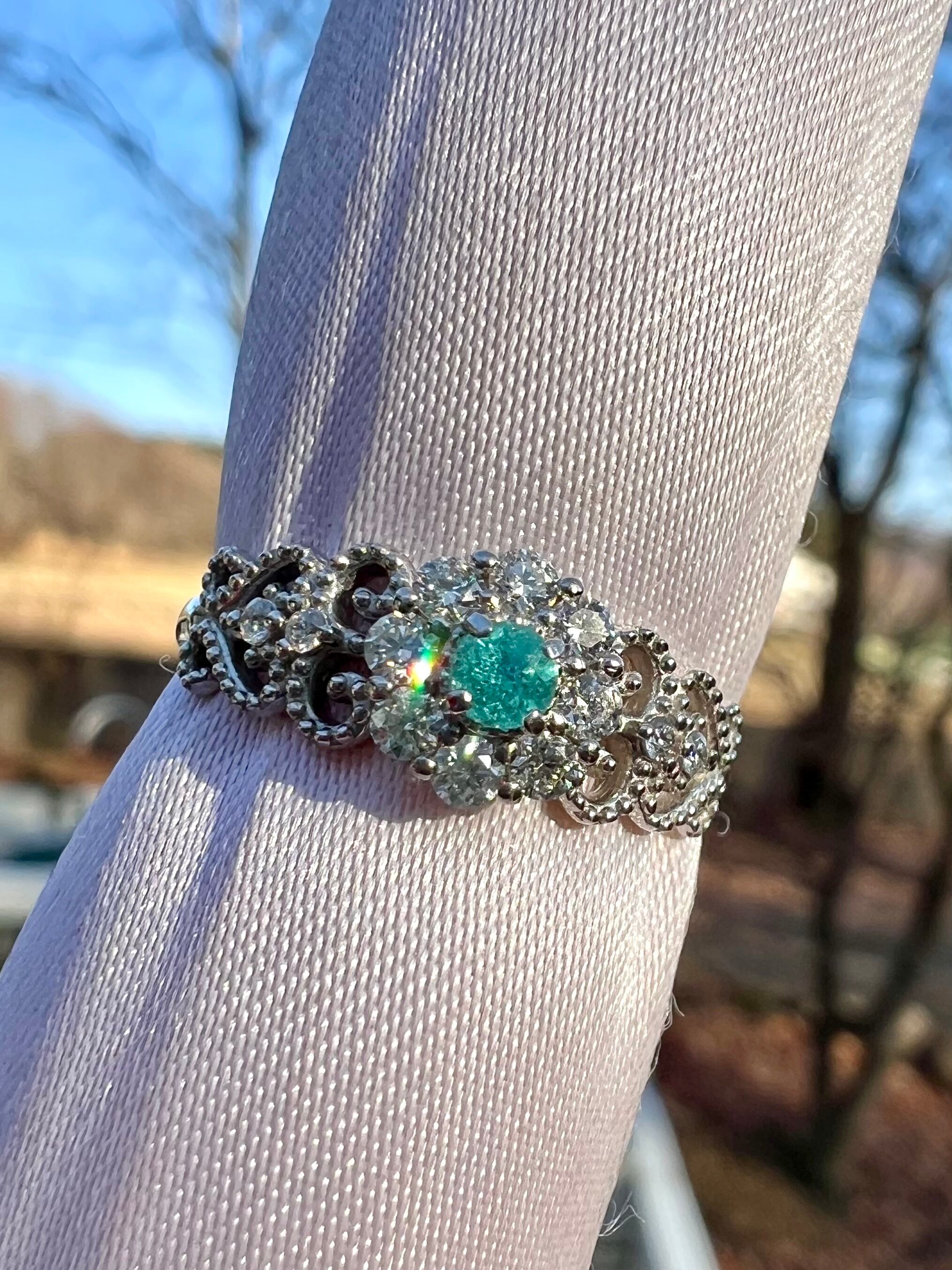 大きめのメレH&Cダイヤを取り巻いたパライバトルマリンが超絶可愛いリングですっ!