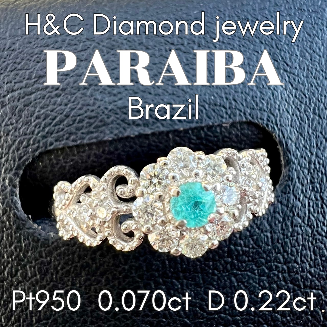 Pt950ブラジル産パライバトルマリンALL H&Cダイヤモンドリング