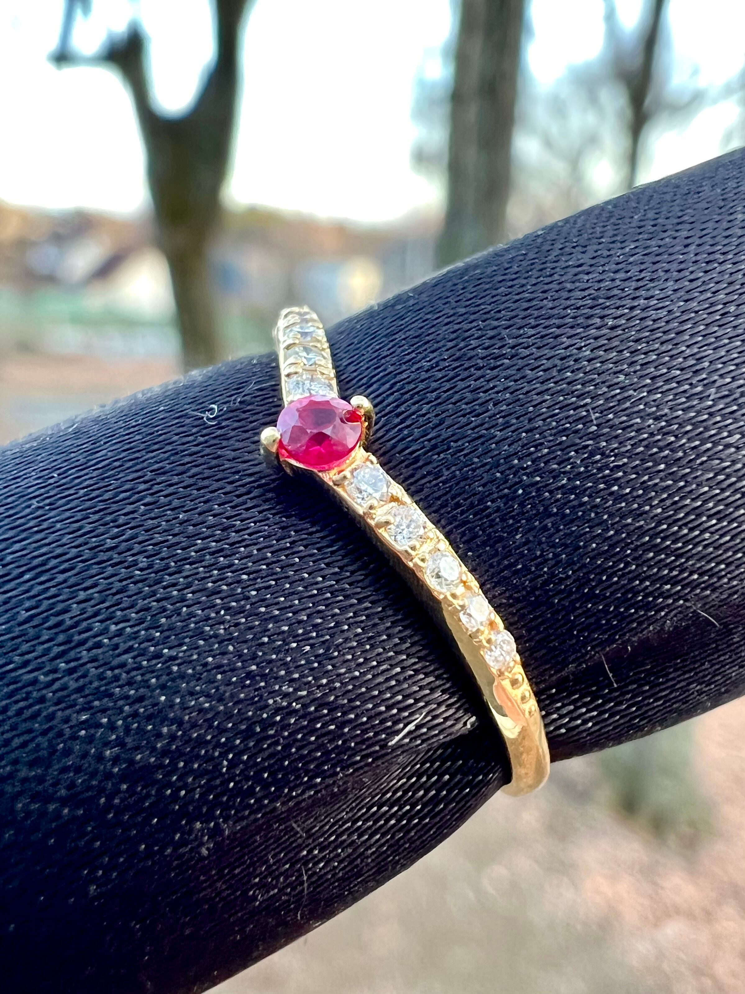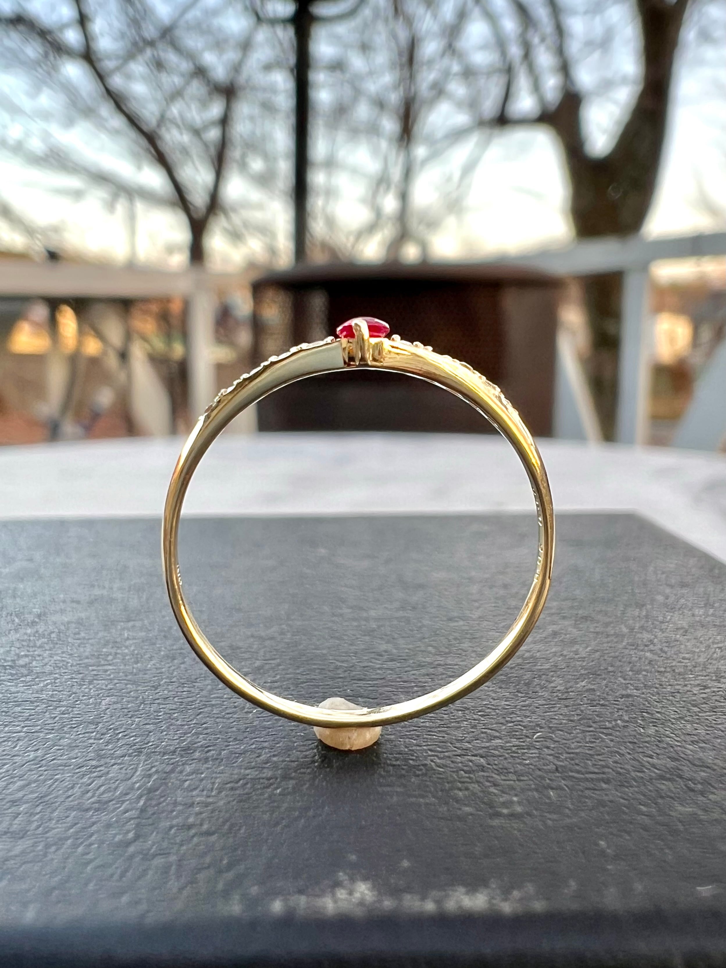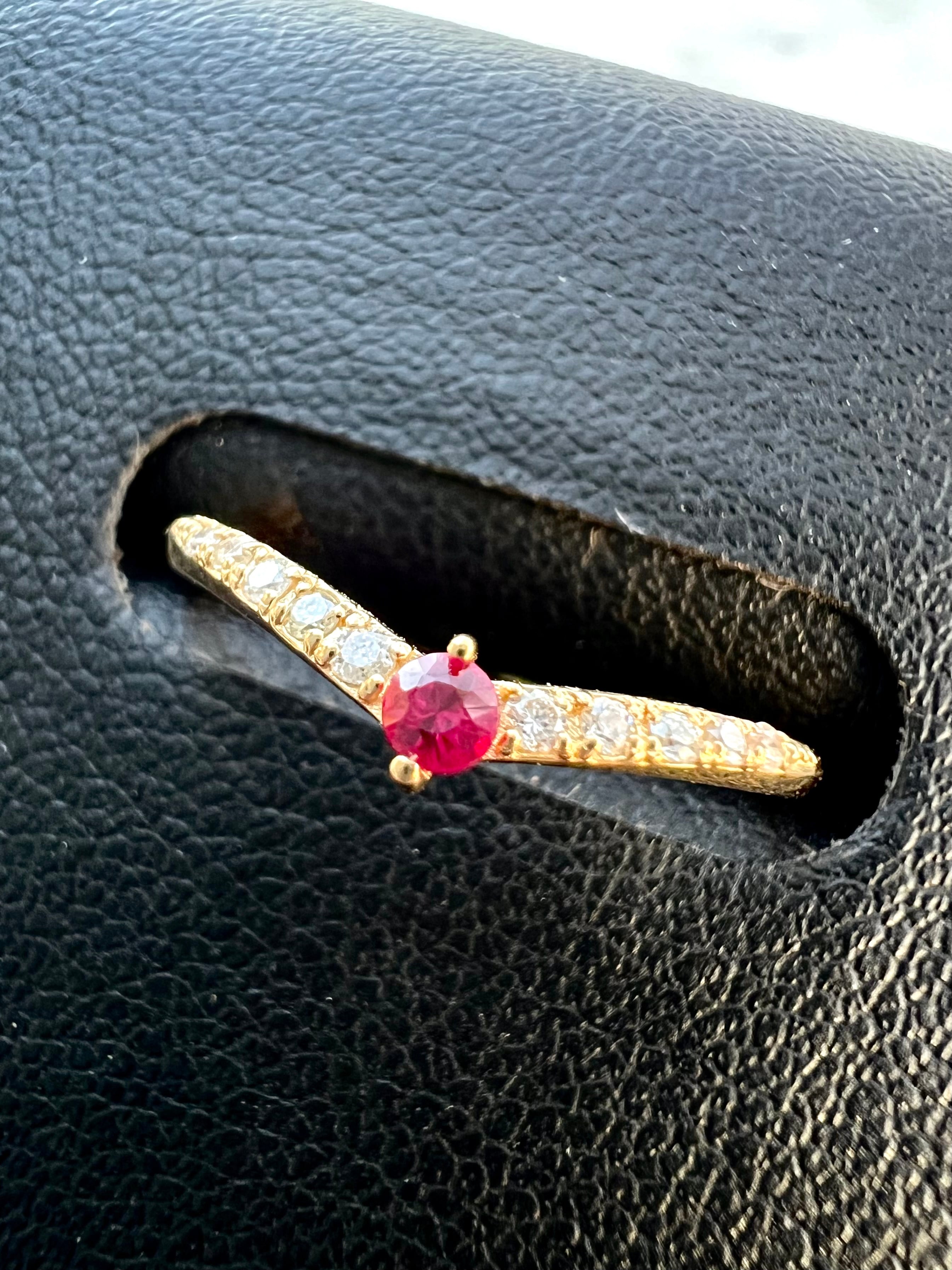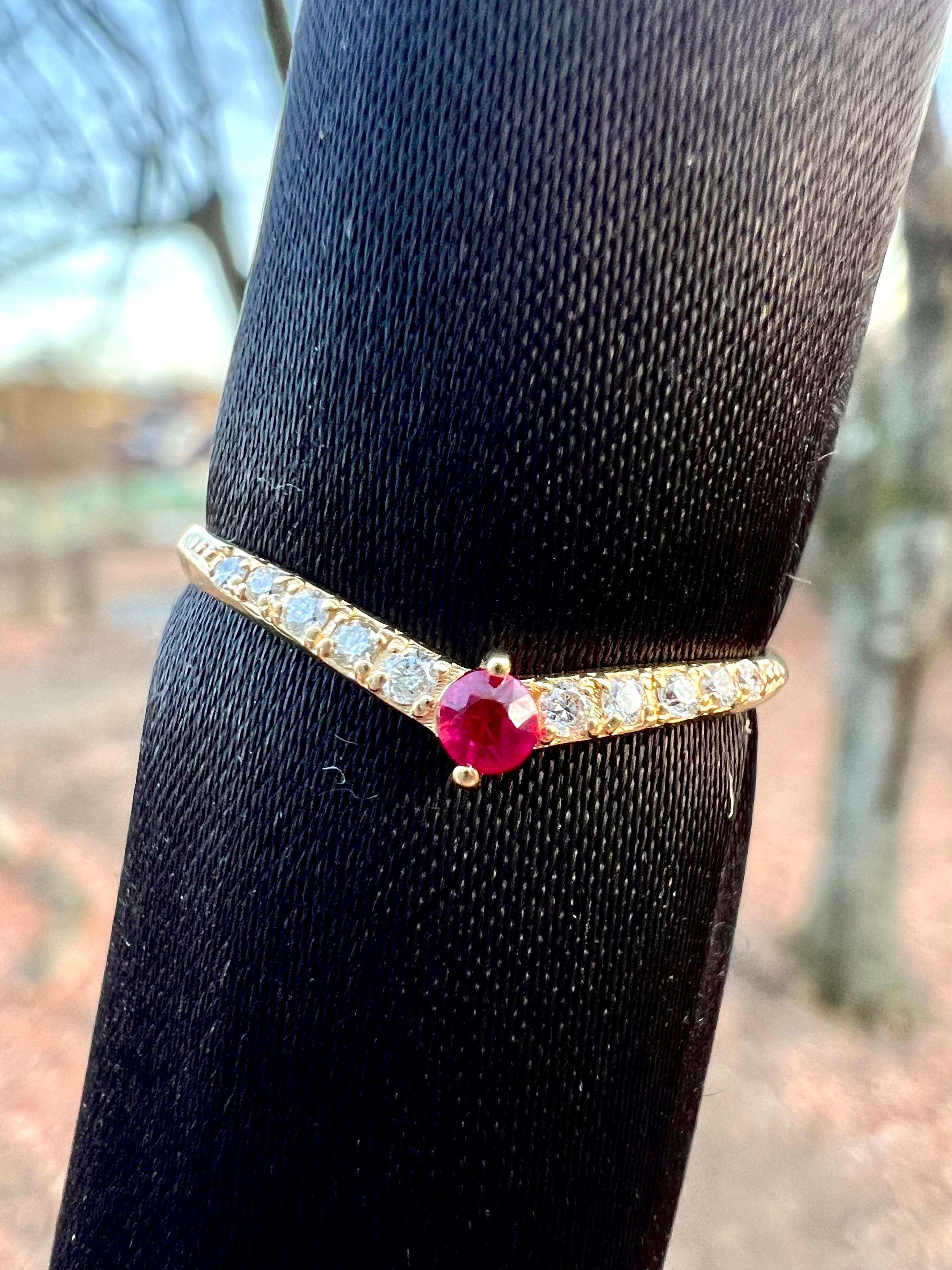 ルビーを1石センターにいれたV字のハーフエタニティリングです。