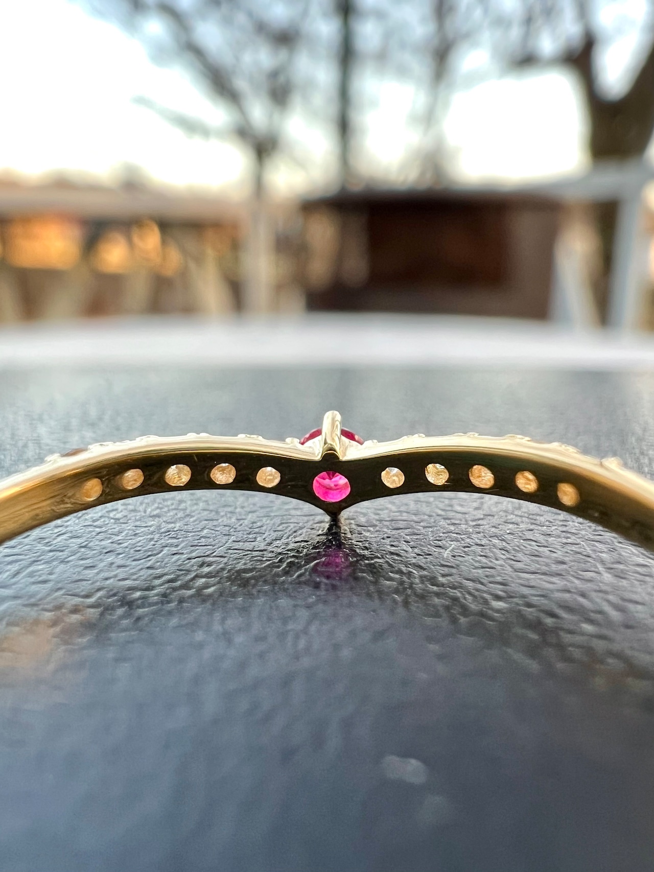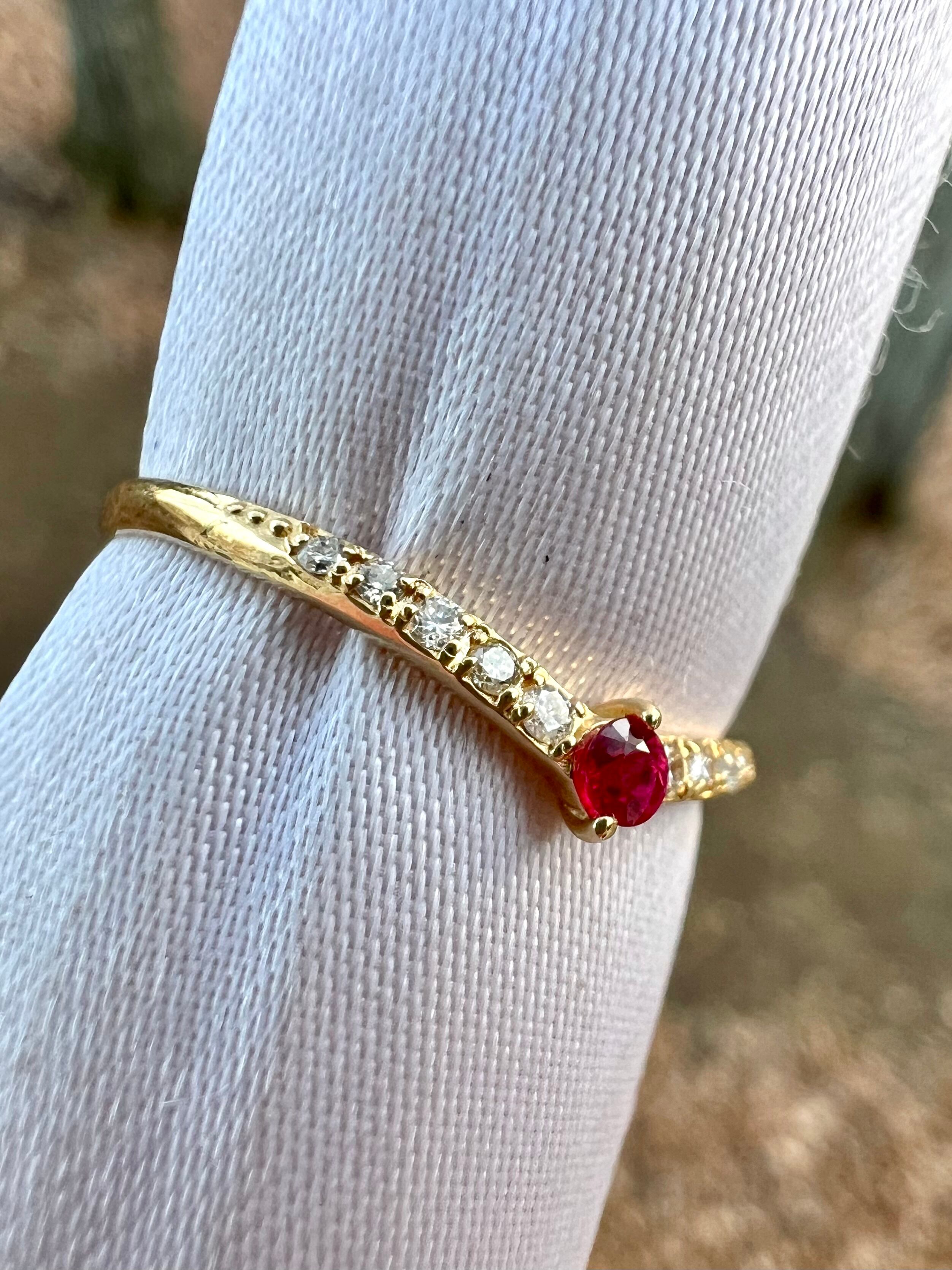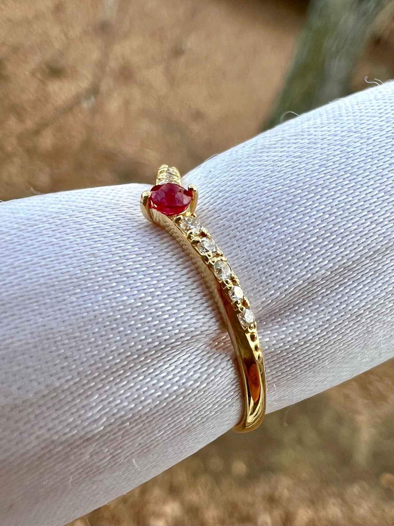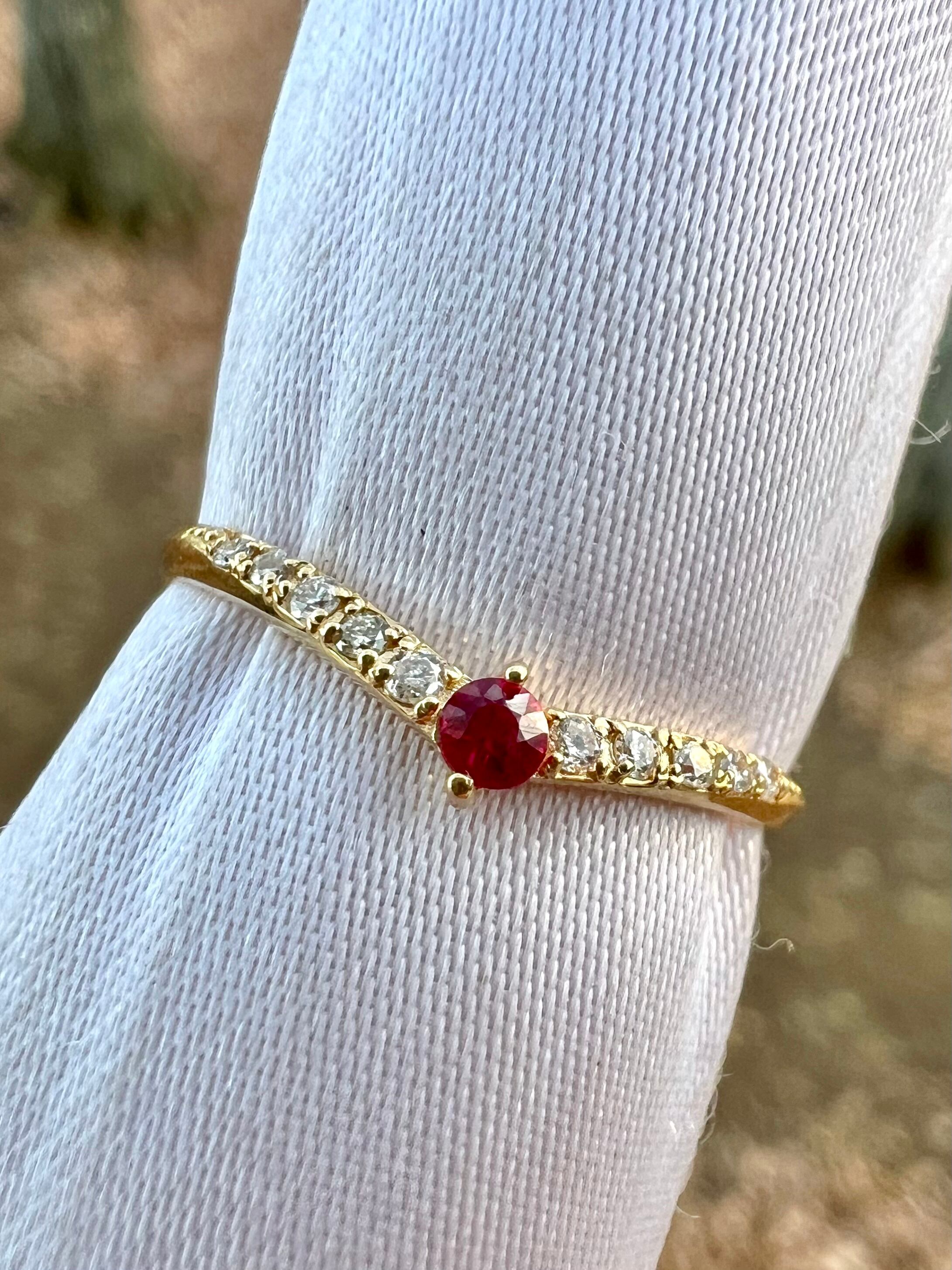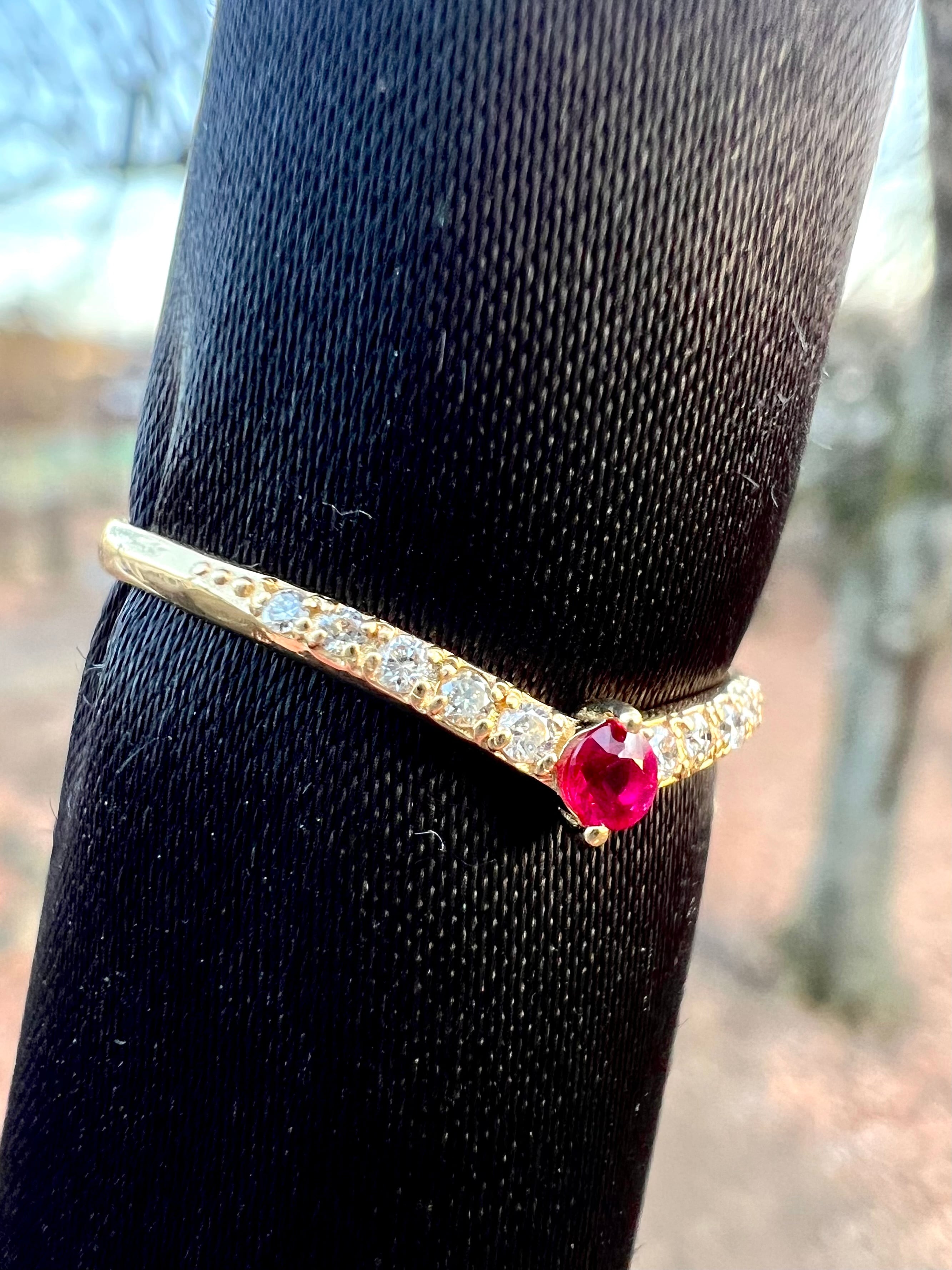 ルビーを1石センターにいれたV字のハーフエタニティリングです。