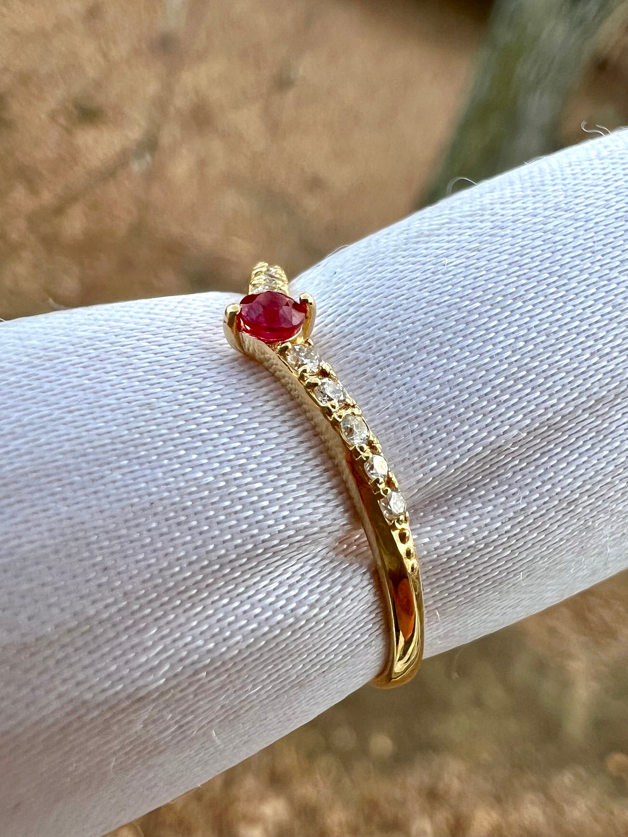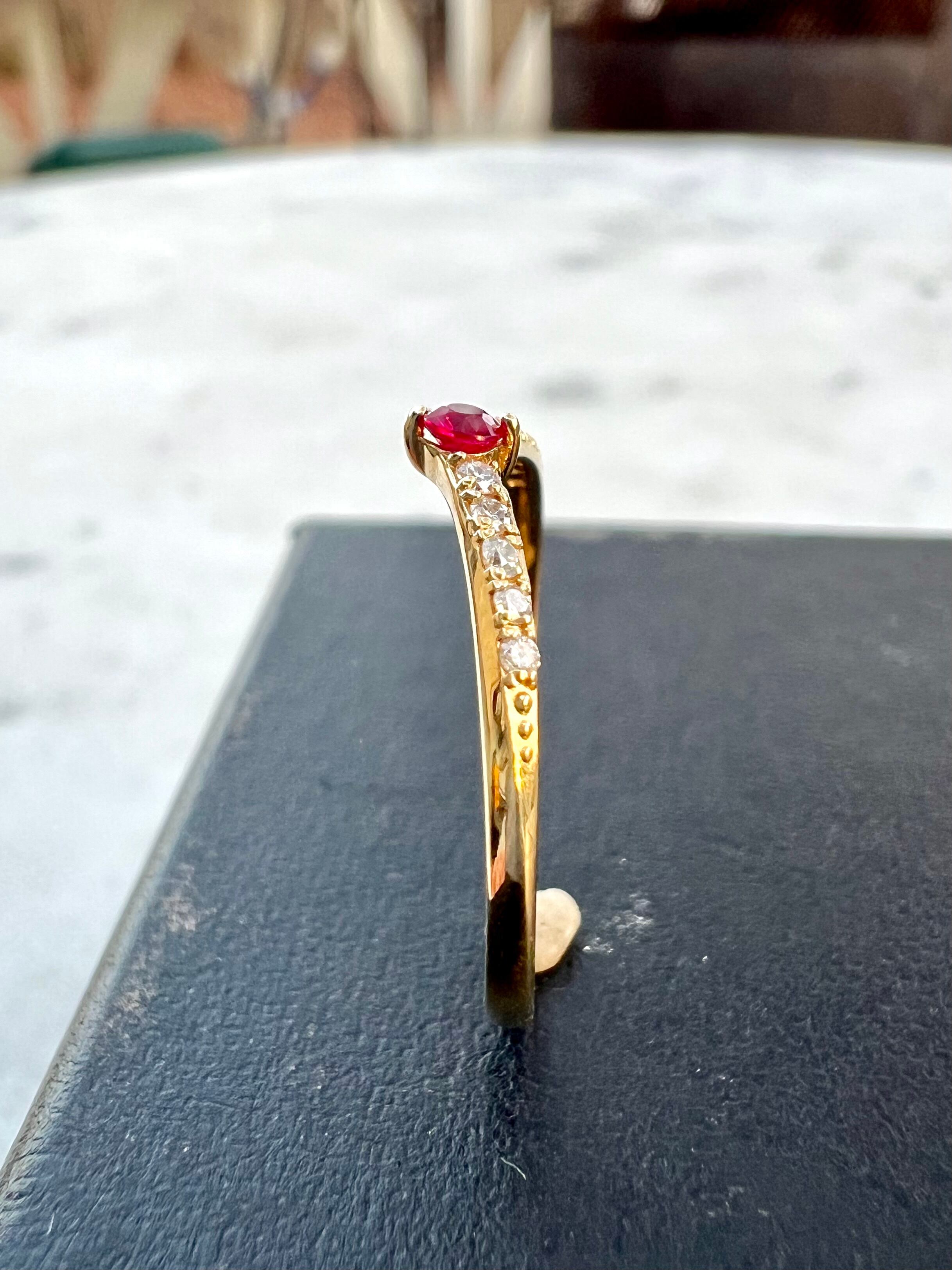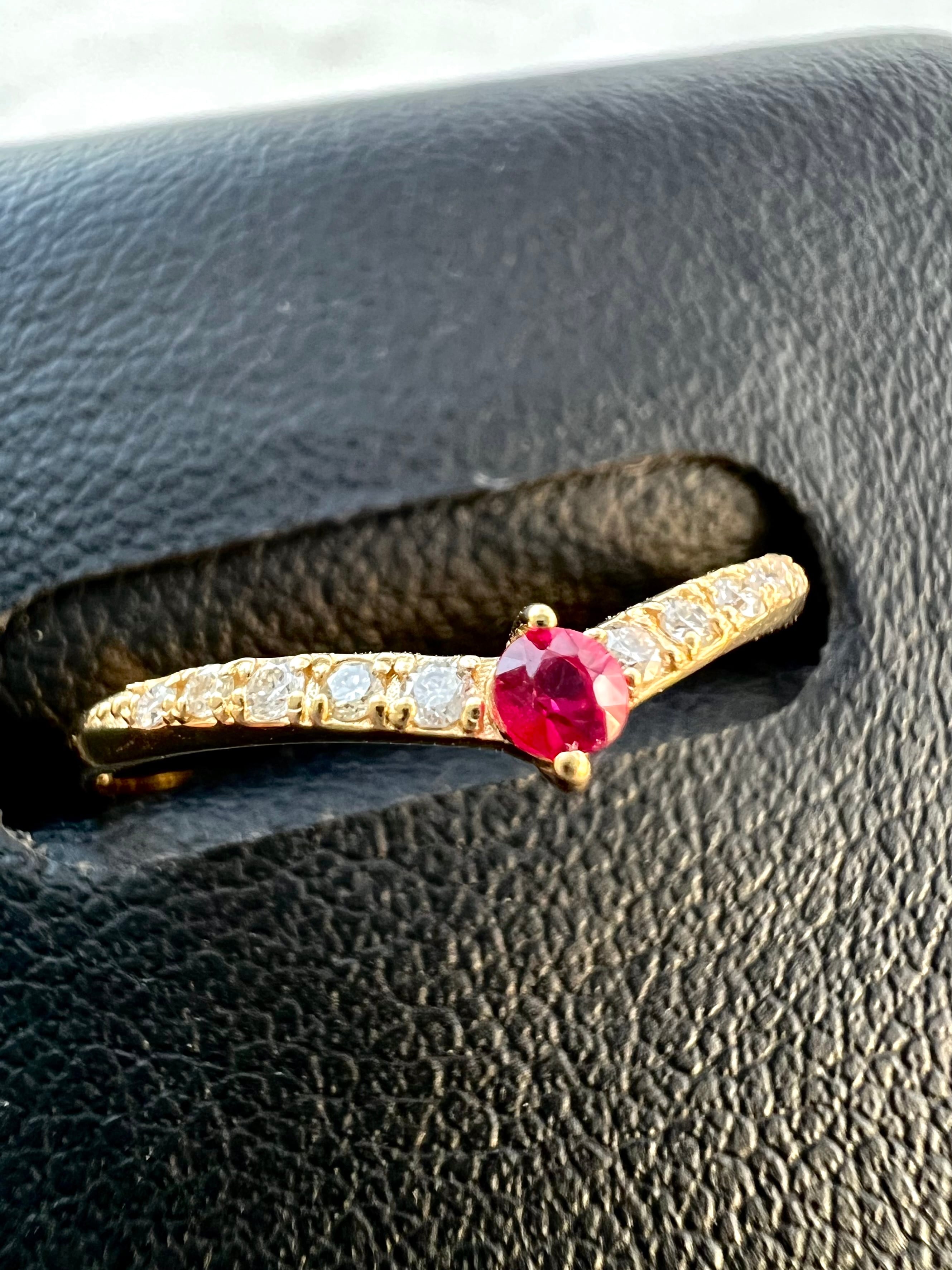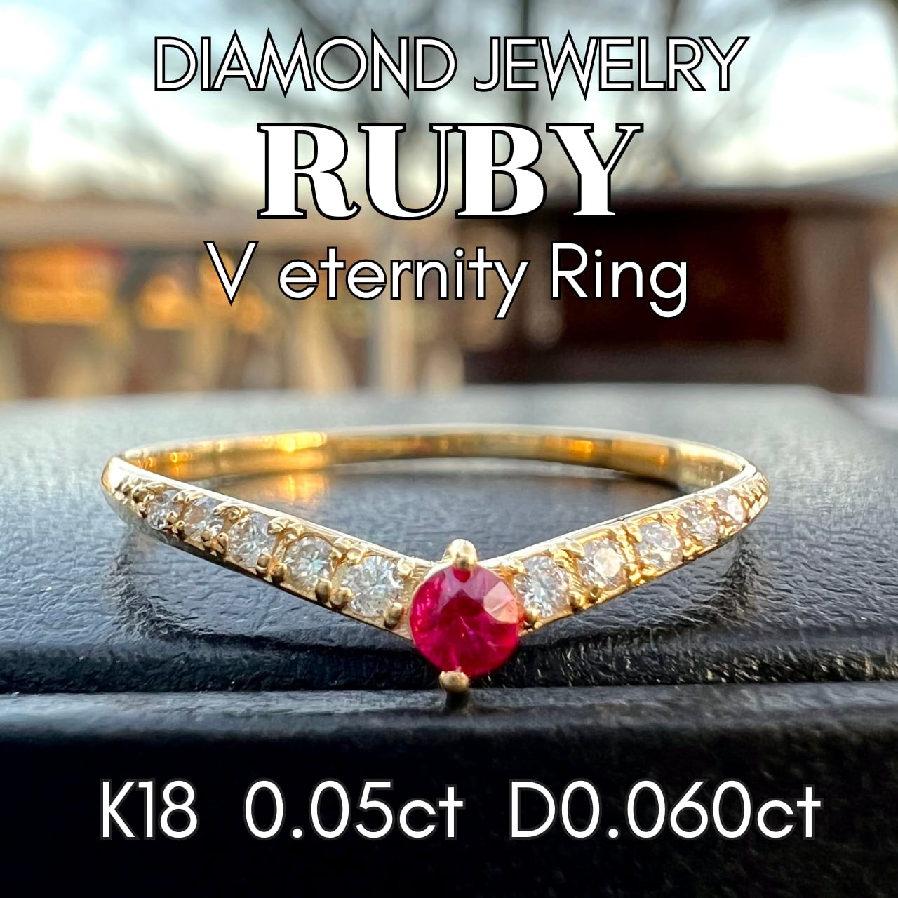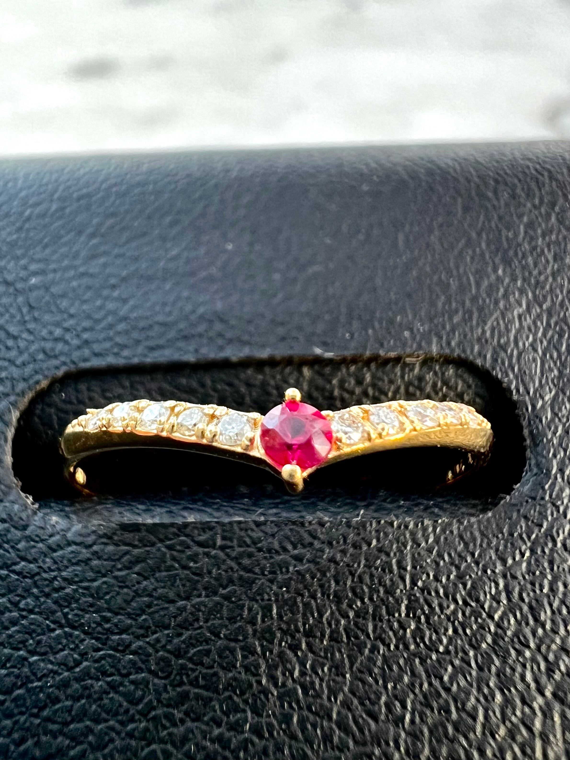 K18 ルビーダイヤモンドV字ハーフエタニティリング