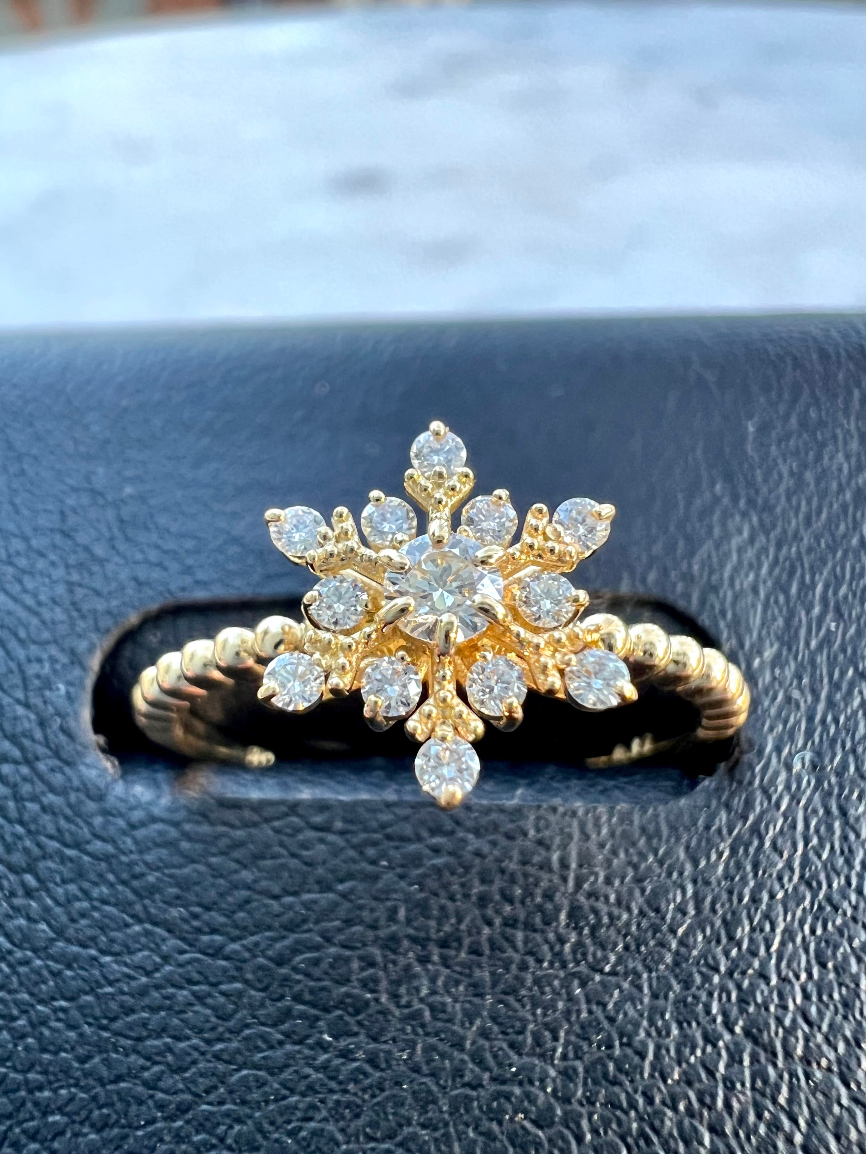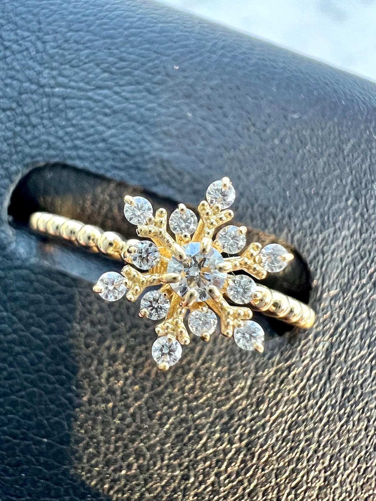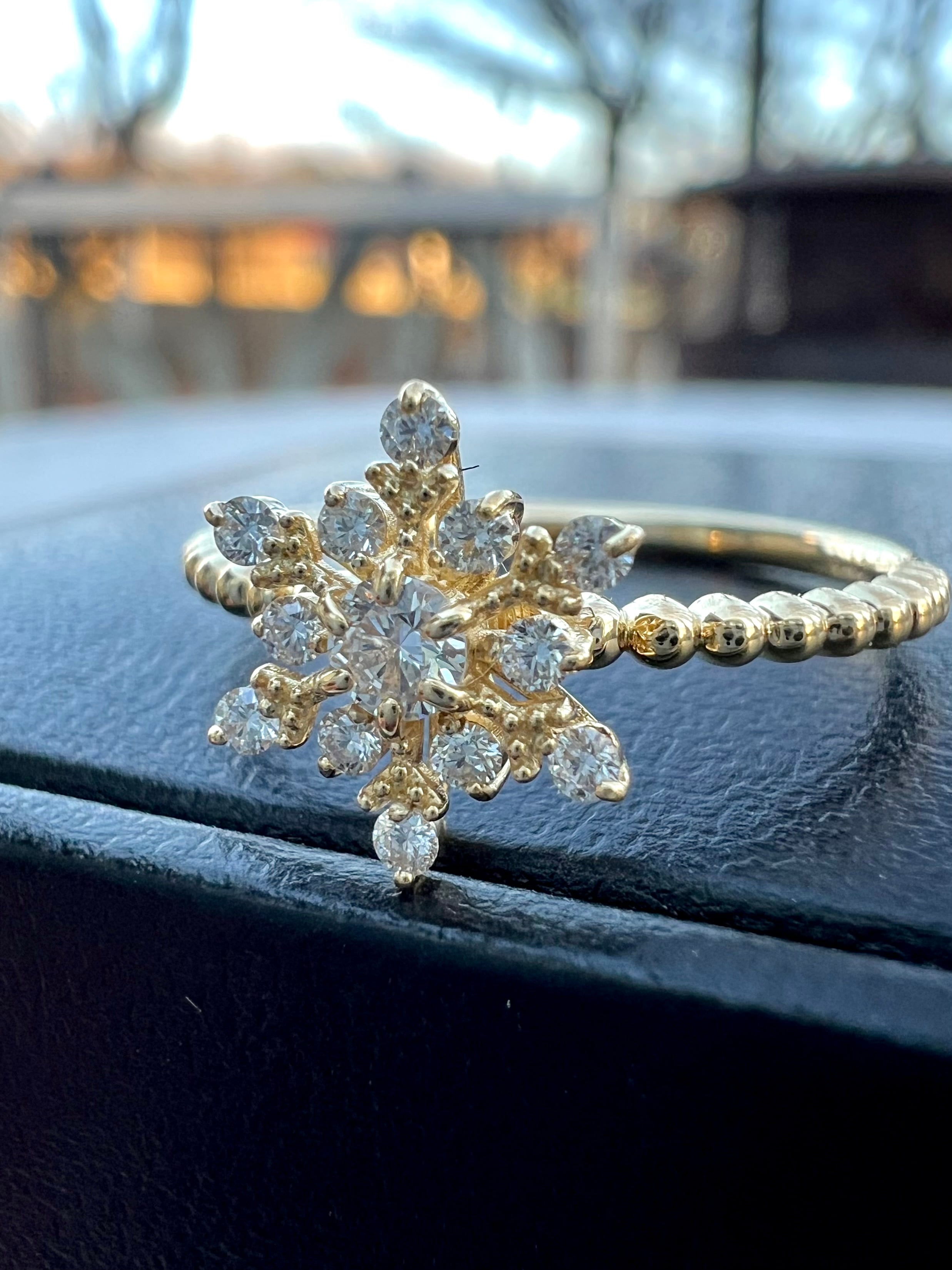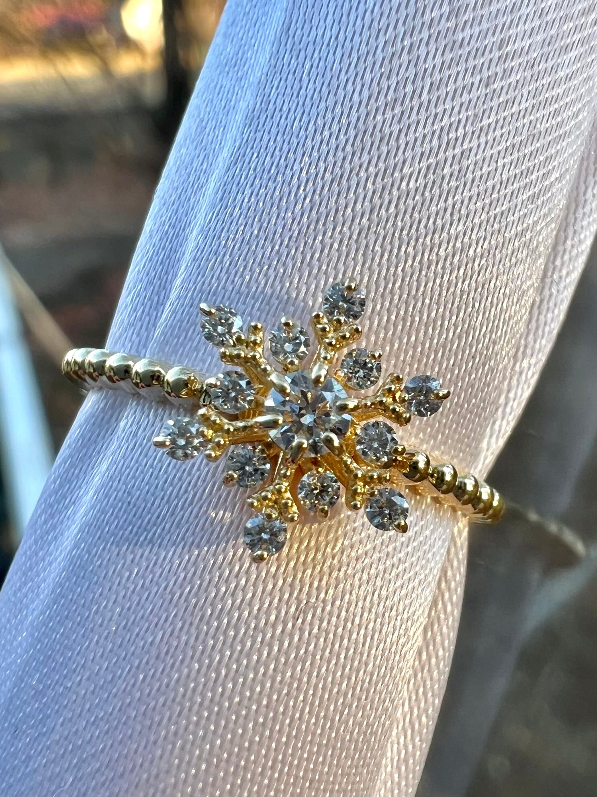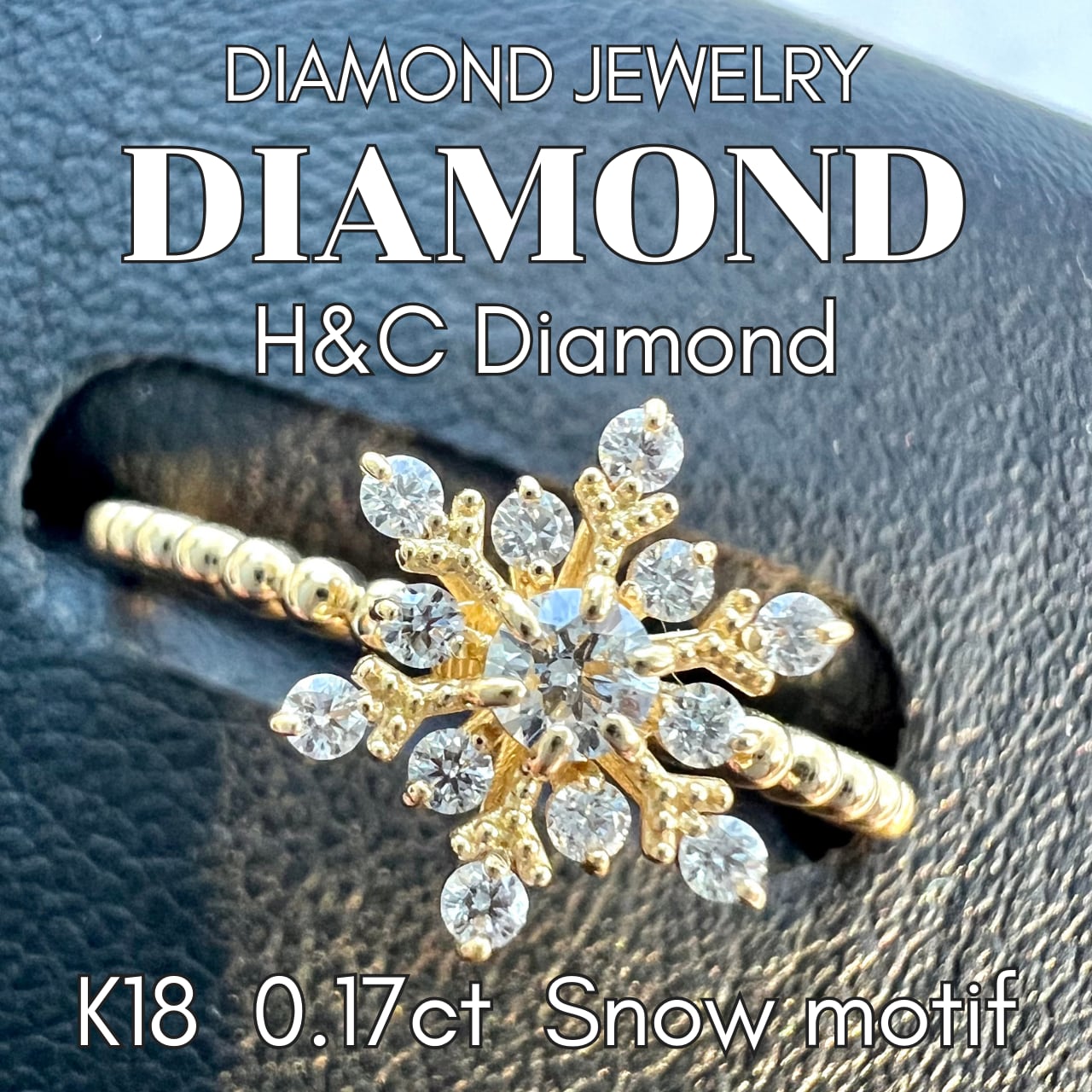超可愛い!雪の結晶デザイン!K18YG all H&Cダイヤモンドリング GGSカード鑑別付属