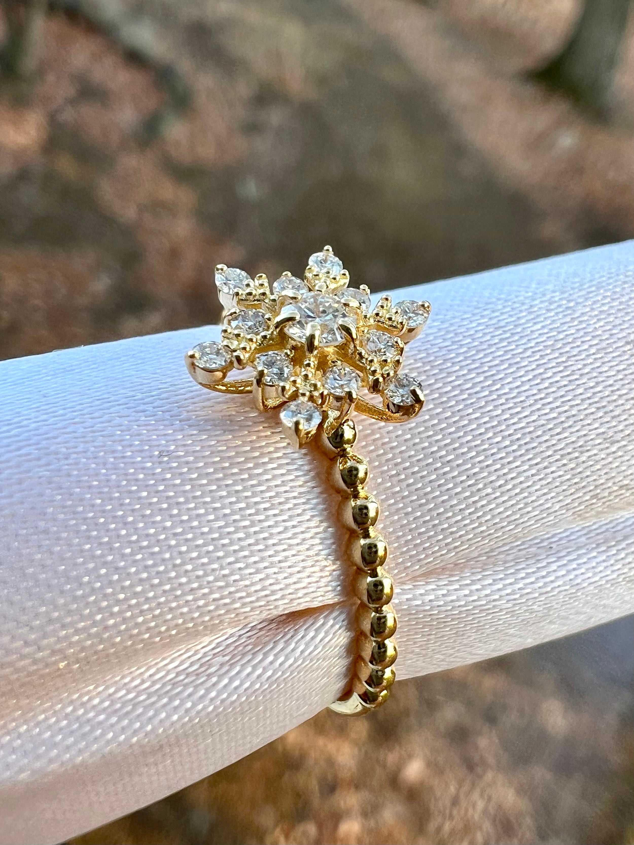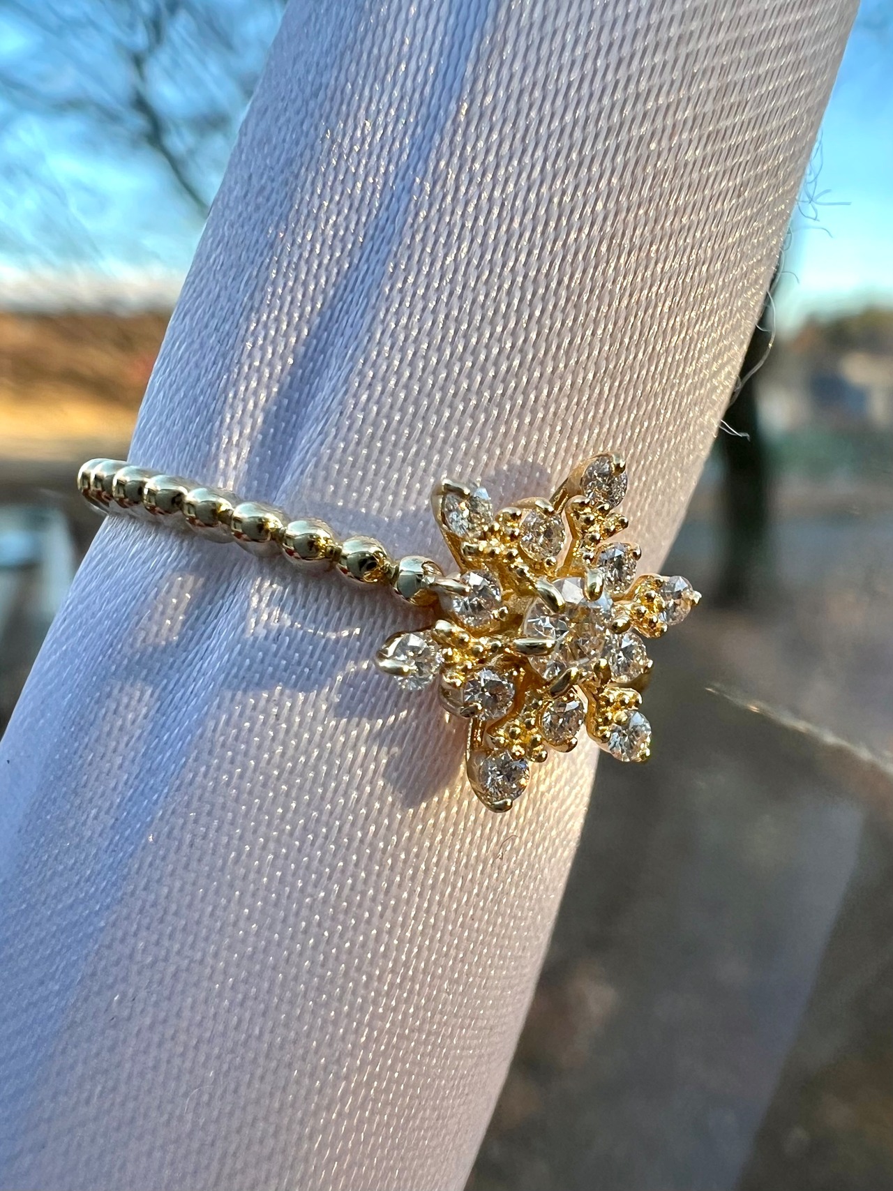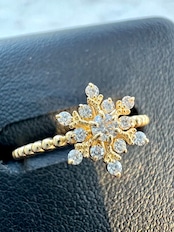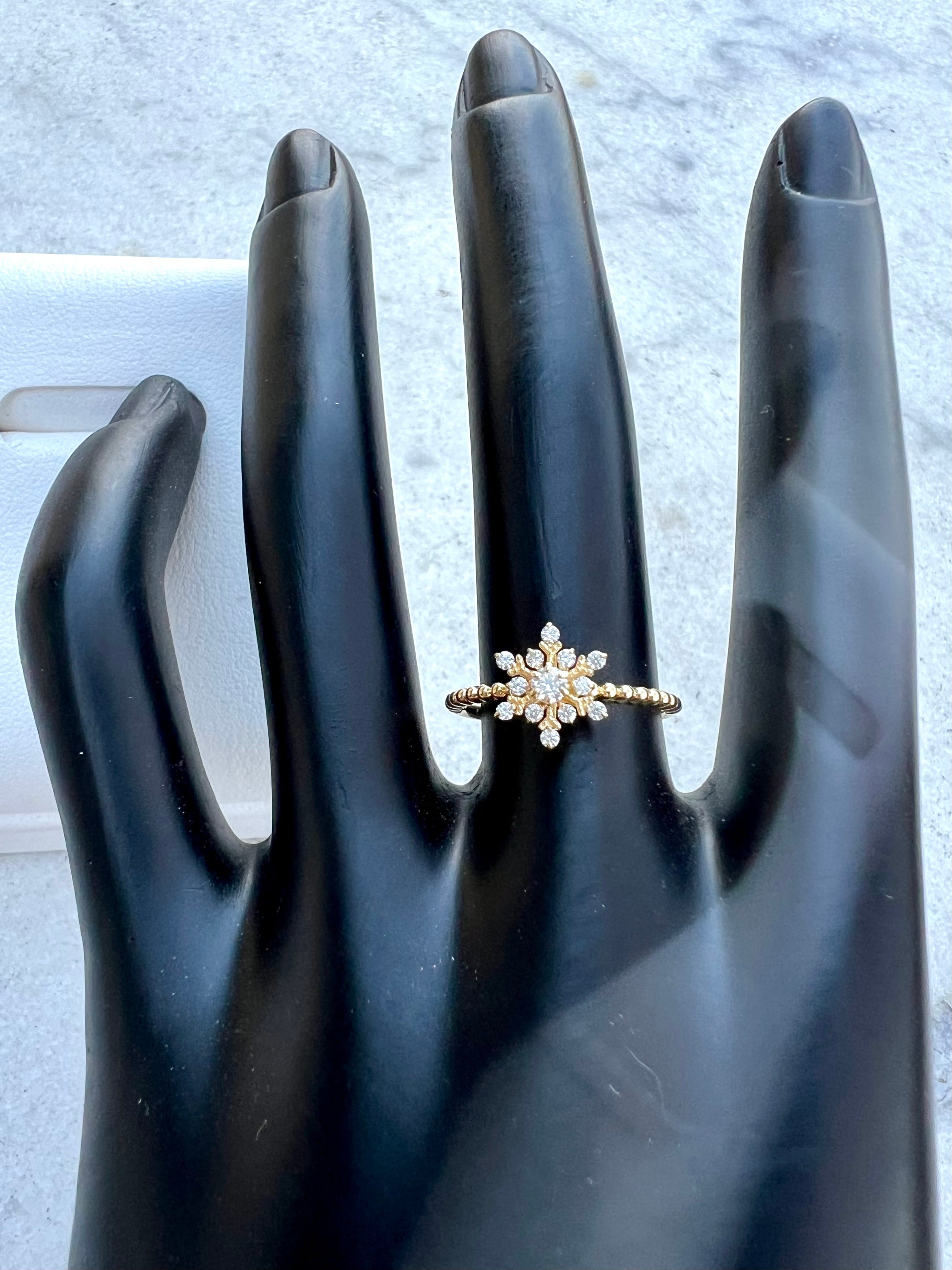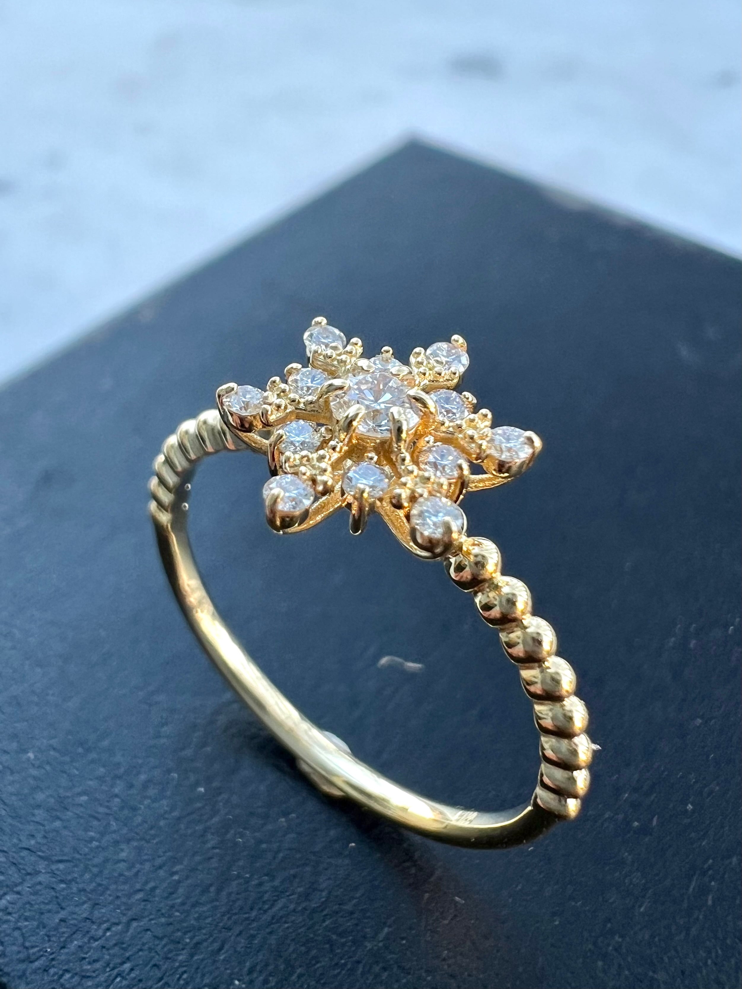 超可愛い!雪の結晶デザイン!K18YG all H&Cダイヤモンドリング GGSカード鑑別付属