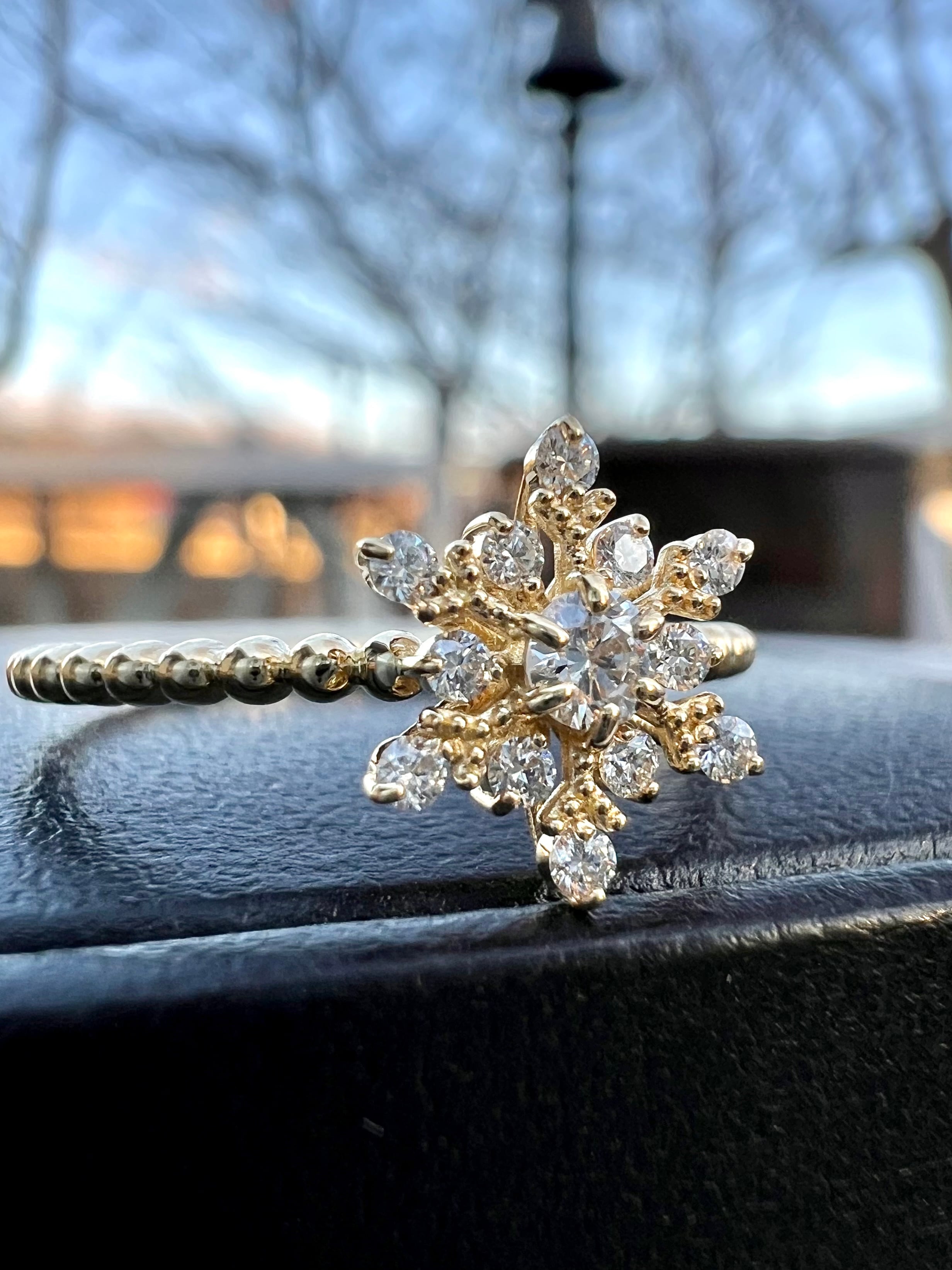 H&Cダイヤモンド13石とミルを使い、雪の結晶をモチーフにした弊社のオリジナルデザイン!