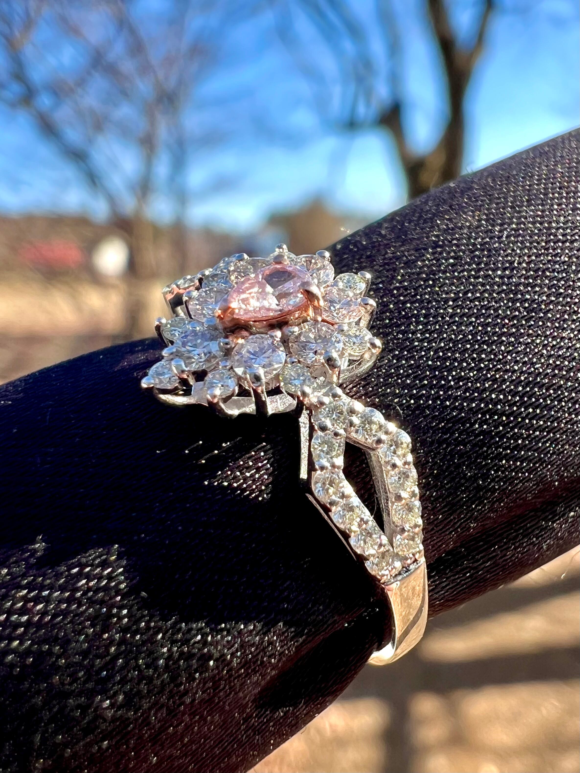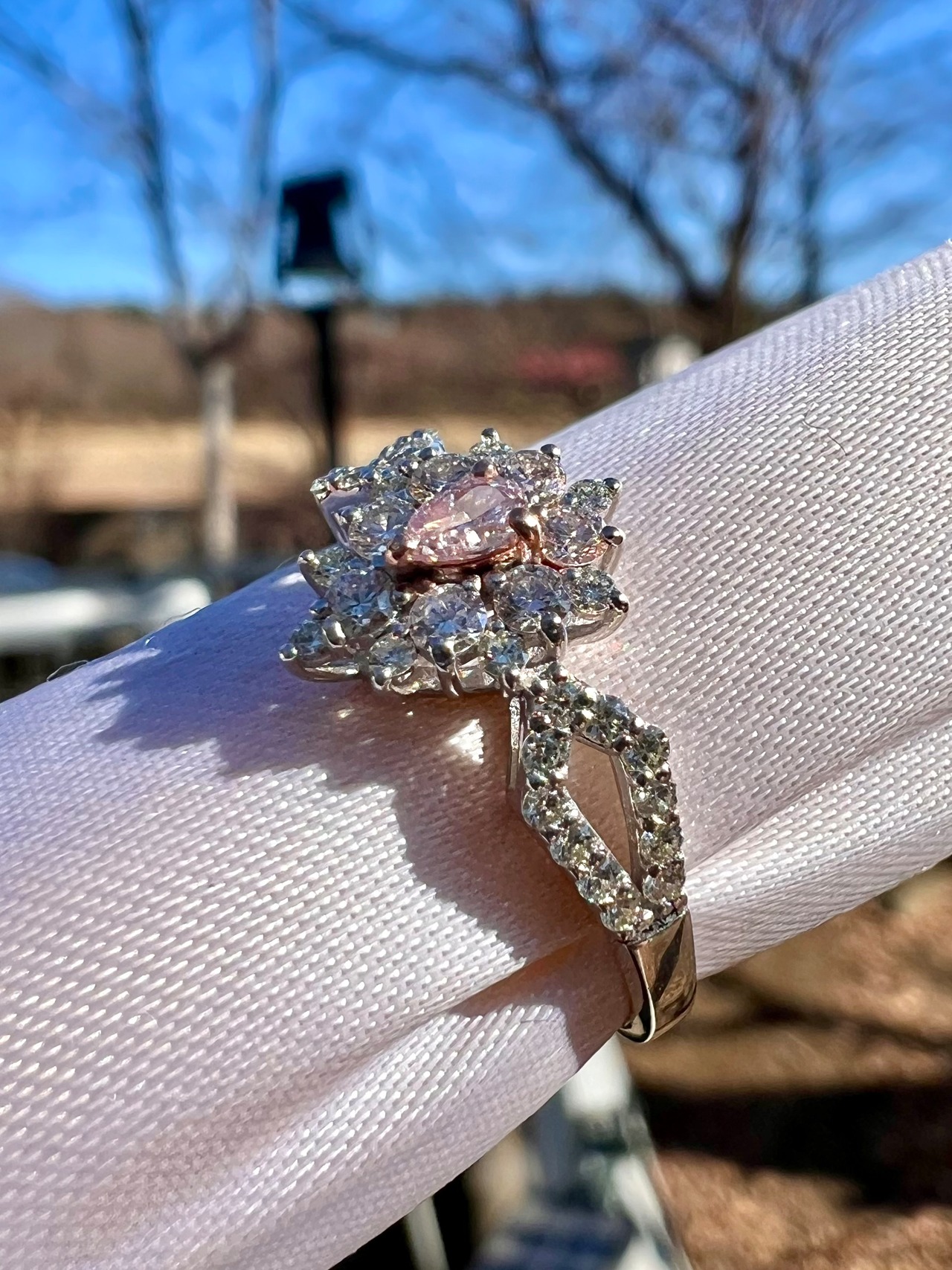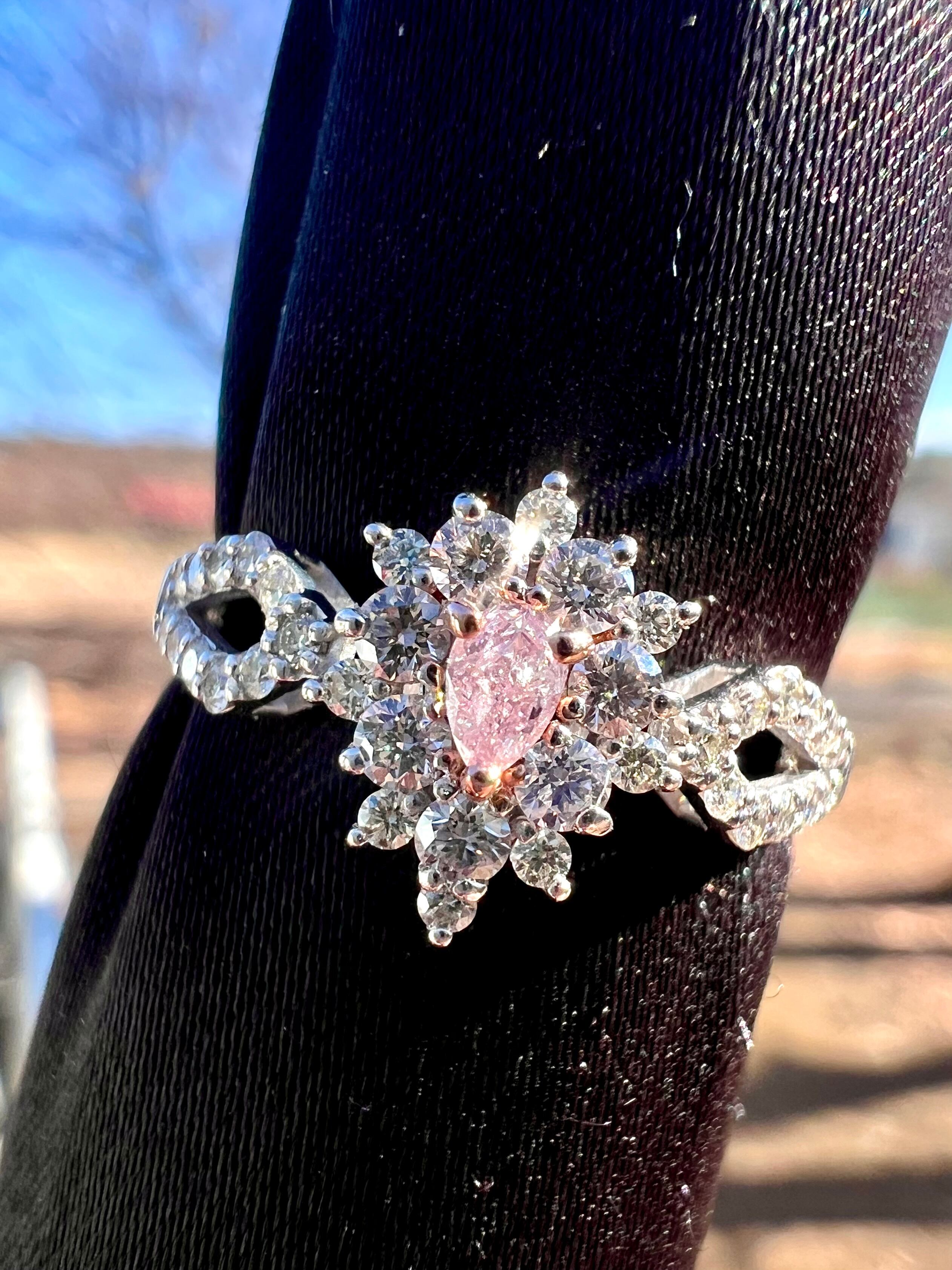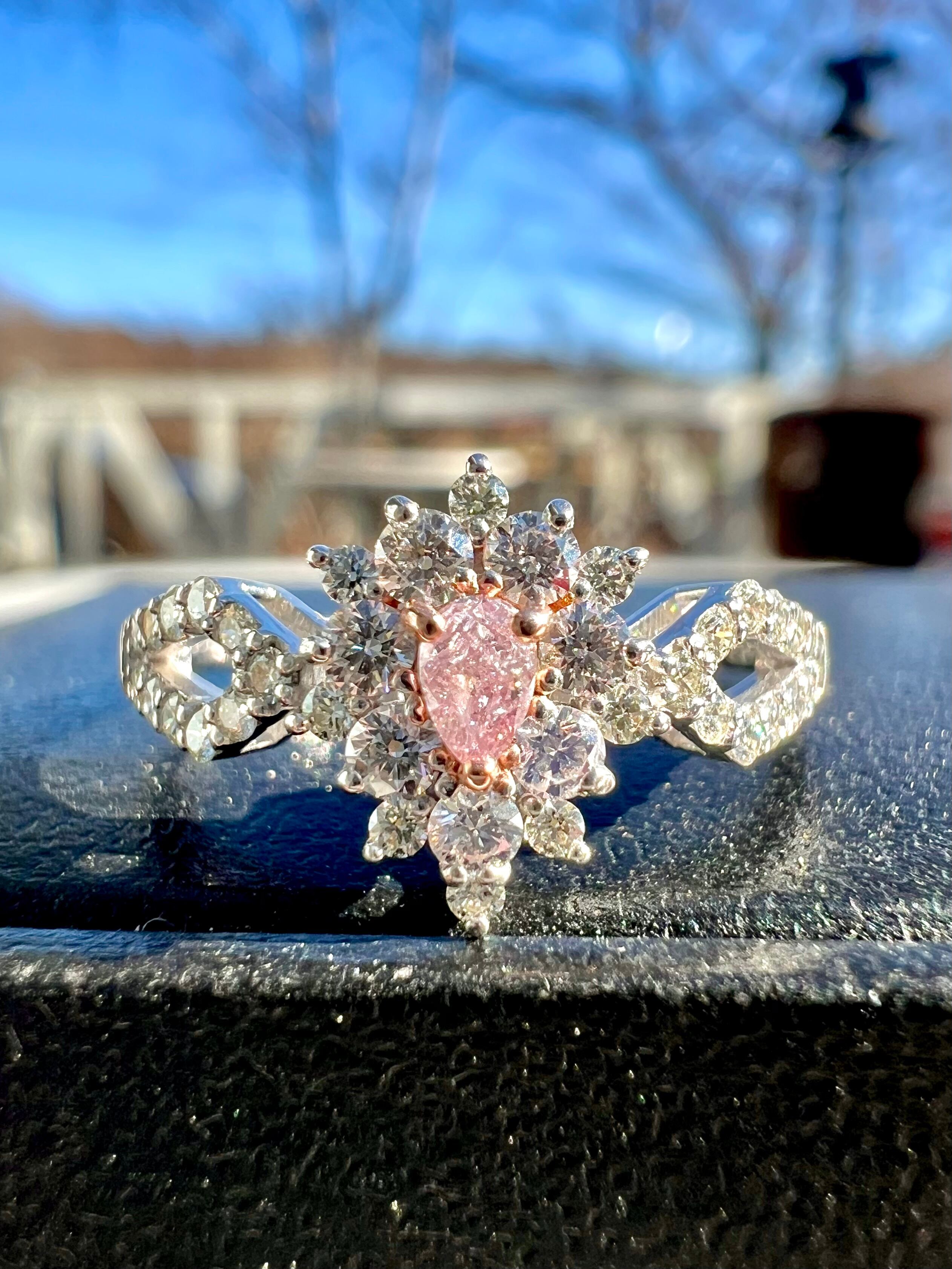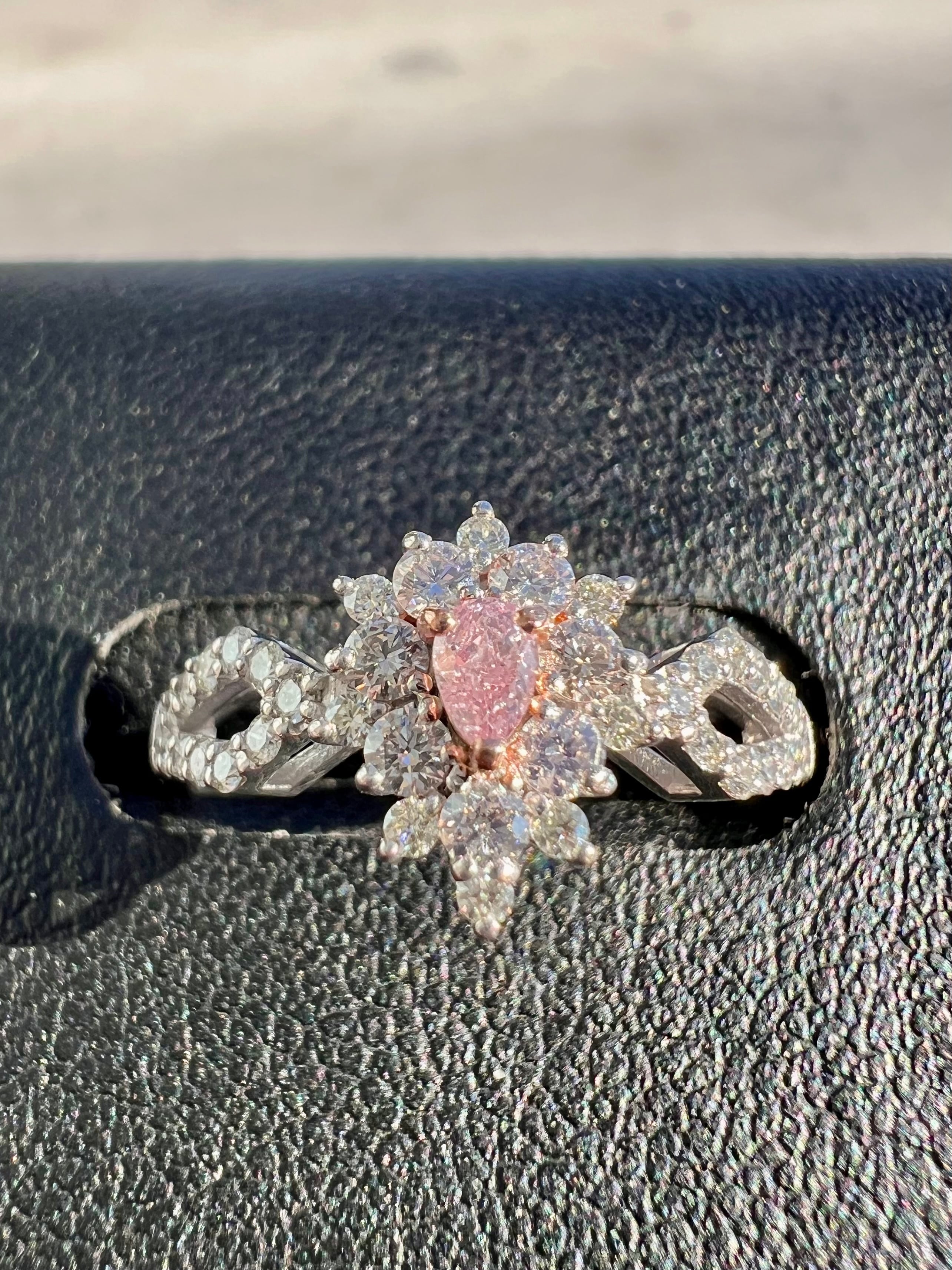 屋外撮影の為ピンクダイヤモンドは撮影が難しく現物の方が可愛いピンクですね。