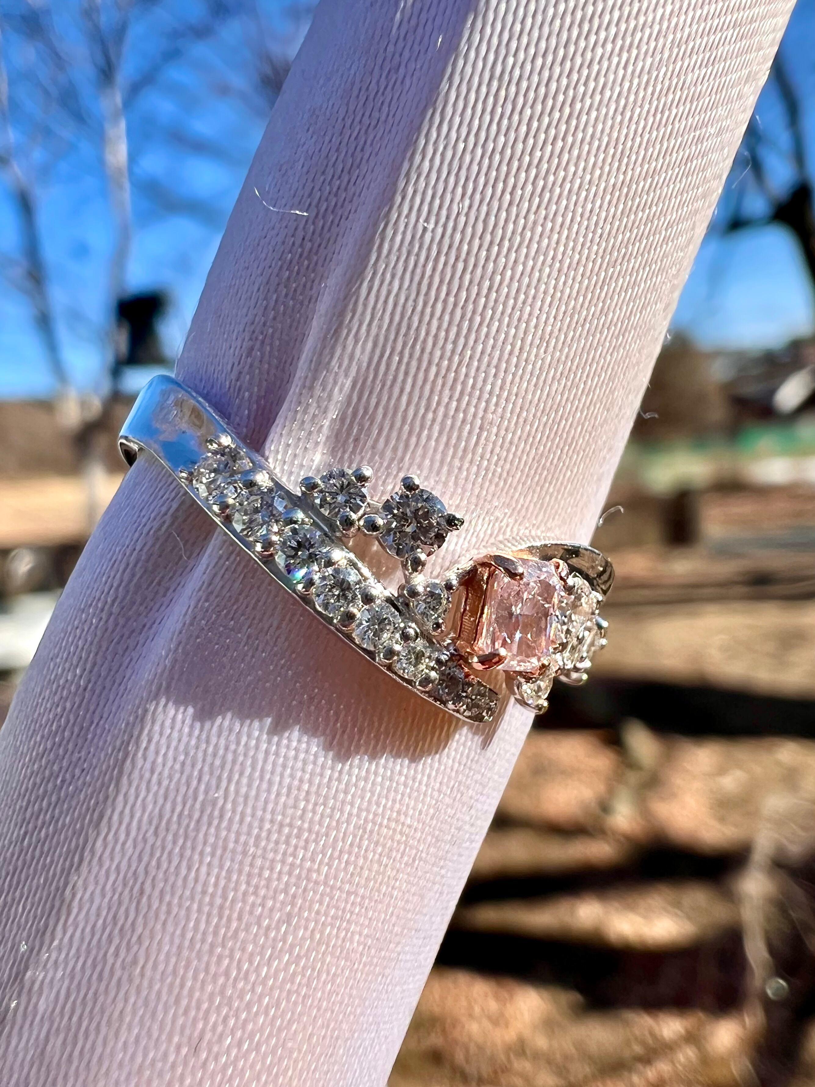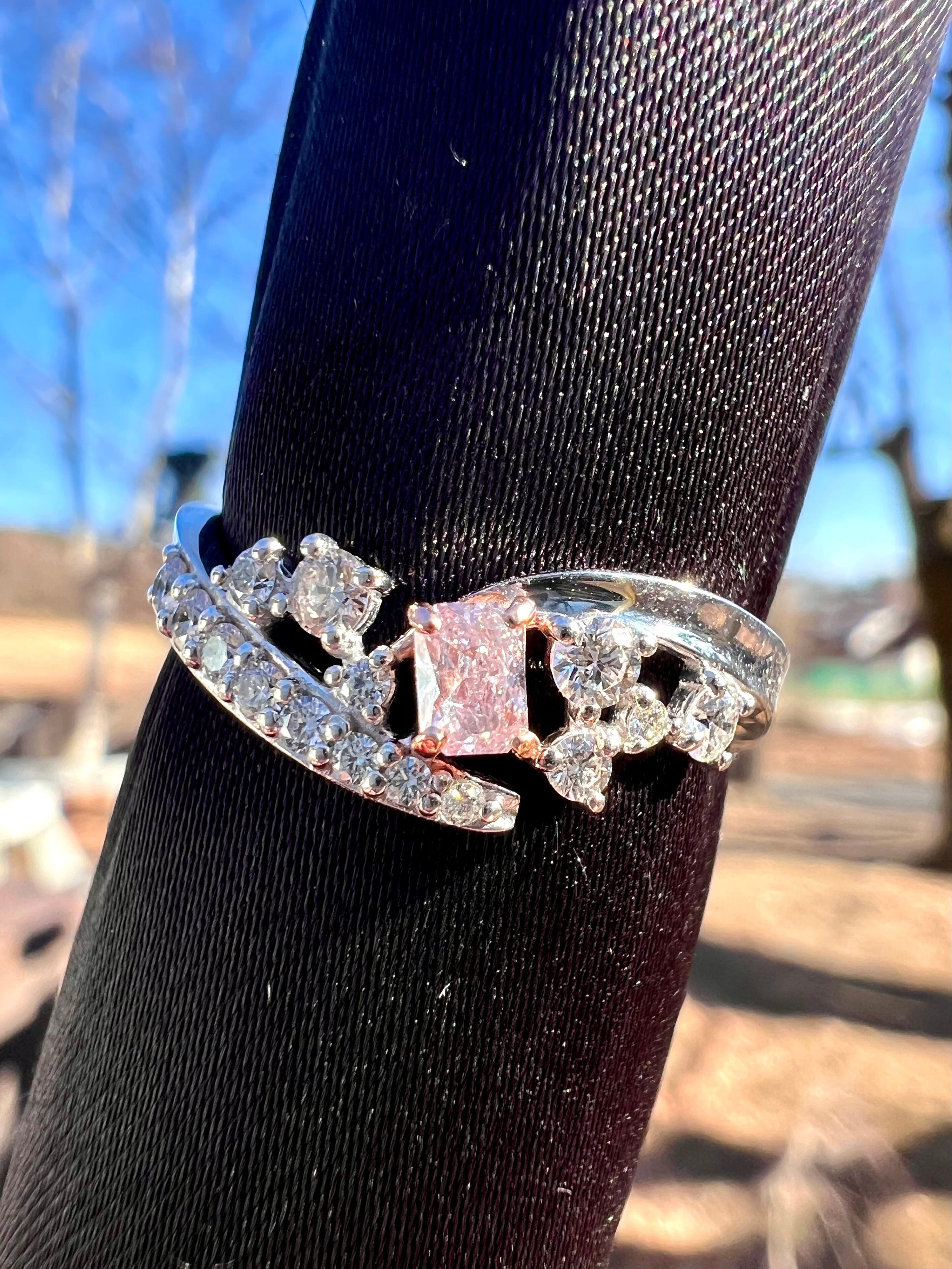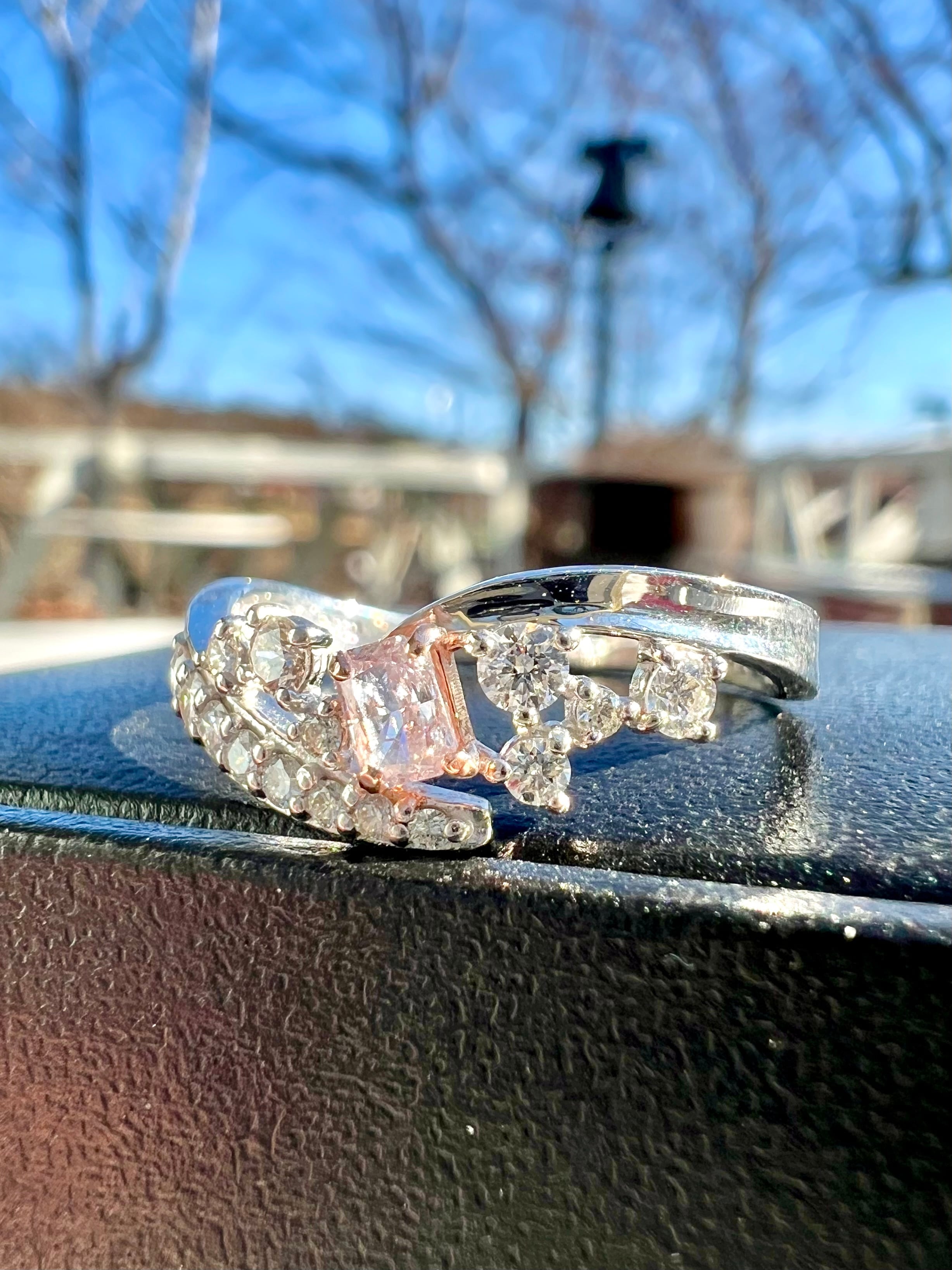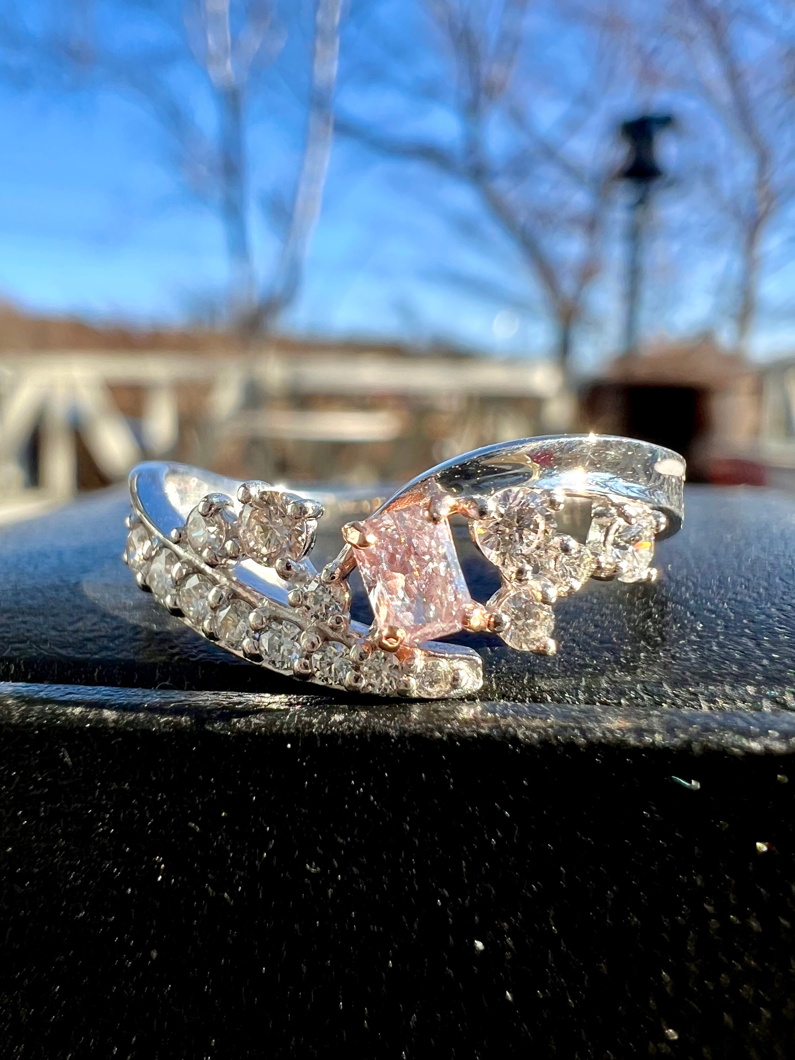 屋外撮影の為ピンクダイヤモンドは撮影が難しく現物の方が可愛いピンクですね。