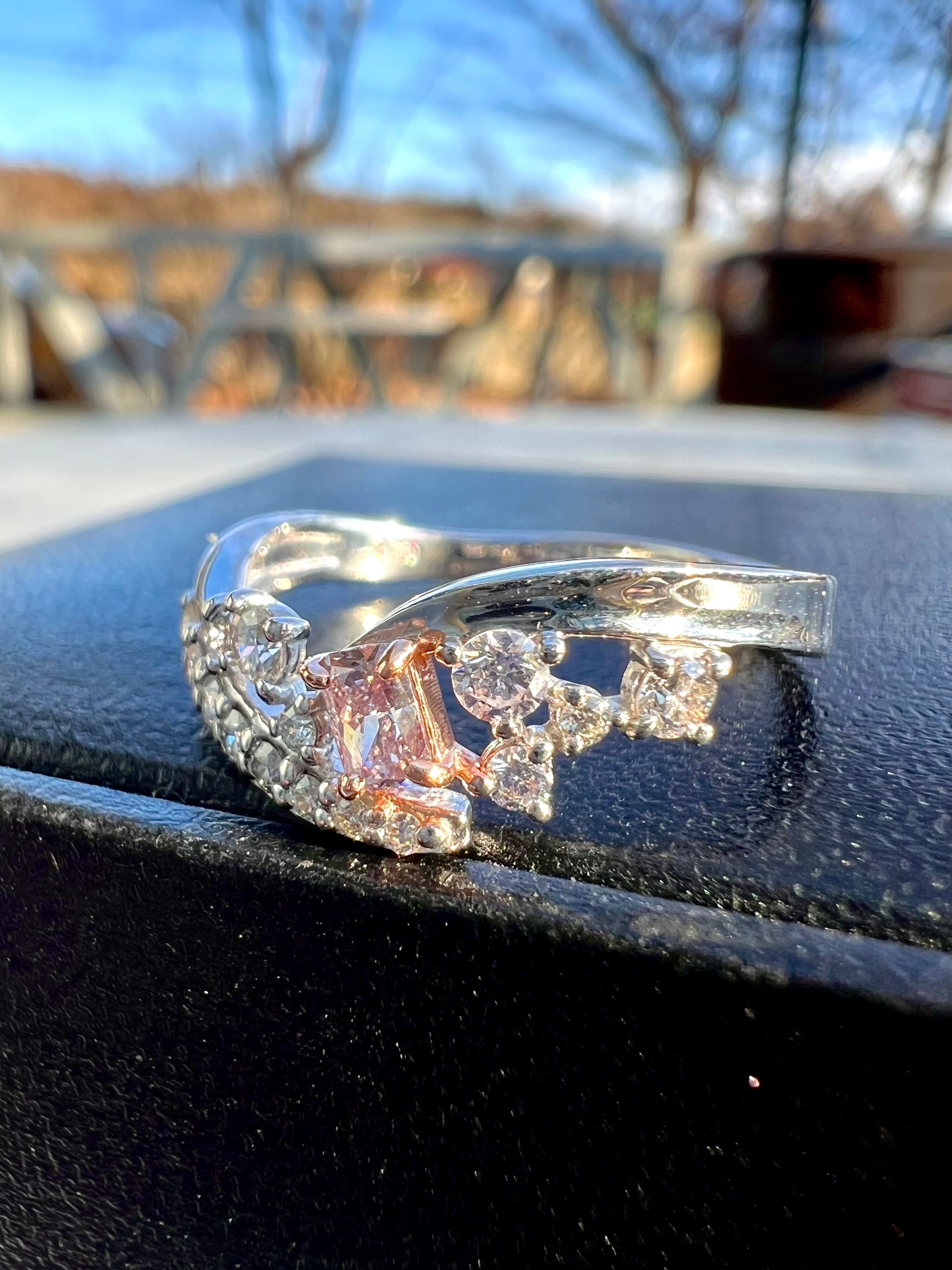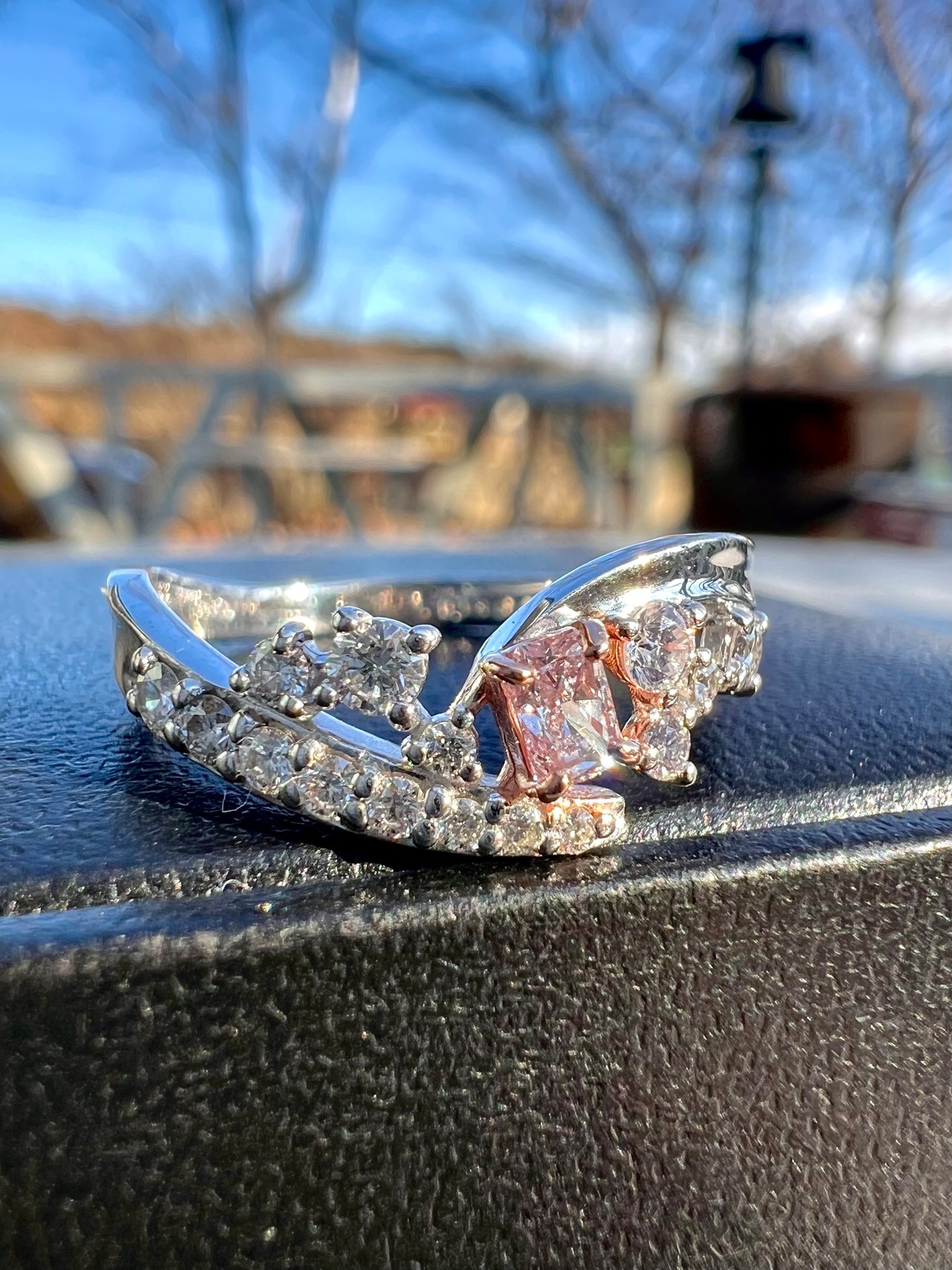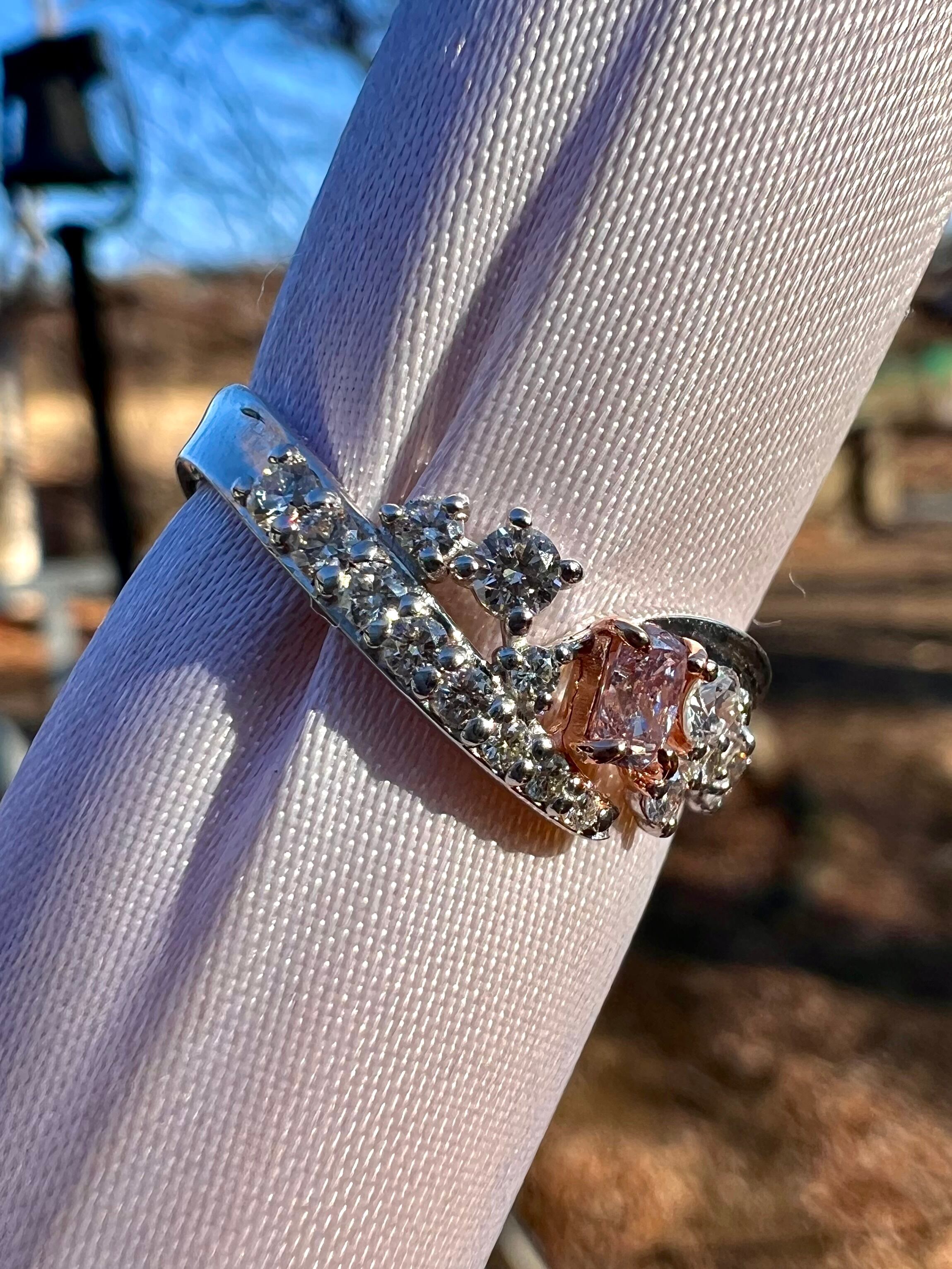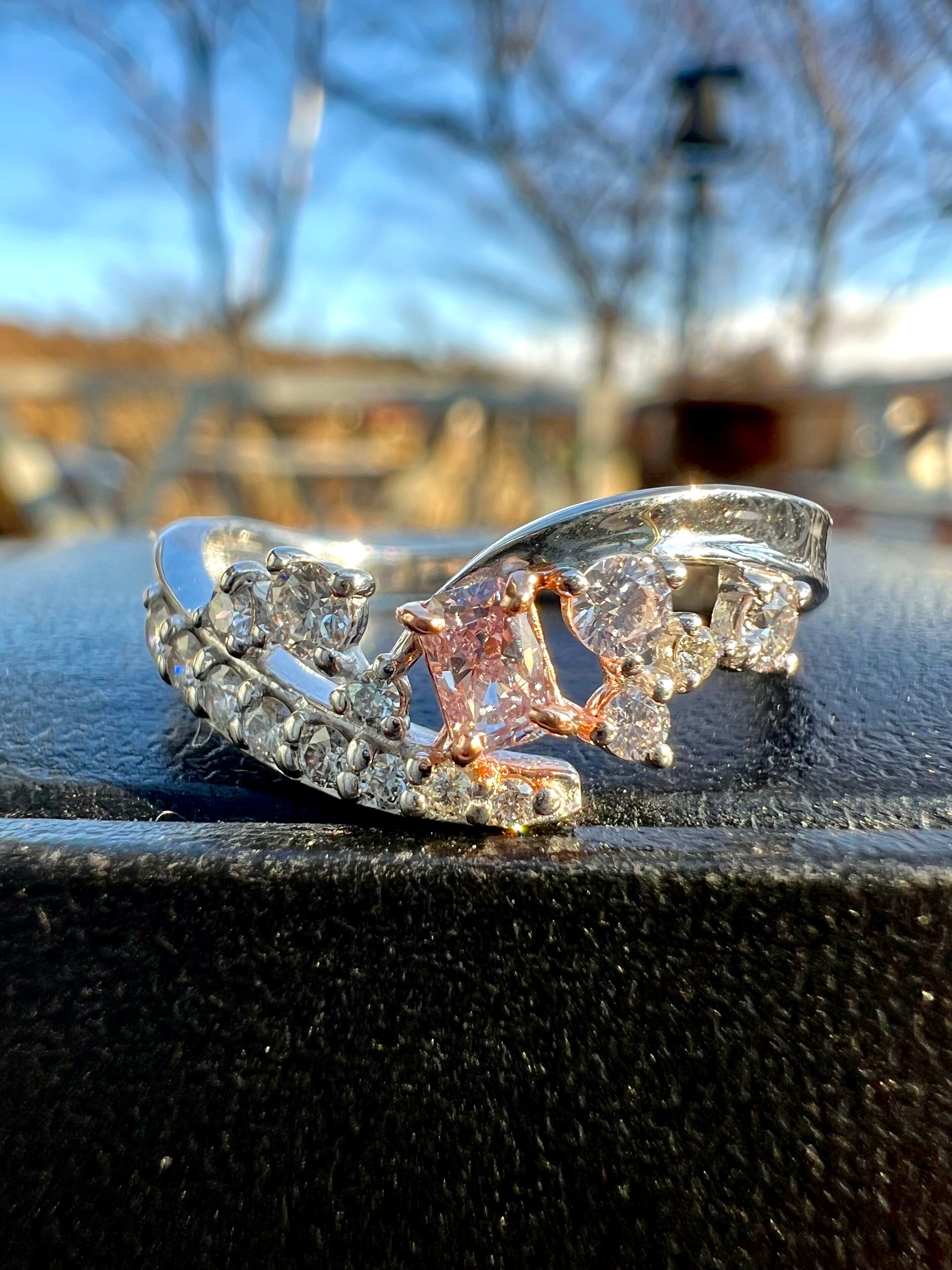 屋外撮影の為ピンクダイヤモンドは撮影が難しく現物の方が可愛いピンクですね。