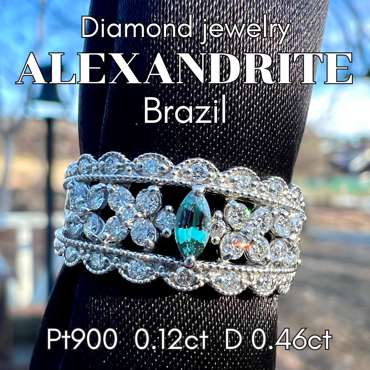 Pt900ブラジル産アレキサンドライトダイヤモンドリング