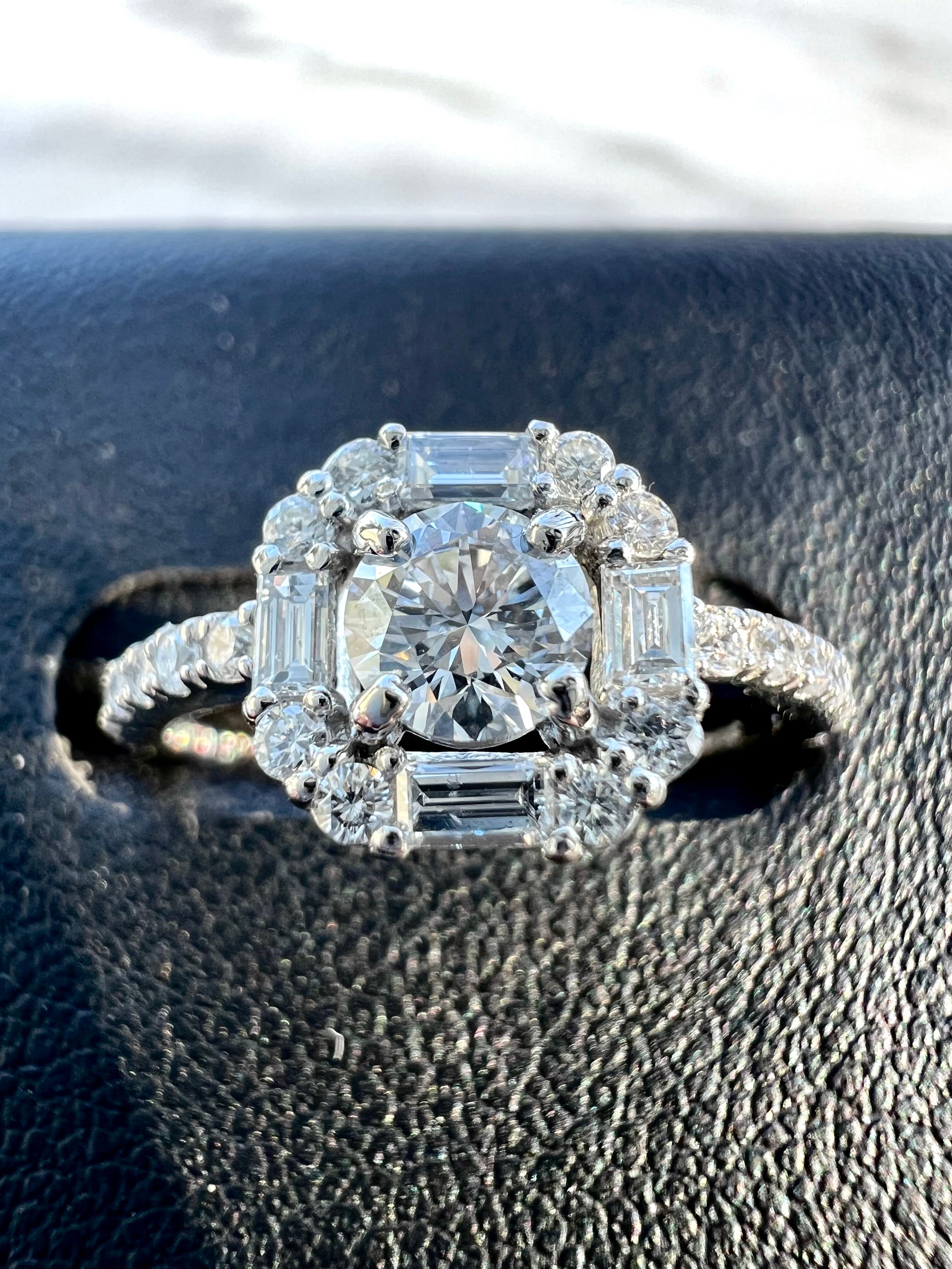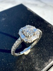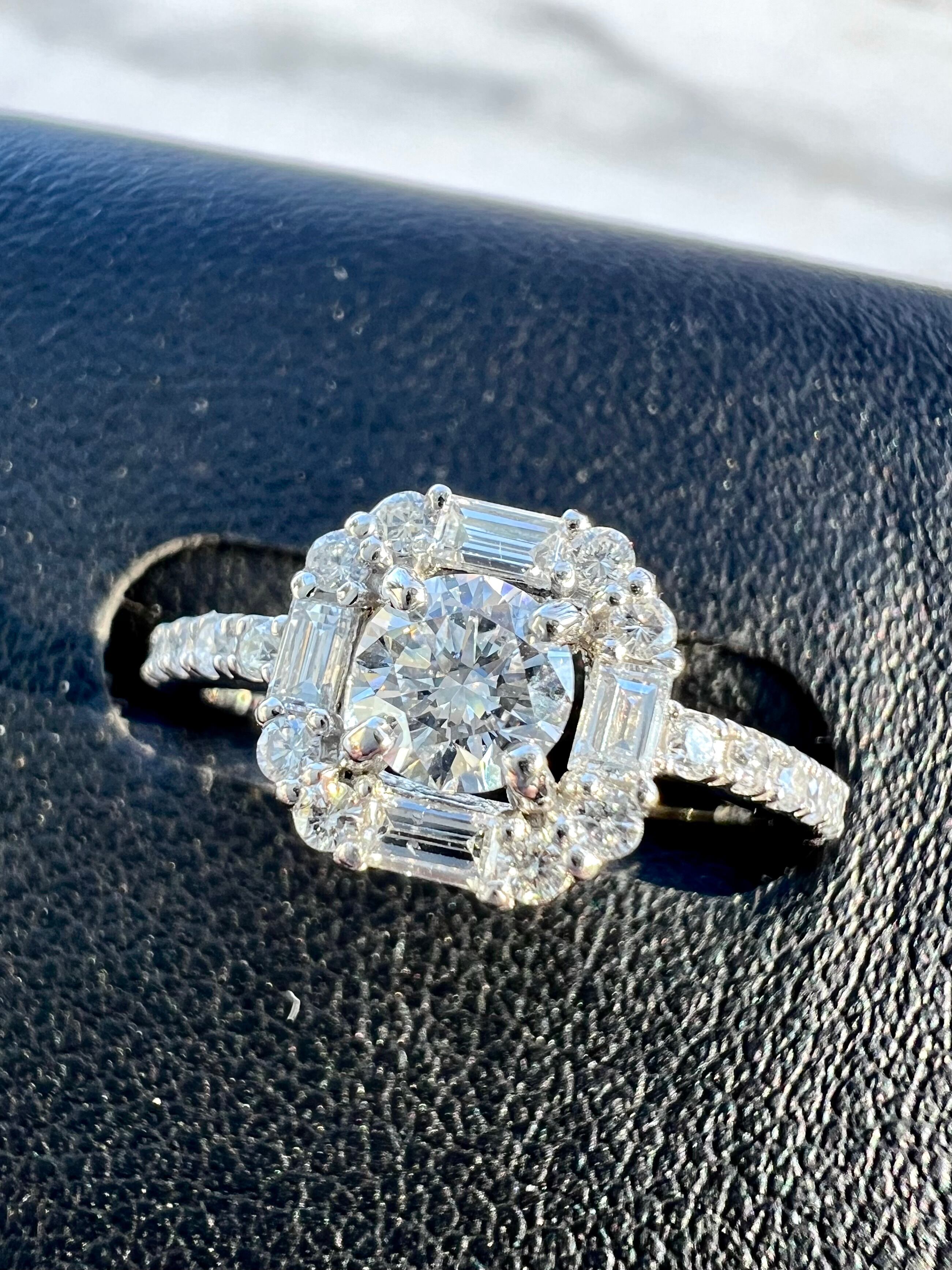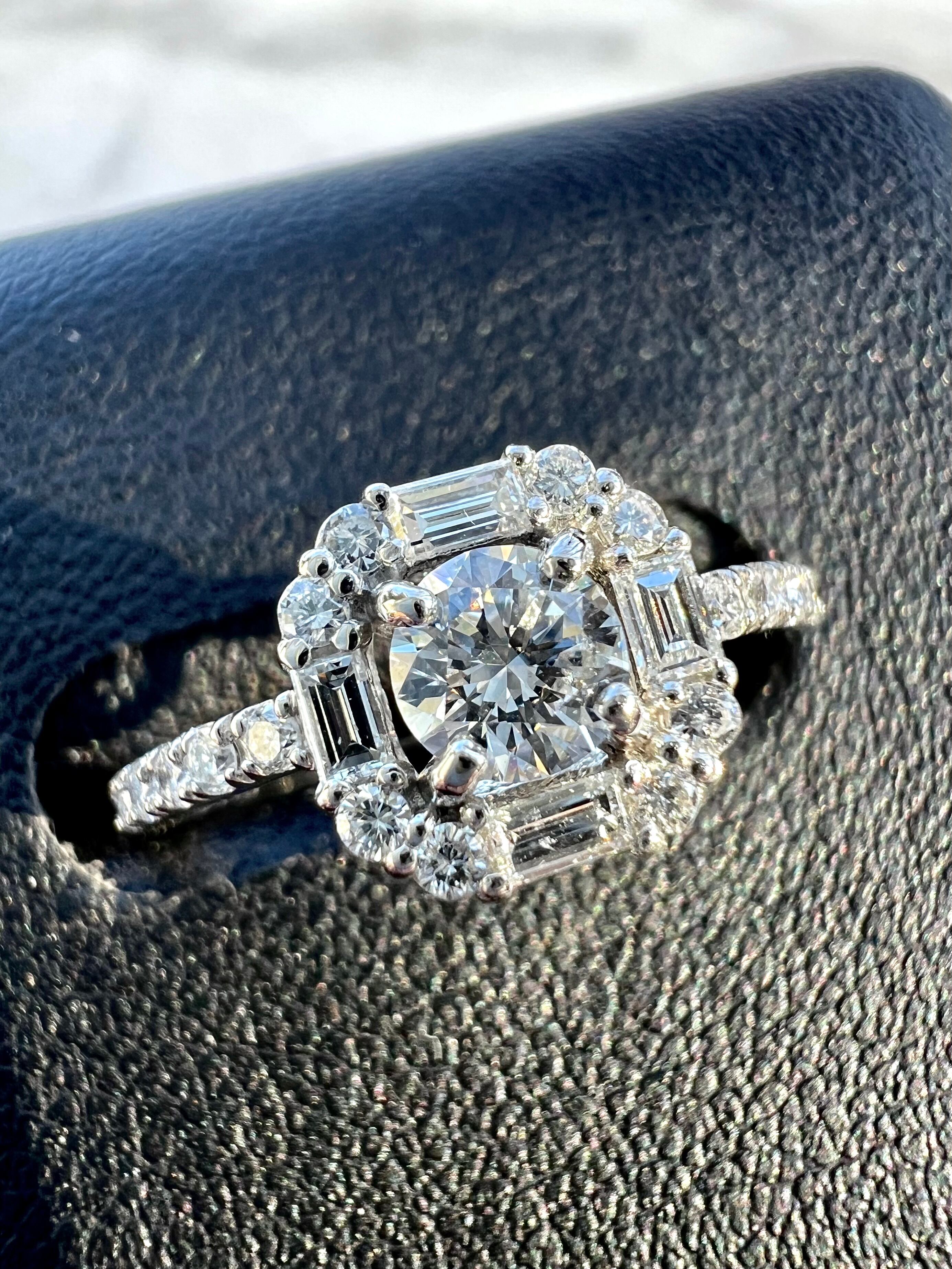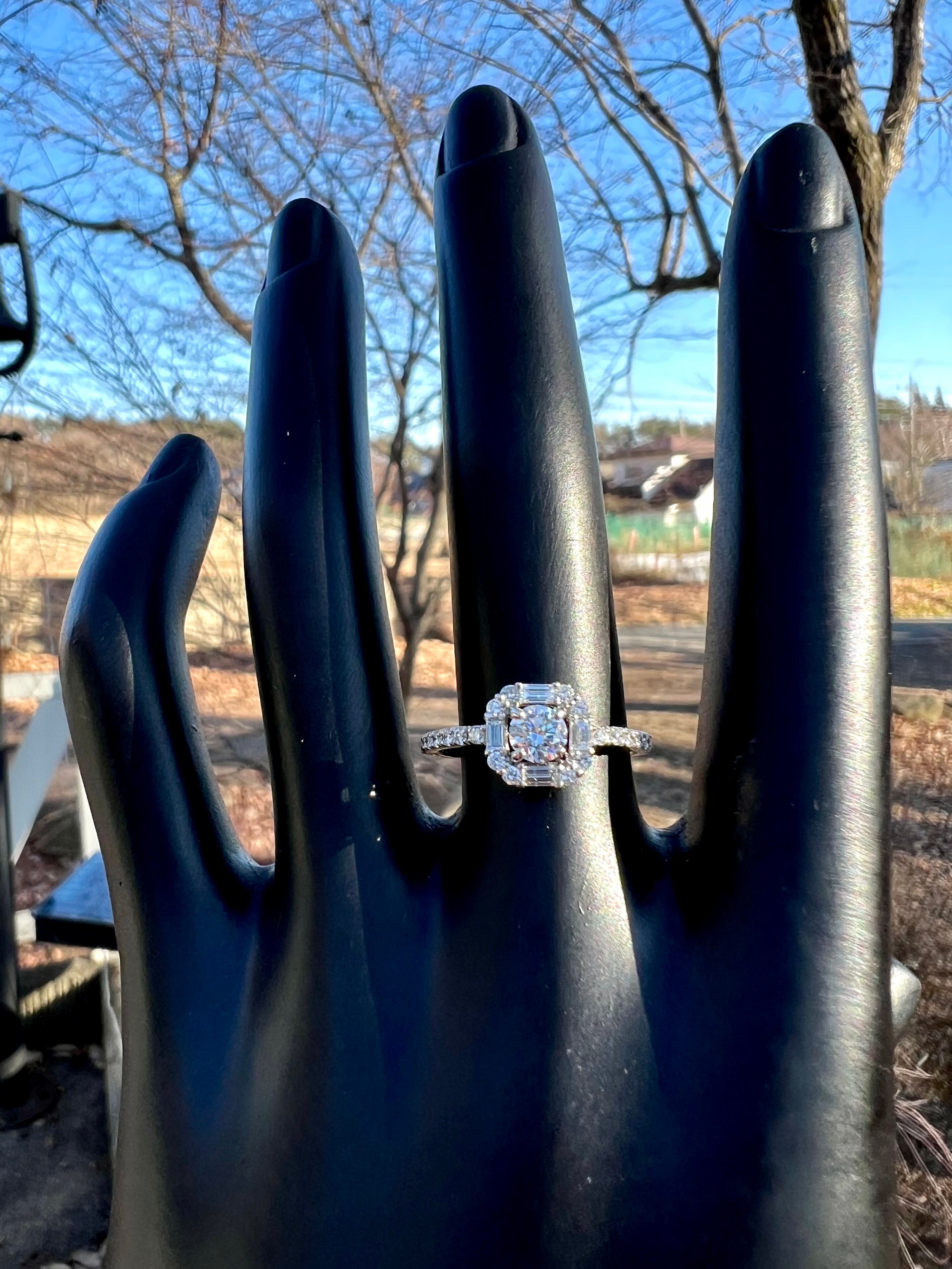 バゲッドダイヤ4石を使い取り巻いたデザインがとってもカッコイイ!スタイリッシュなリングです。