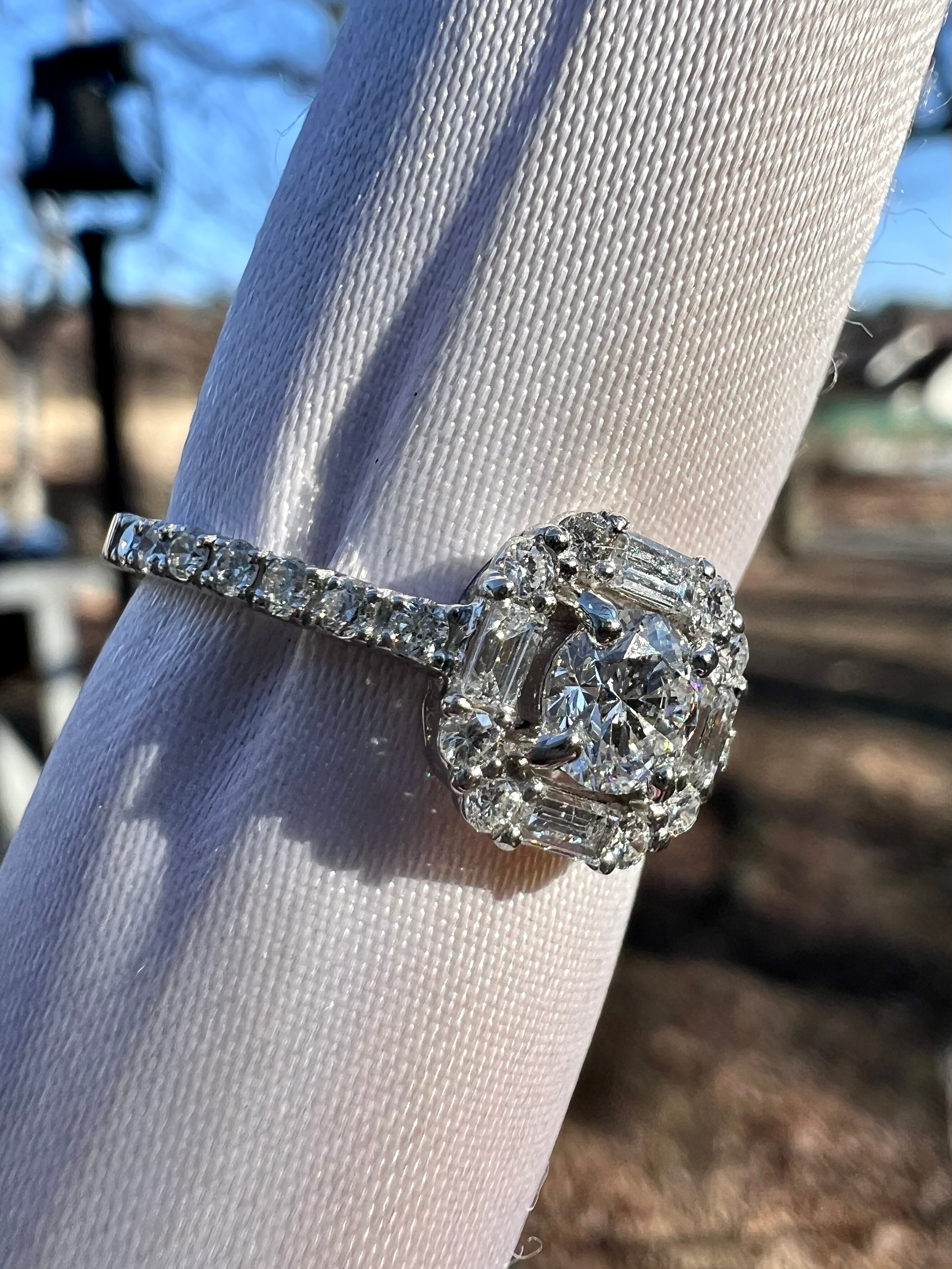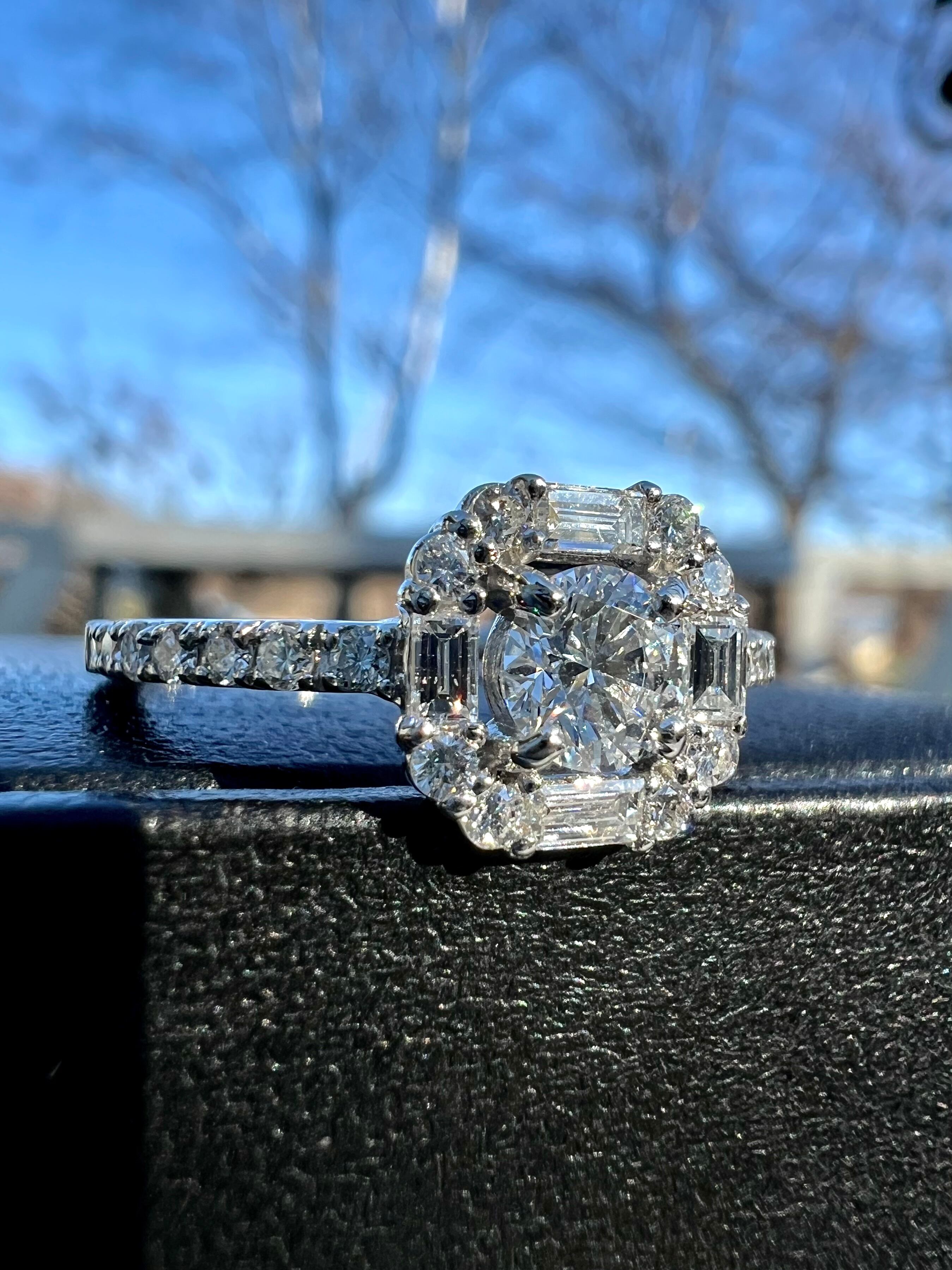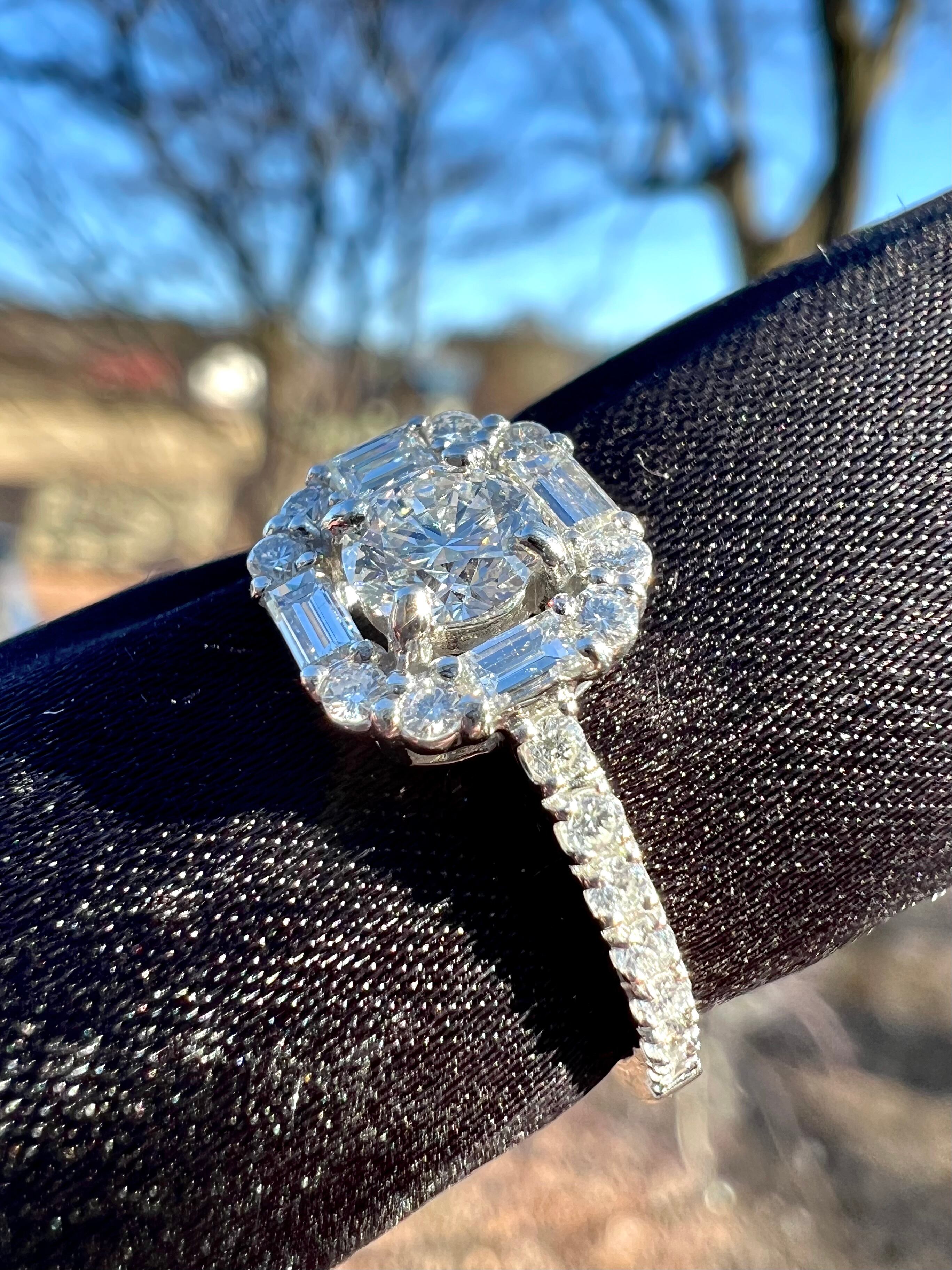バゲッドダイヤ4石を使い取り巻いたデザインがとってもカッコイイ!スタイリッシュなリングです。