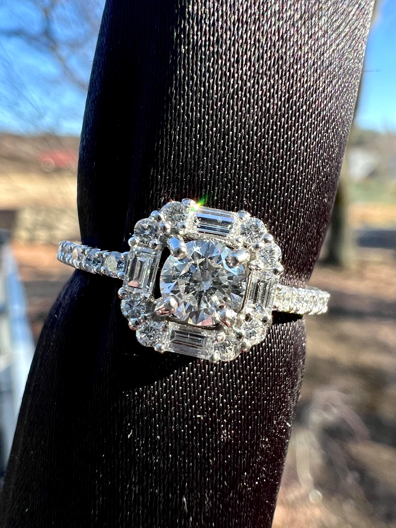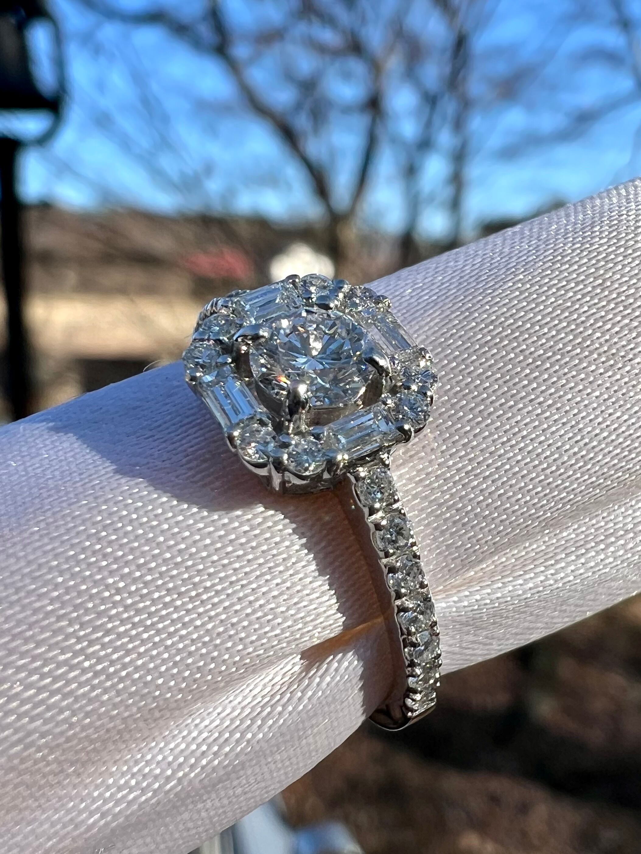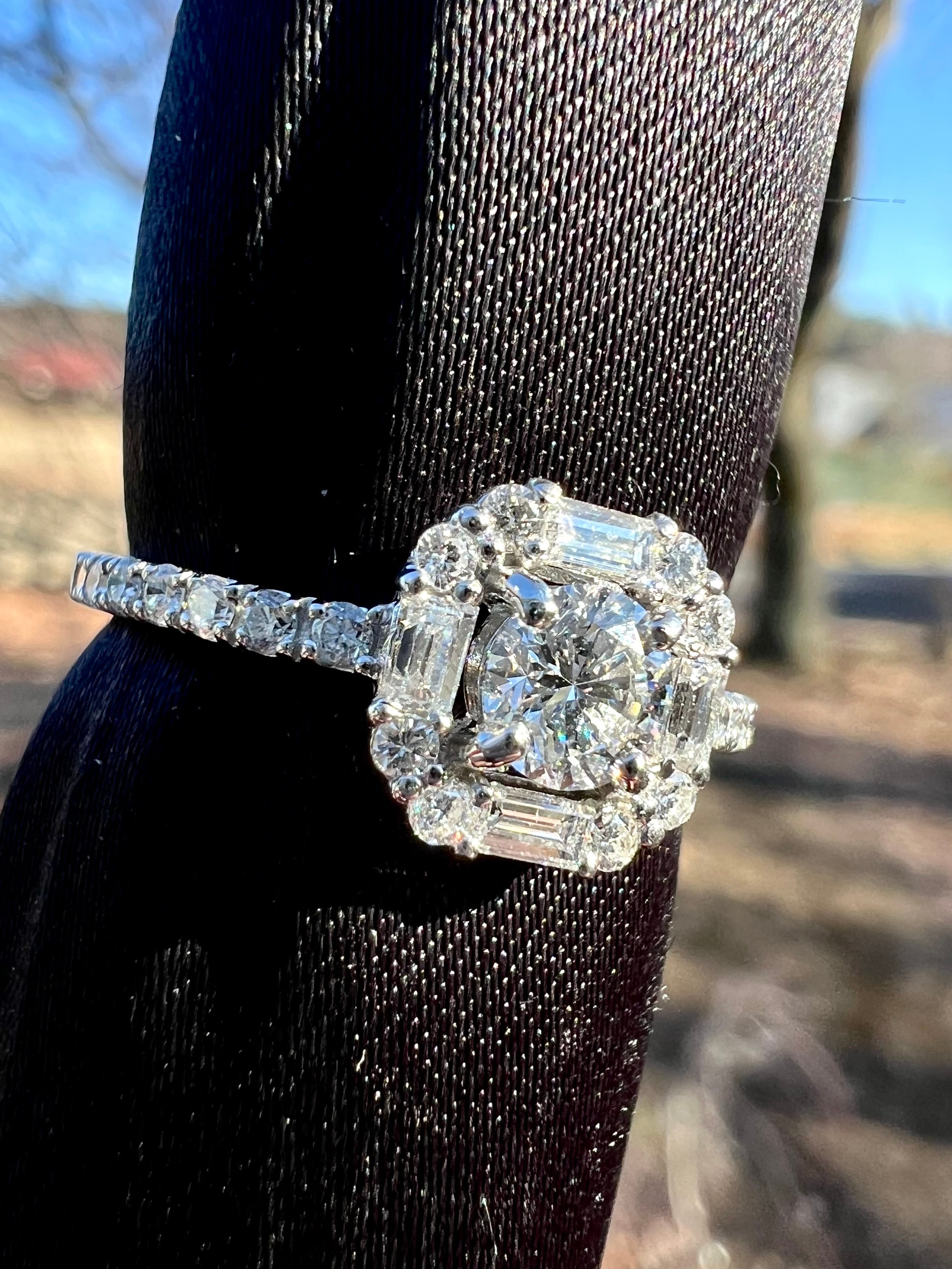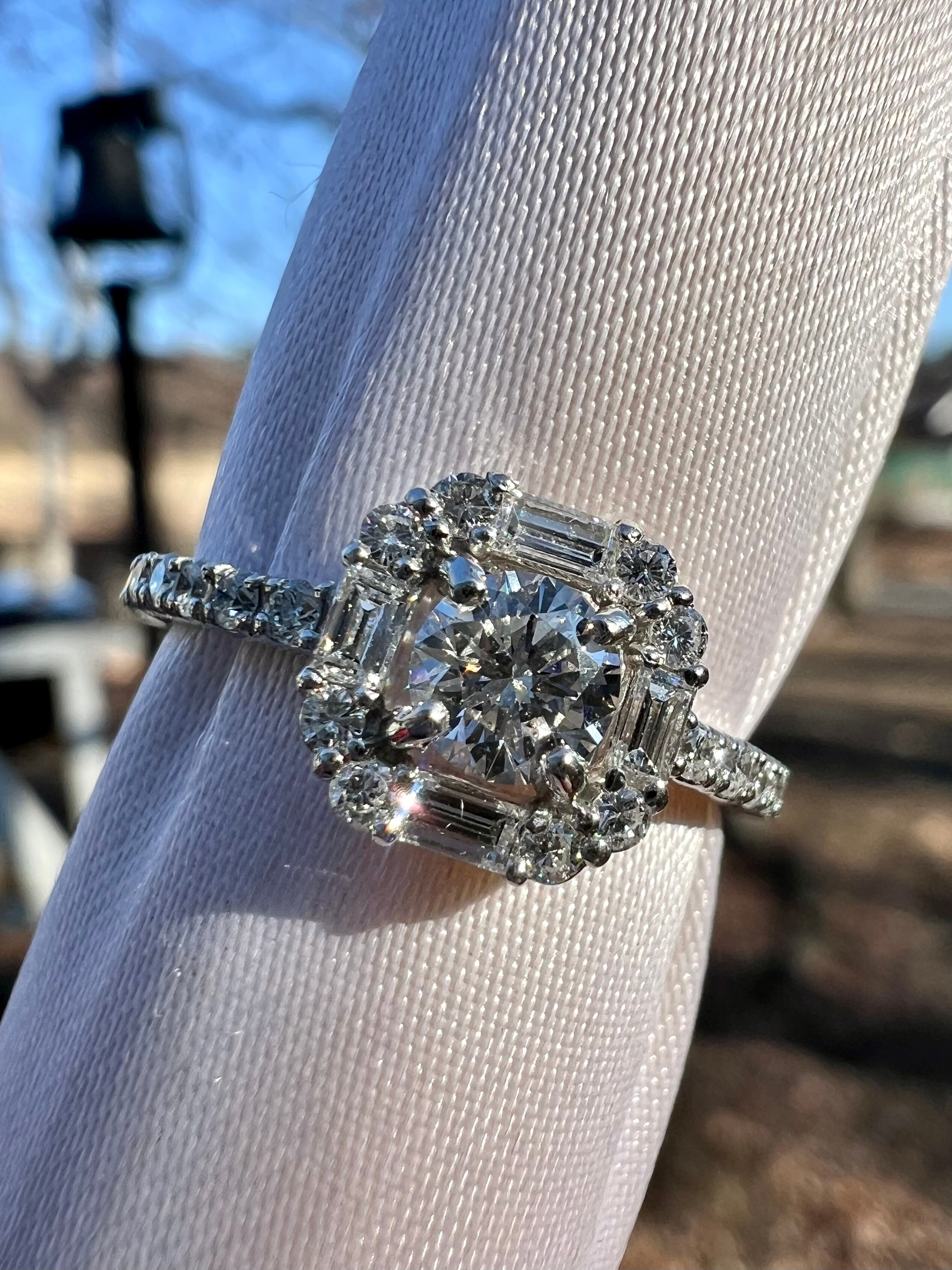 バゲッドダイヤ4石を使い取り巻いたデザインがとってもカッコイイ!スタイリッシュなリングです。
