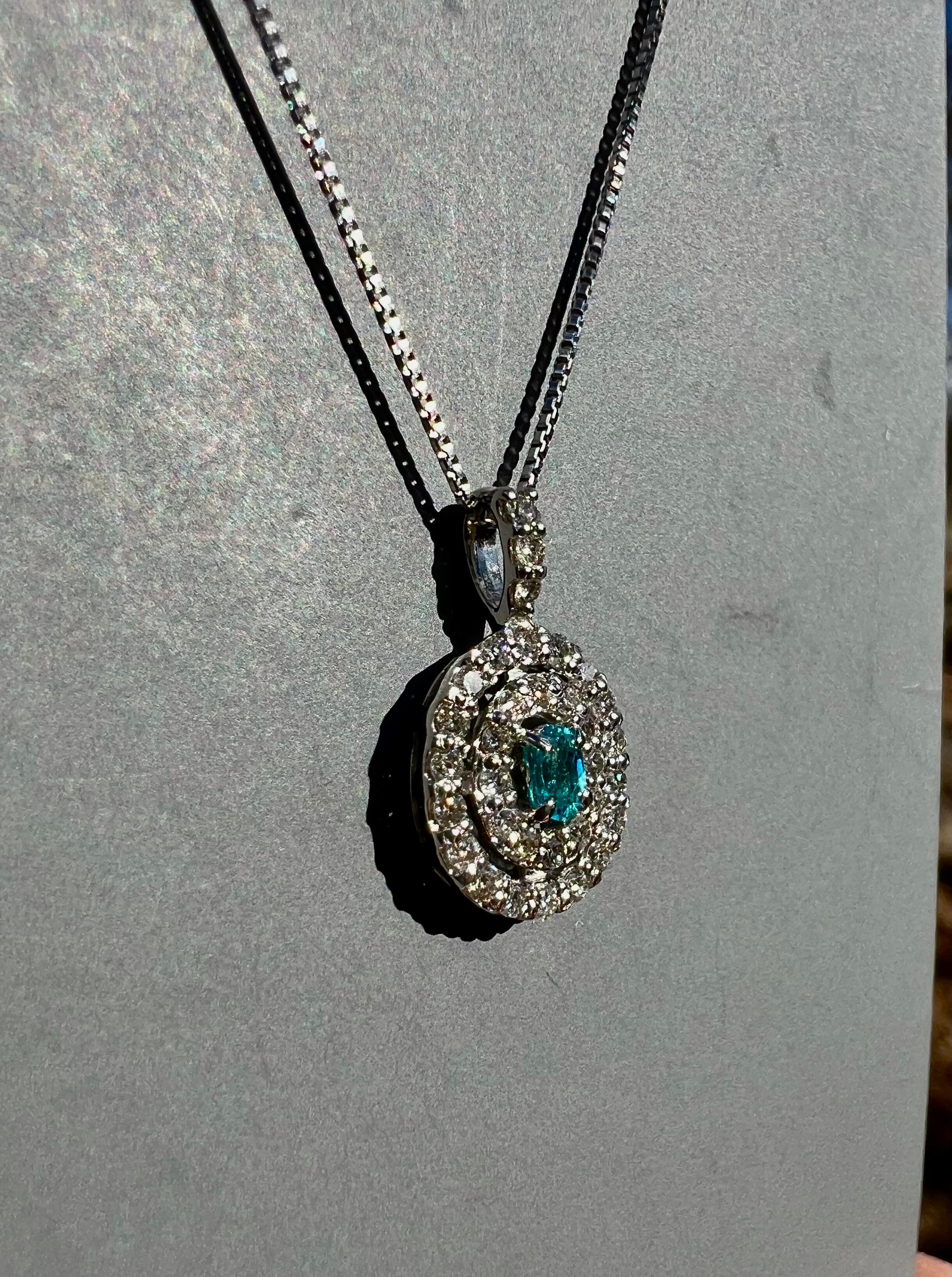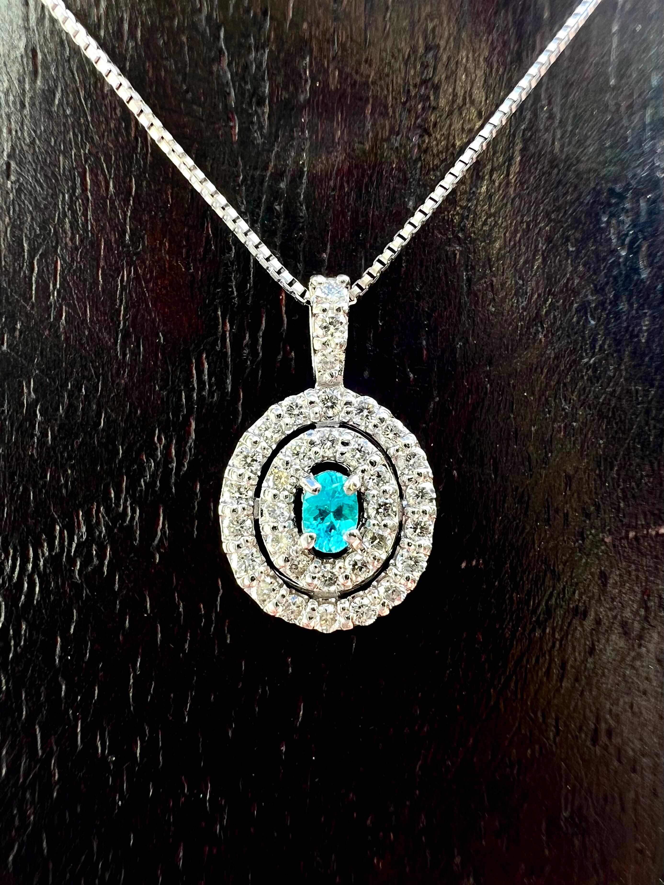 Pt900ブラジル産パライバトルマリンペンダントネックレス《パライバもダイヤも極上仕様》