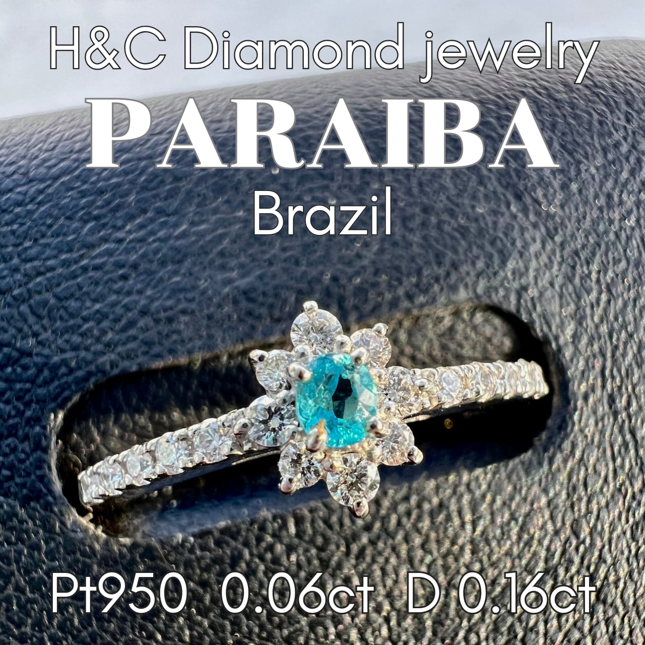 Pt950ブラジル産パライバトルマリンALL H&Cダイヤモンドリング