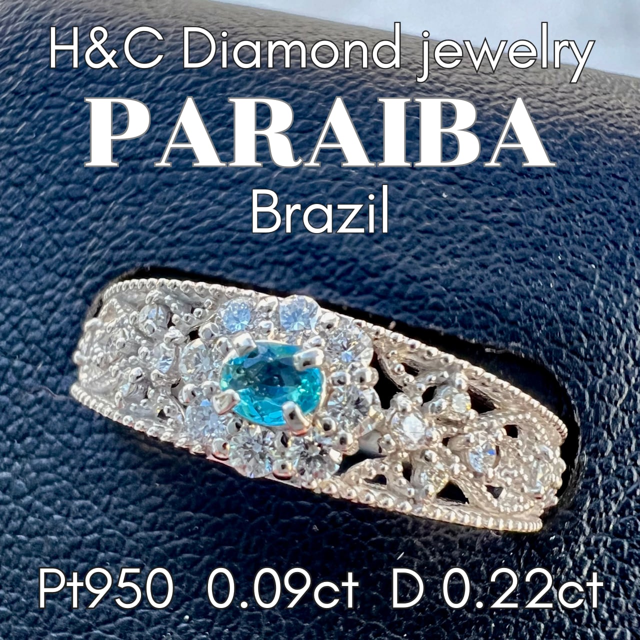 Pt950ブラジル産パライバトルマリンALL H&Cダイヤモンドリング