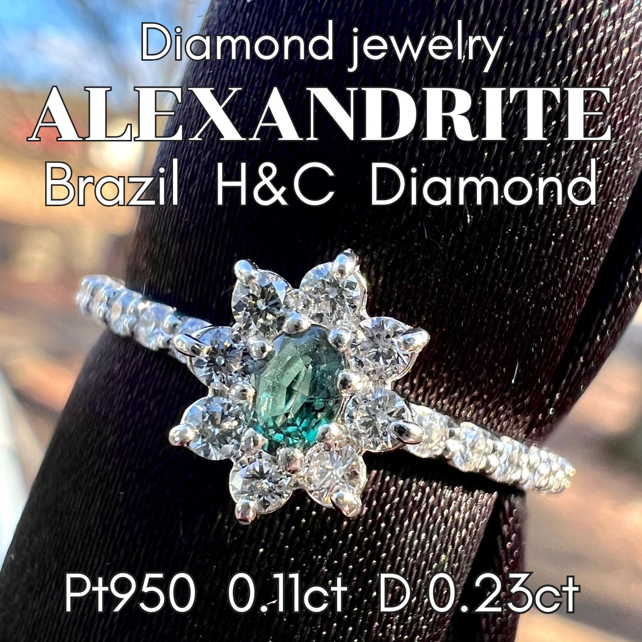 Pt950ブラジル産アレキサンドライトALL H&C ダイヤモンドリング