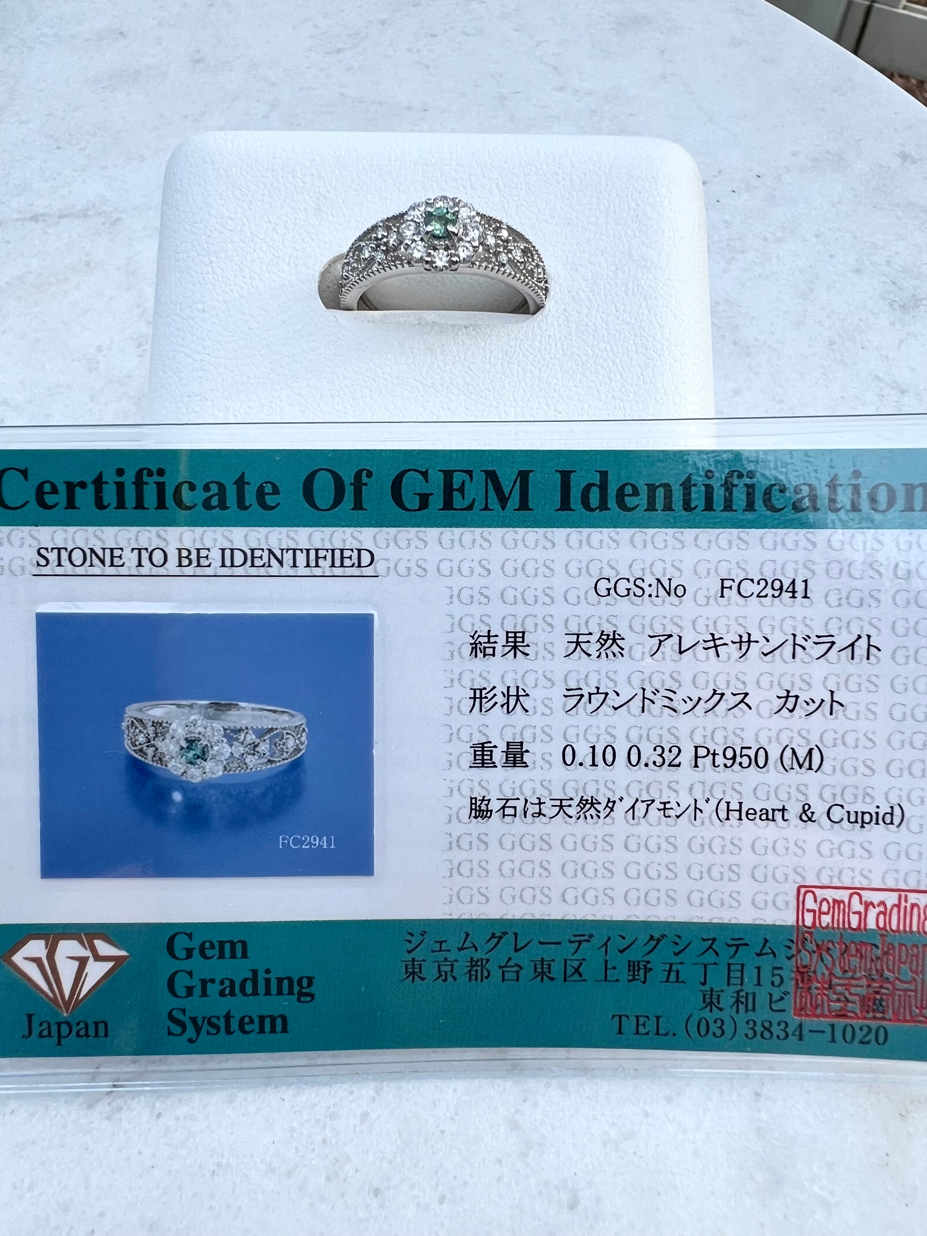 Pt950ブラジル産アレキサンドライトALL H&C ダイヤモンドリング